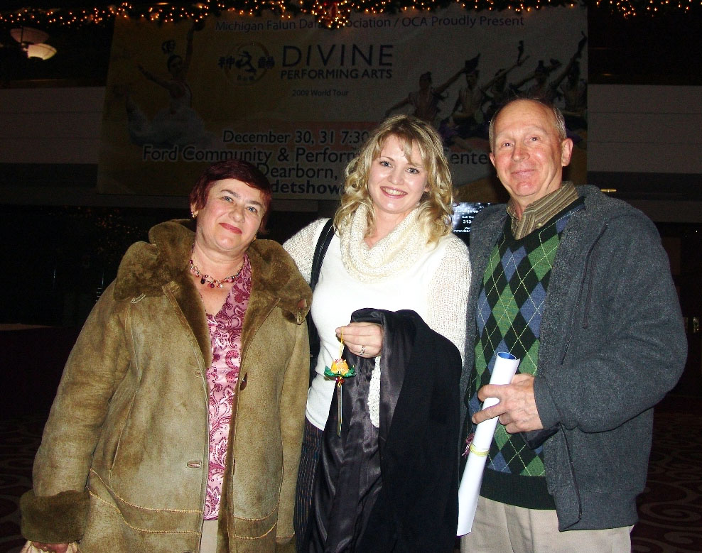 亚历山大先生(Alexander)和夫人卡瑟利(Katherine)以及女儿娜达雅(Natalya)在接受采访时说:“可以说我们喜欢每一个节目,音乐特别感人,因为古老的正统艺术是相通的,神韵的演出也让我们感受到了我们民族的东西。”