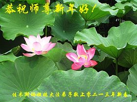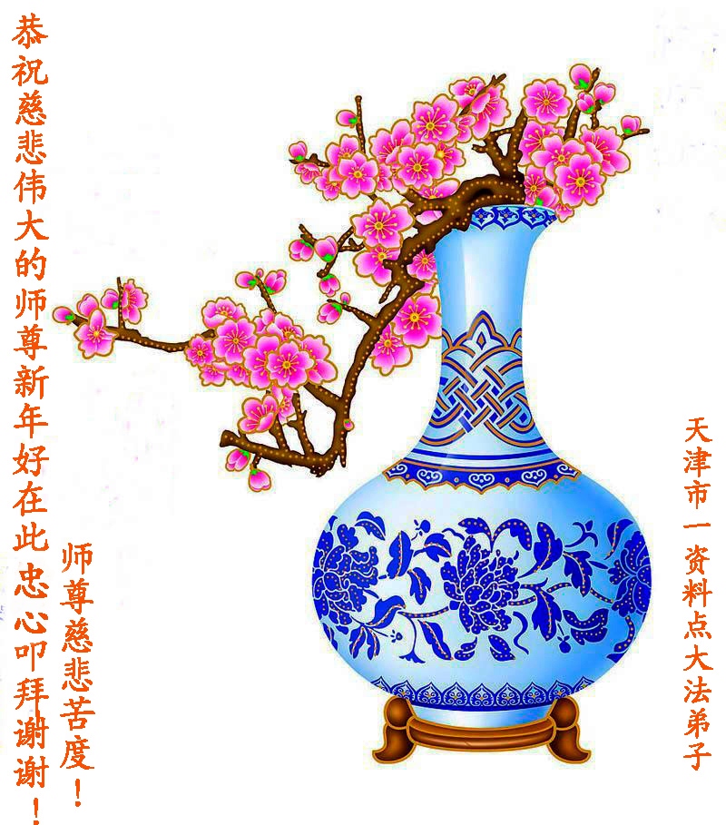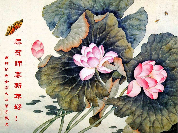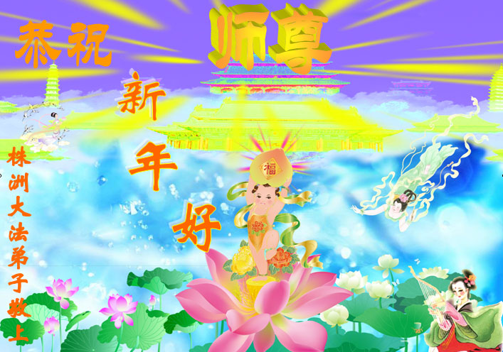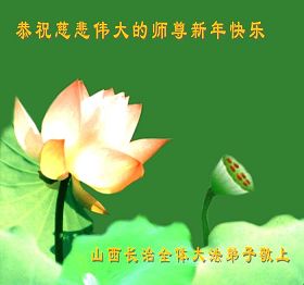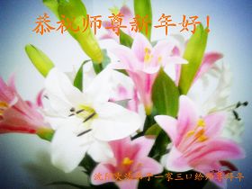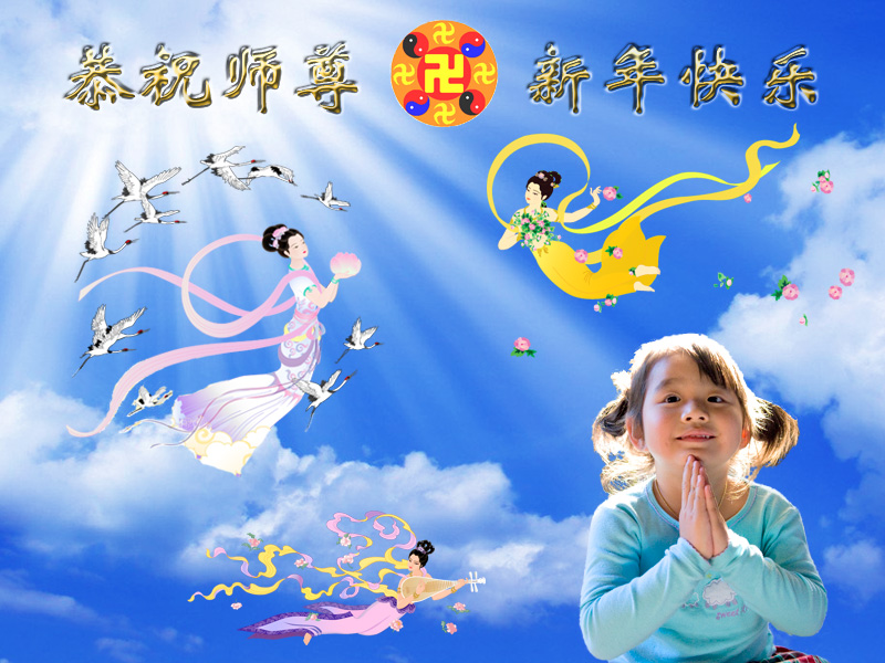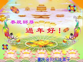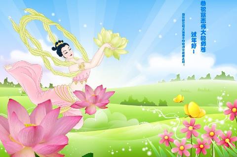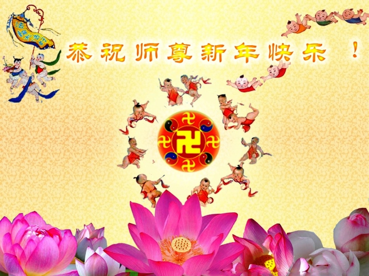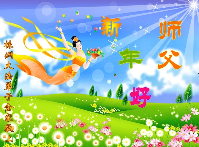 您为拯救众生、为您的弟子们修炼提高护航实在太辛苦了,您为人类带来了无限的光明和希望。看到您的弟子在中共高压迫害的14年里,他们一如既往,年复一年日复一日的做着讲清真相救人的大事,而且不求回报,无私付出,只有您这高德师父才会教出如此善良无私的徒弟。为表敬意,借新年佳节之际发个贺卡,祝您新年愉快,合家欢乐。