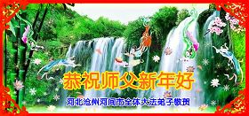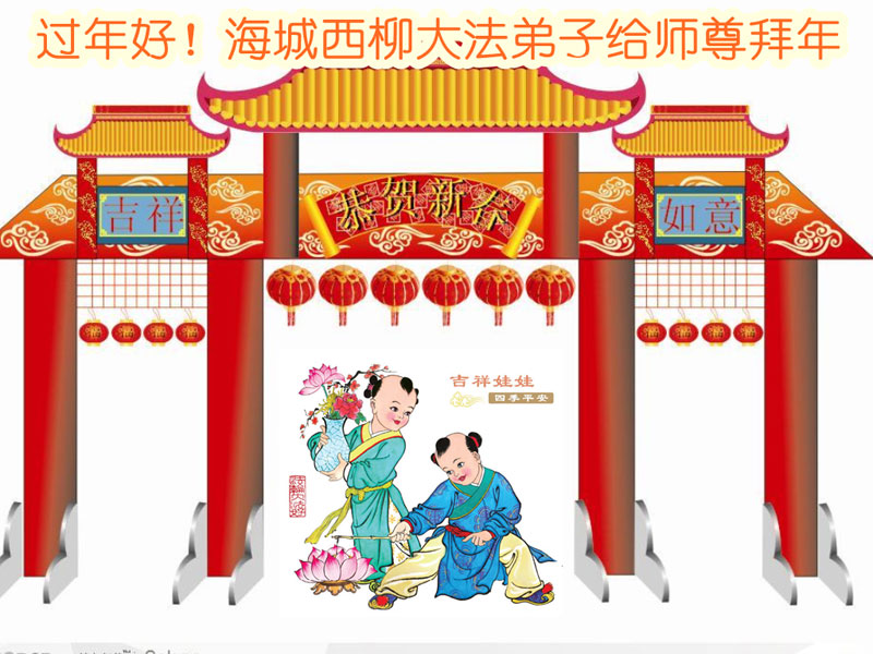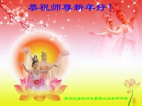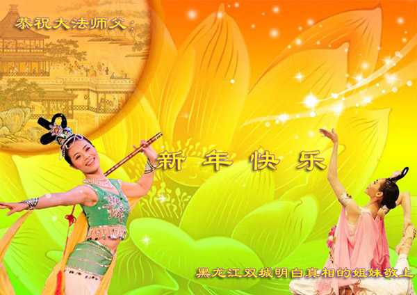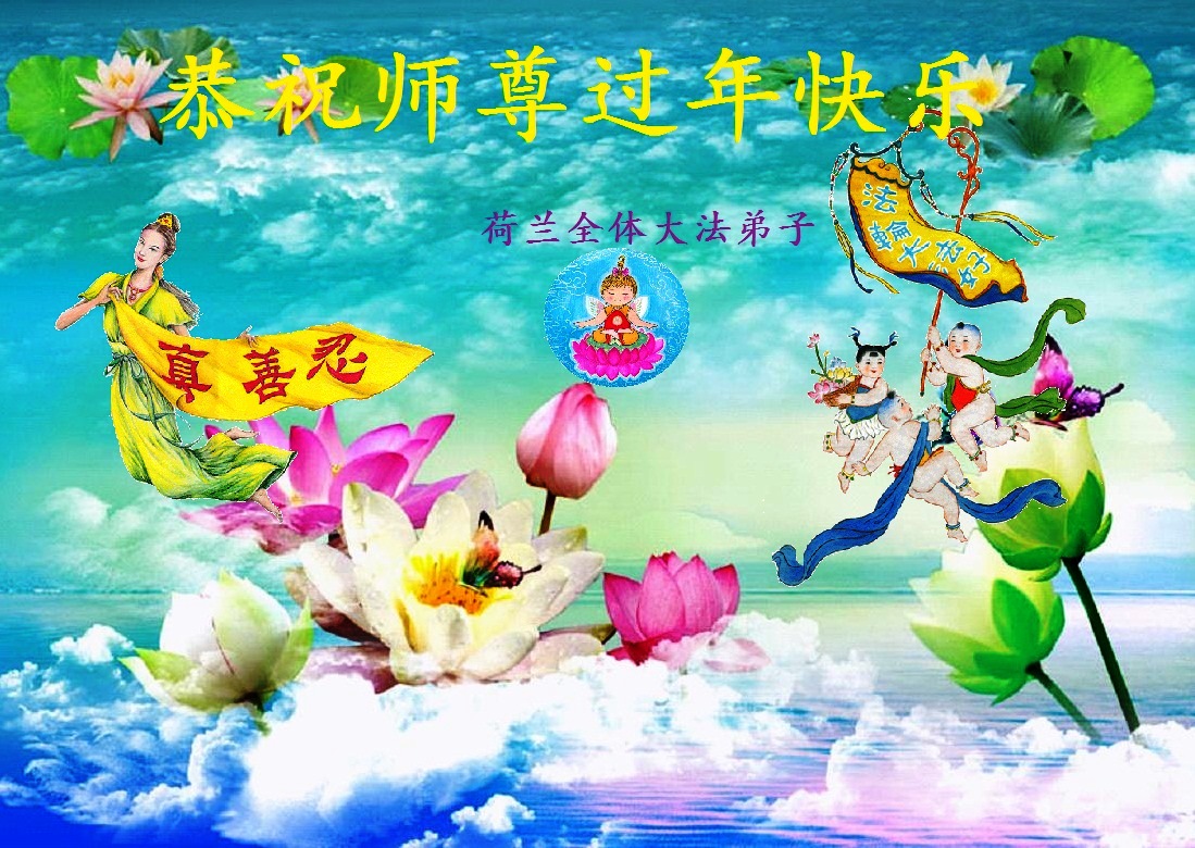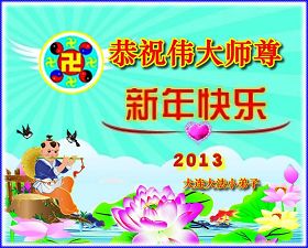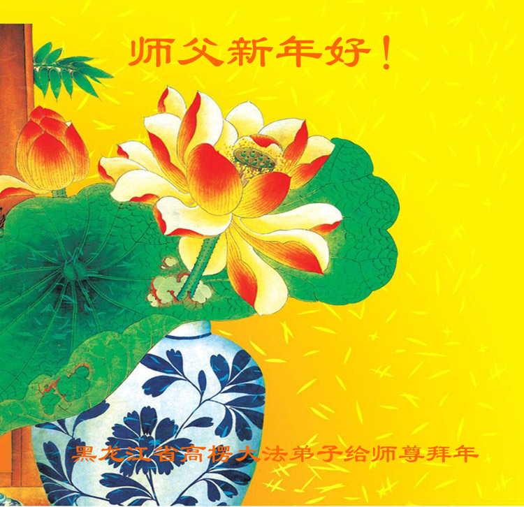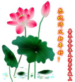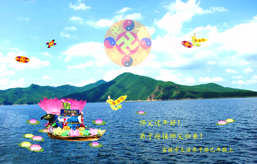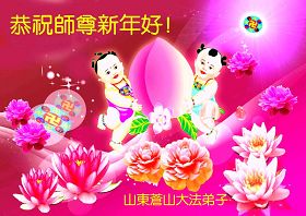 您为拯救众生、为您的弟子们修炼提高护航实在太辛苦了,您为人类带来了无限的光明和希望。看到您的弟子在中共高压迫害的14年里,他们一如既往,年复一年日复一日的做着讲清真相救人的大事,而且不求回报,无私付出,只有您这高德师父才会教出如此善良无私的徒弟。为表敬意,借新年佳节之际发个贺卡,祝您新年愉快,合家欢乐。