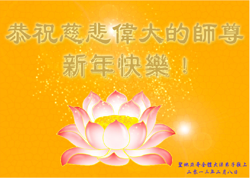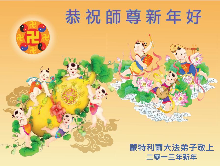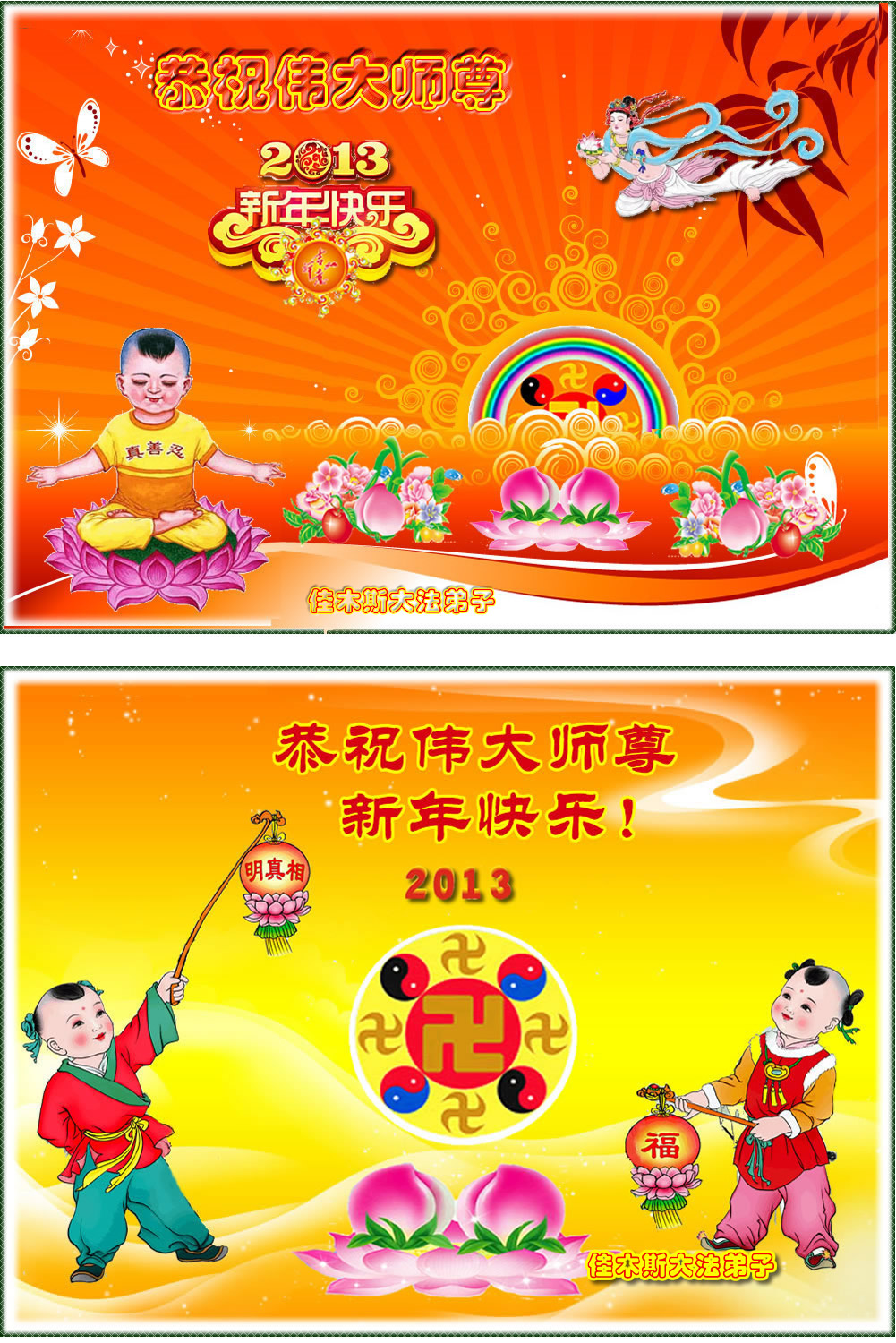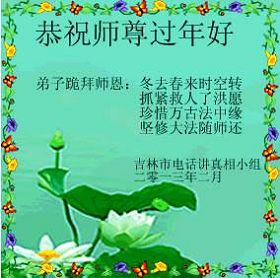 <英文版: http://en.minghui.org/html/articles/2013/2/10/137555.html>美国纽约华府费城等地大法弟子给师父拜年(12条)