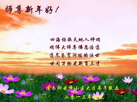 我们向师父献上一份节日的问候。在新的一年里,我们一定要按照师父的要求,把三件事做得更好,不辱使命,救度众生,圆满随师返。