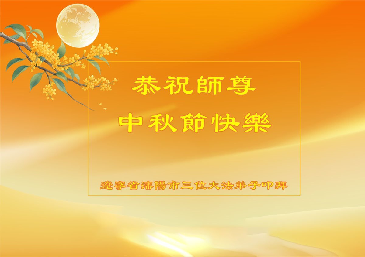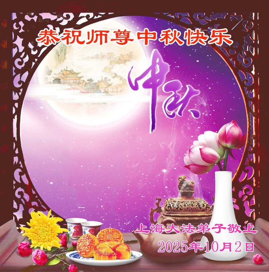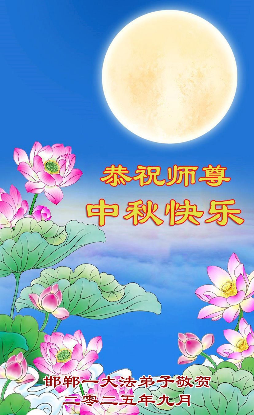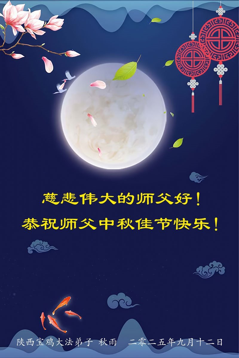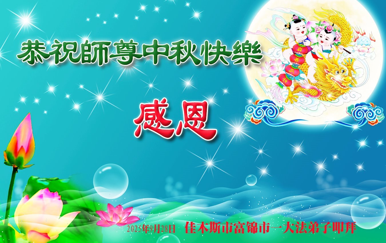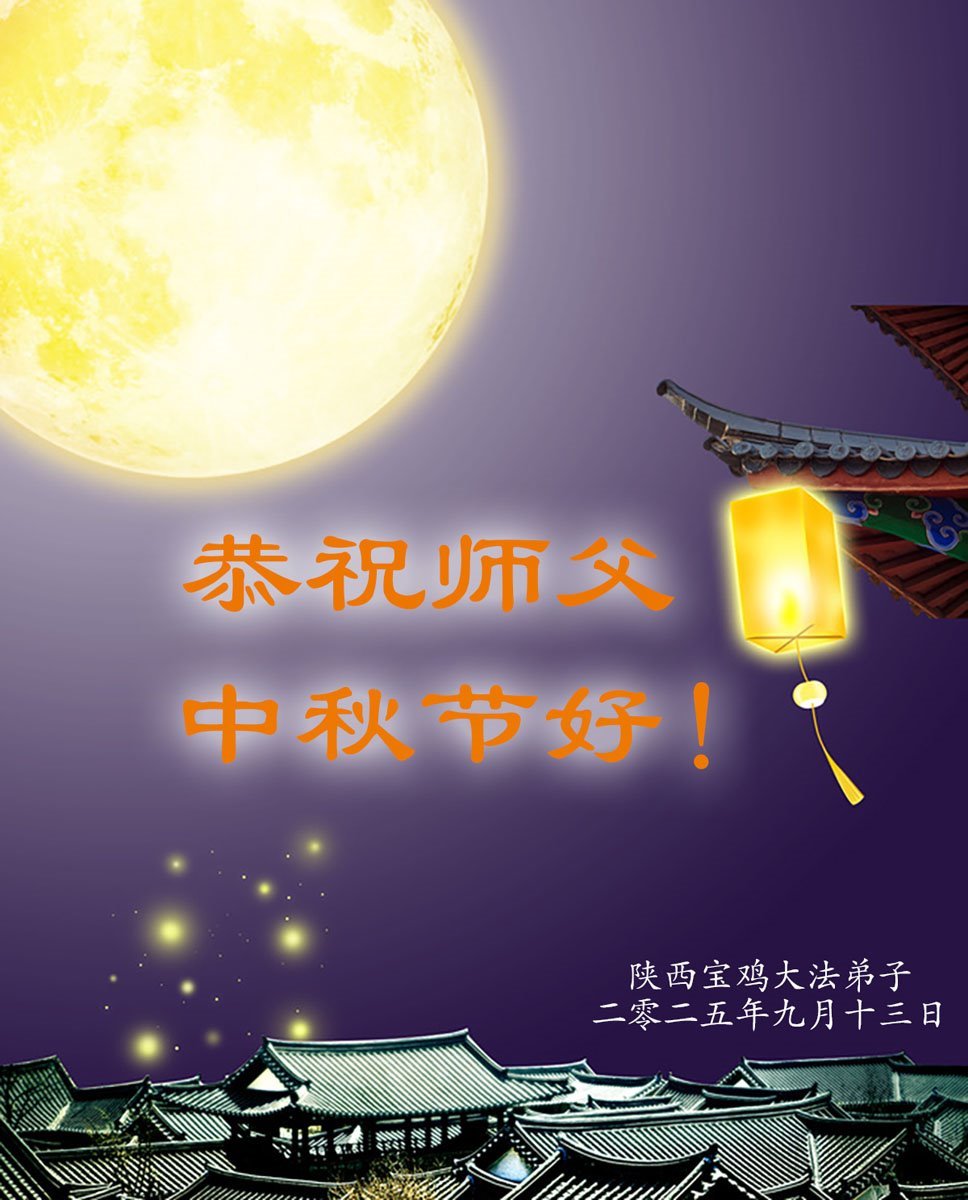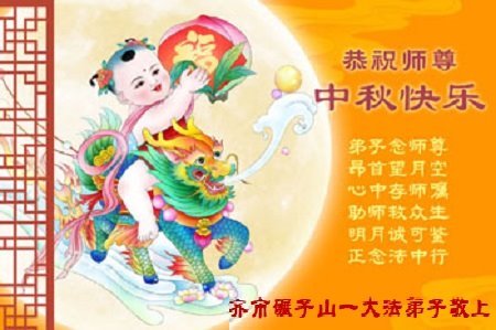 一年一度的中秋团圆佳节已来临,弟子在大洋彼岸向师尊问好。我们已经感觉到与师尊团聚的时间为期不远了。虽然盼望与师父早日团聚,但是大法弟子的使命是重要的。因此,在这最后的时刻,弟子一定抓紧时间做好三件事,完成自己的历史使命,圆满随师还。