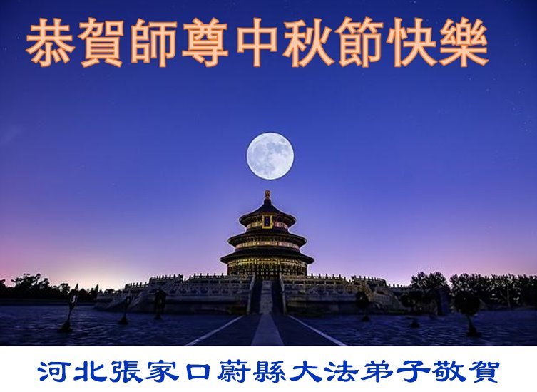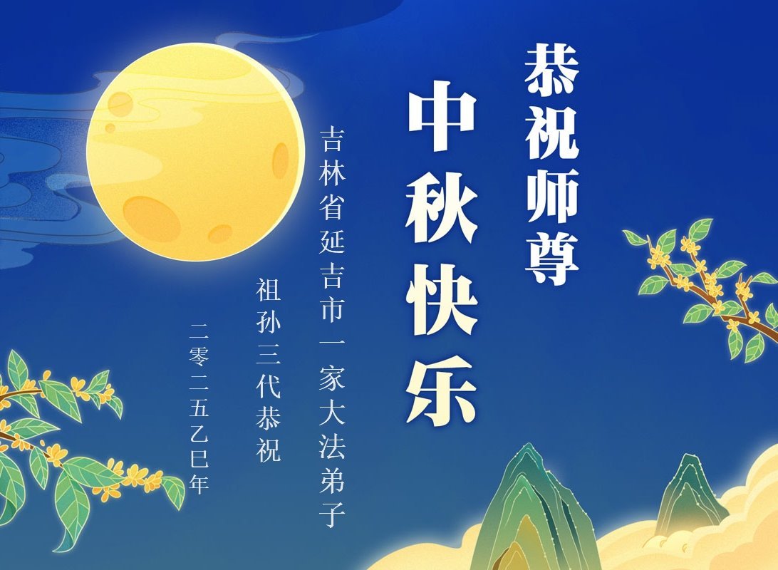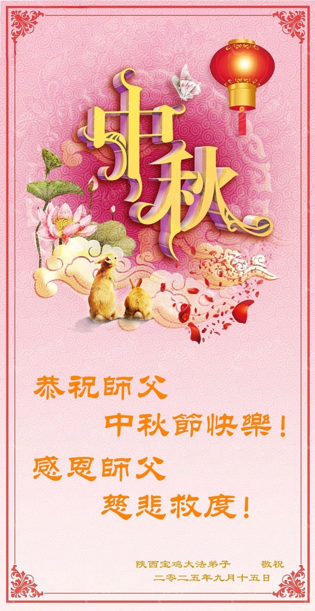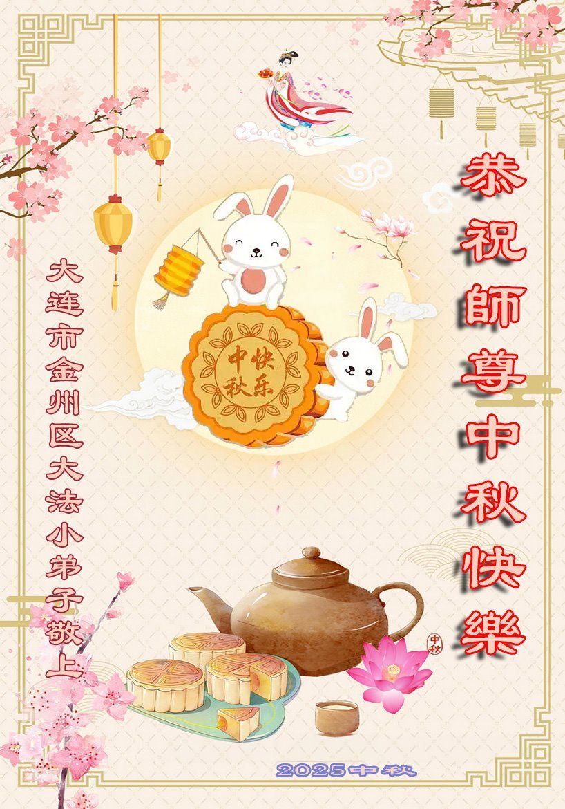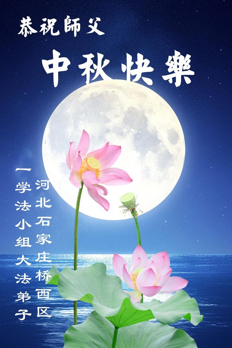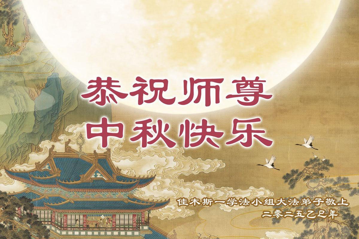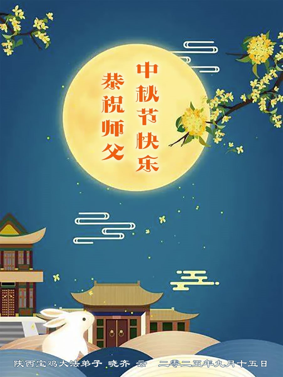 一年一度的中秋团圆佳节已来临,弟子在大洋彼岸向师尊问好。我们已经感觉到与师尊团聚的时间为期不远了。虽然盼望与师父早日团聚,但是大法弟子的使命是重要的。因此,在这最后的时刻,弟子一定抓紧时间做好三件事,完成自己的历史使命,圆满随师还。