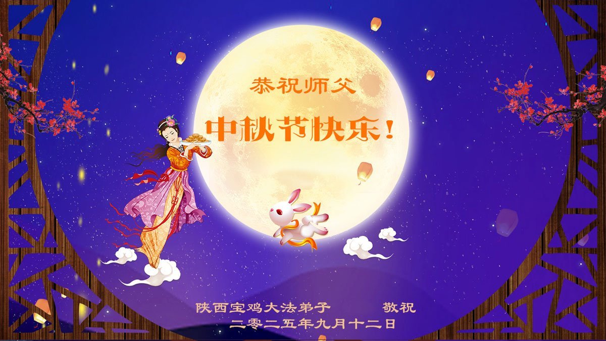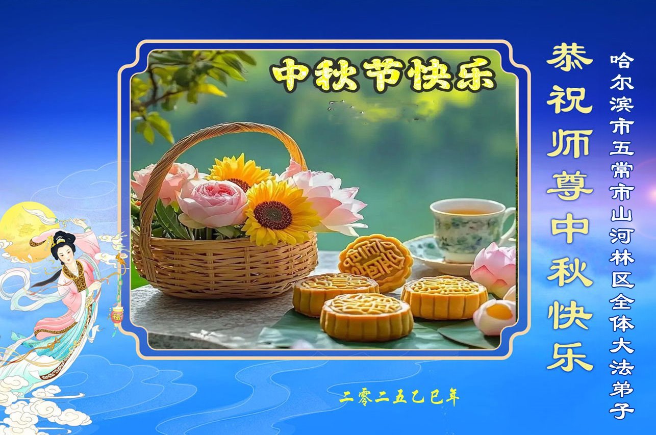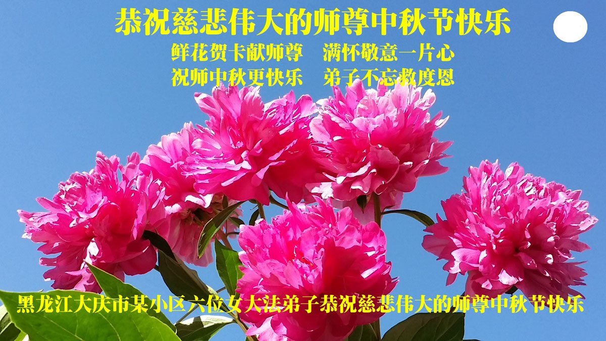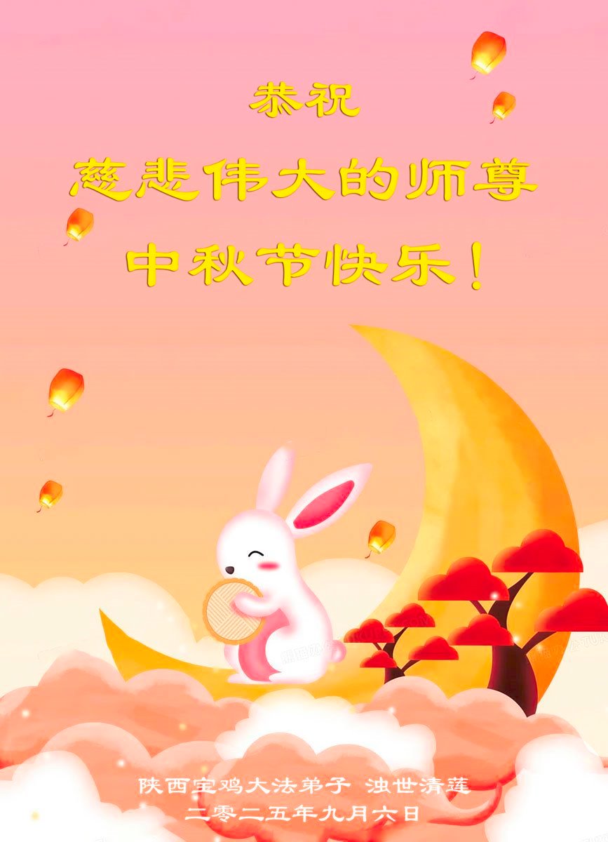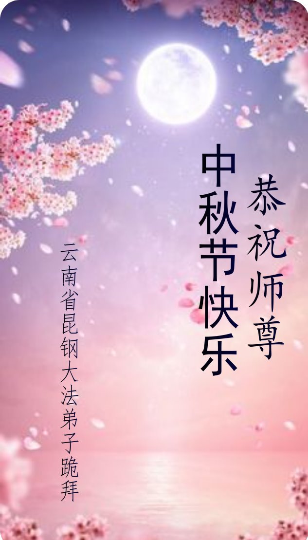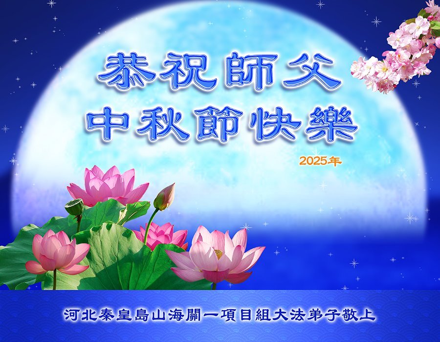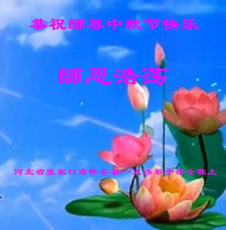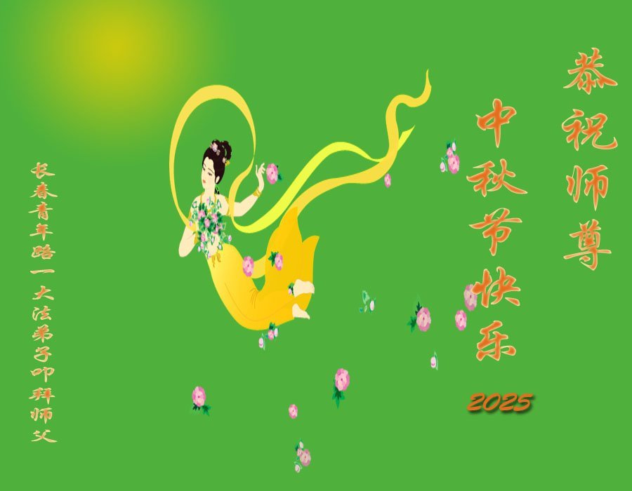 一年一度的中秋团圆佳节已来临,弟子在大洋彼岸向师尊问好。我们已经感觉到与师尊团聚的时间为期不远了。虽然盼望与师父早日团聚,但是大法弟子的使命是重要的。因此,在这最后的时刻,弟子一定抓紧时间做好三件事,完成自己的历史使命,圆满随师还。