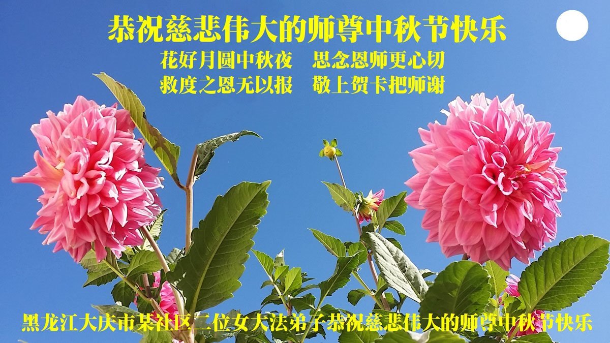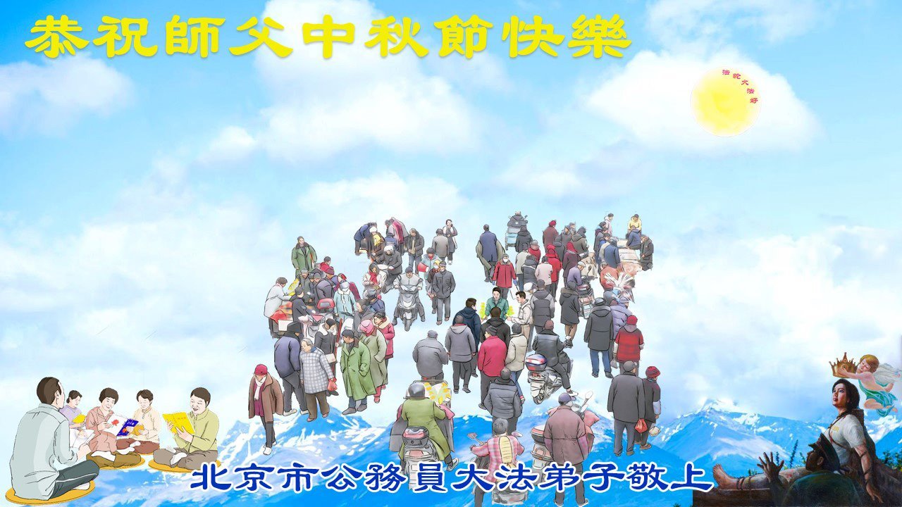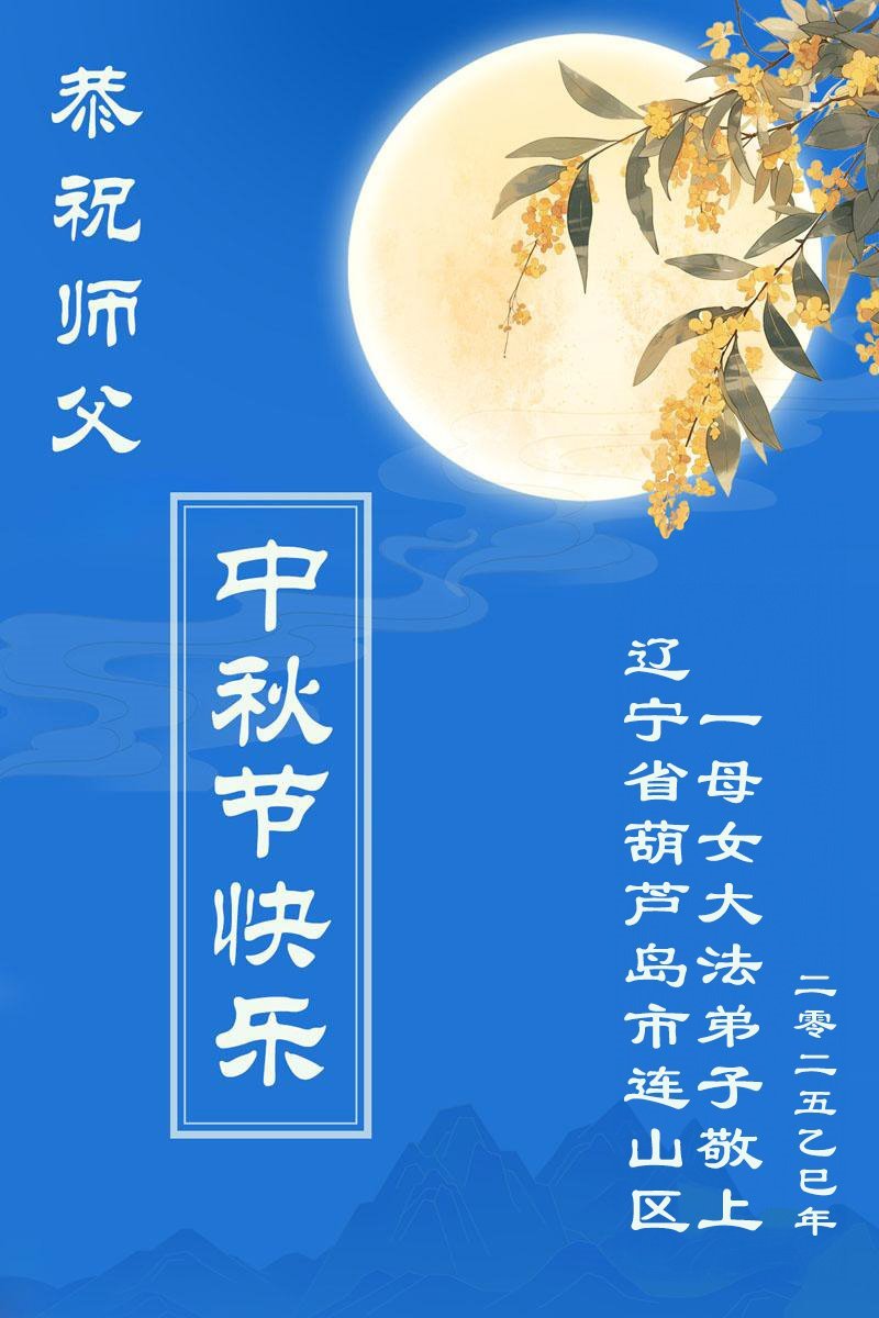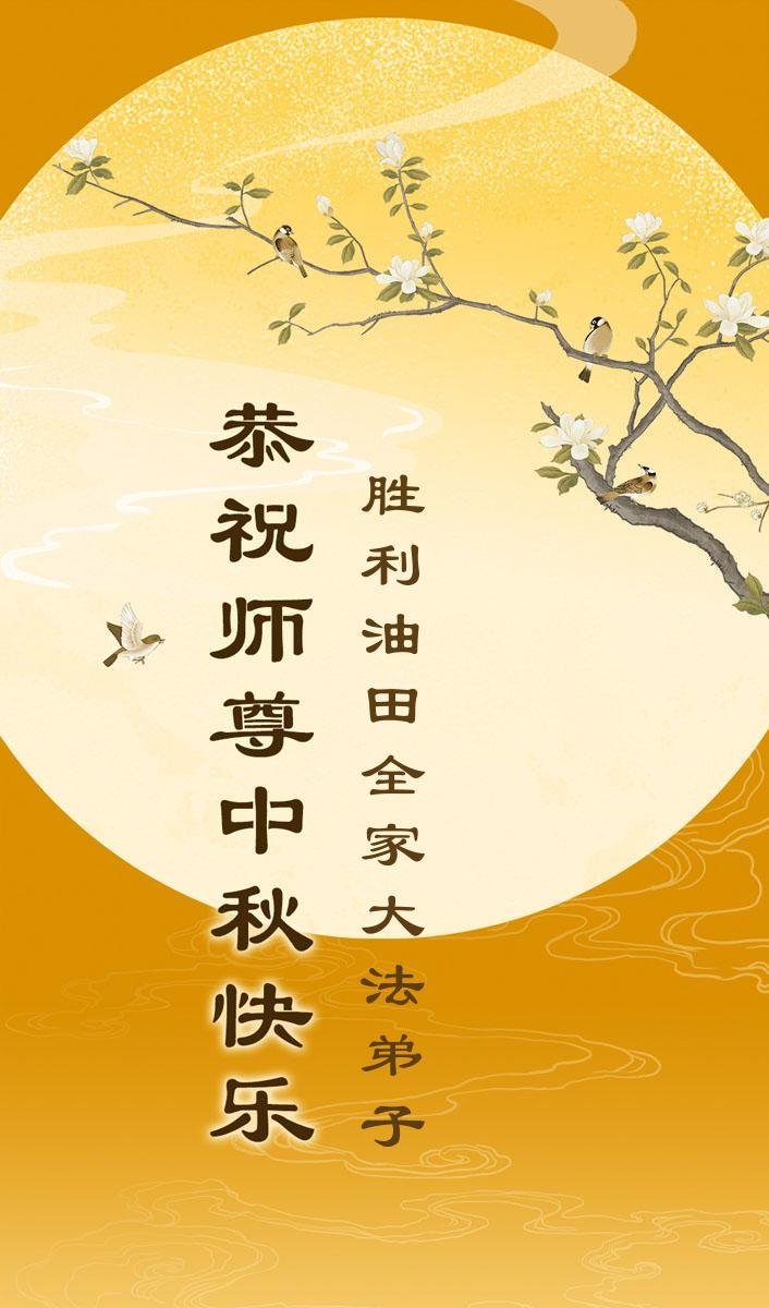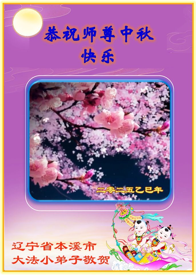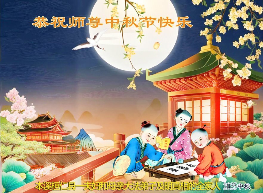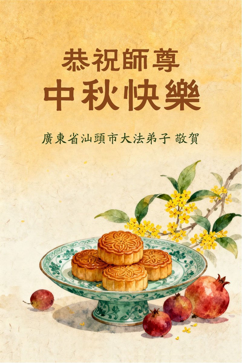一年一度的中秋团圆佳节已来临,弟子在大洋彼岸向师尊问好。我们已经感觉到与师尊团聚的时间为期不远了。虽然盼望与师父早日团聚,但是大法弟子的使命是重要的。因此,在这最后的时刻,弟子一定抓紧时间做好三件事,完成自己的历史使命,圆满随师还。