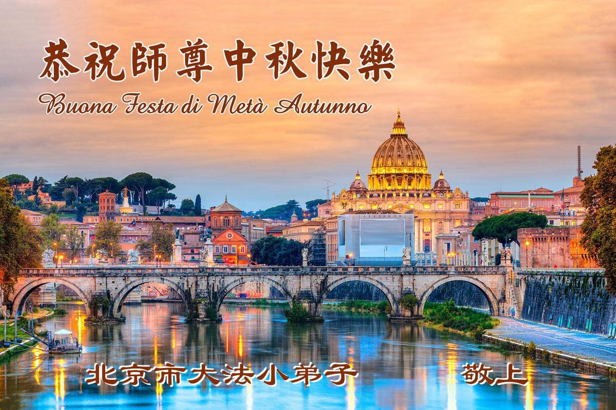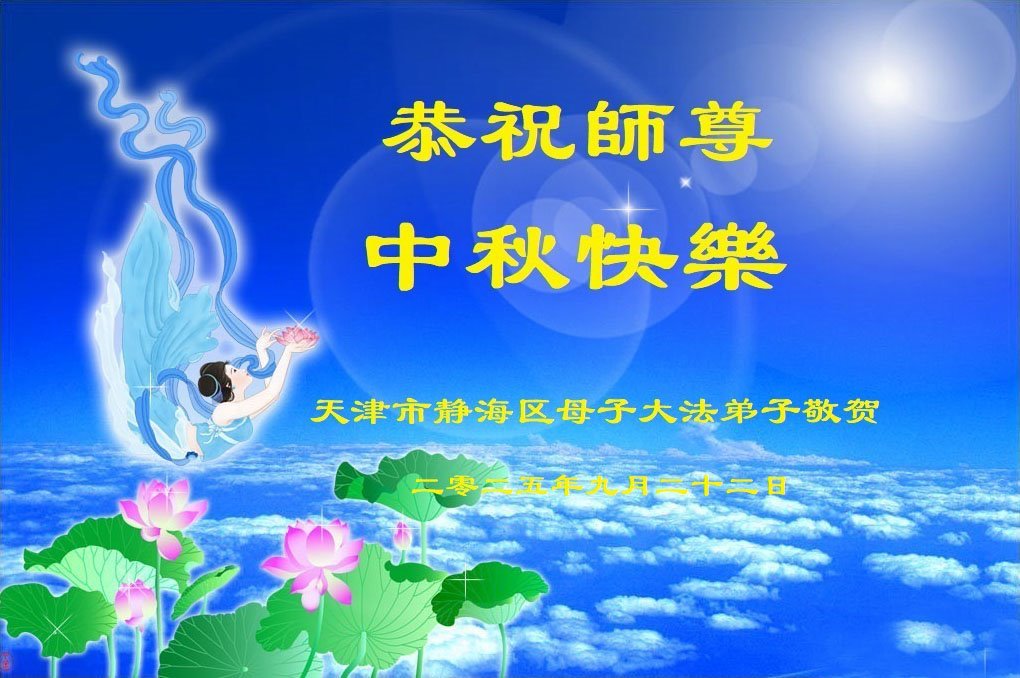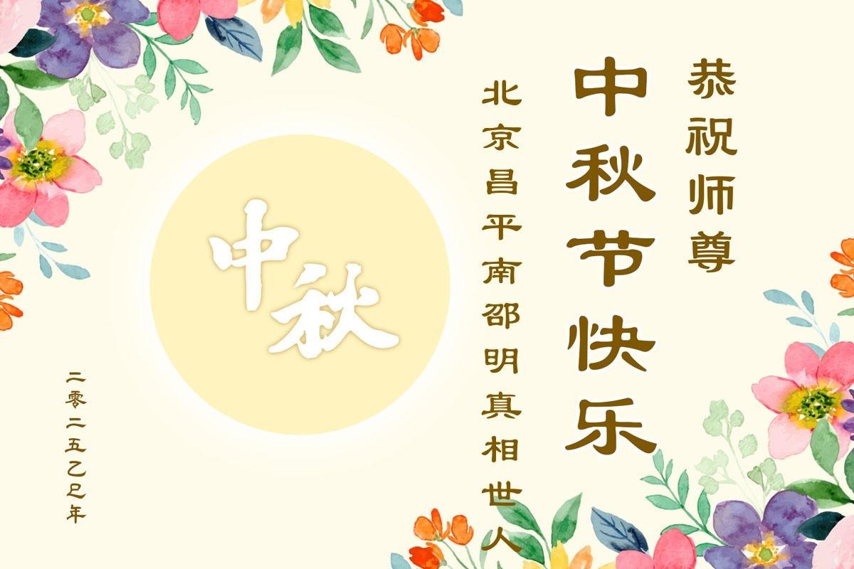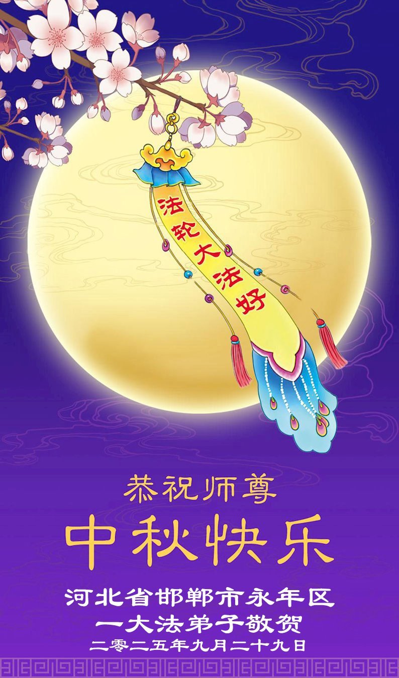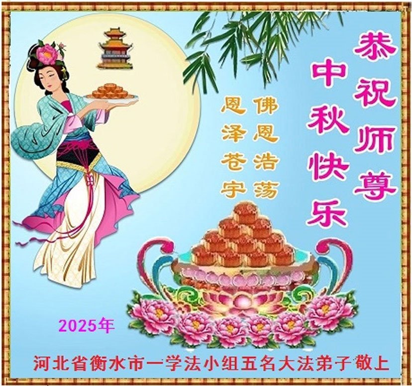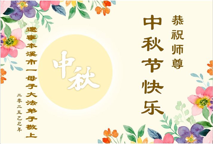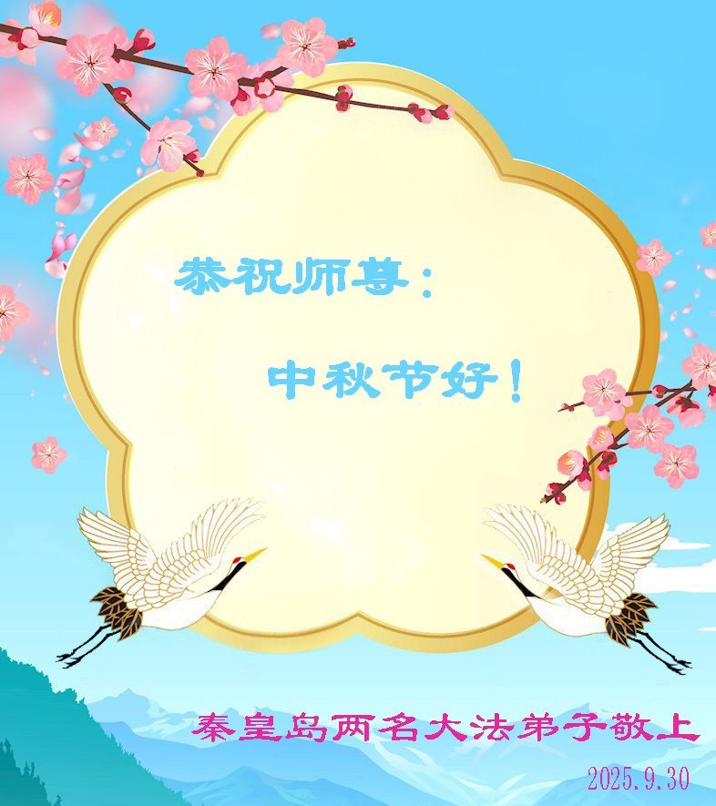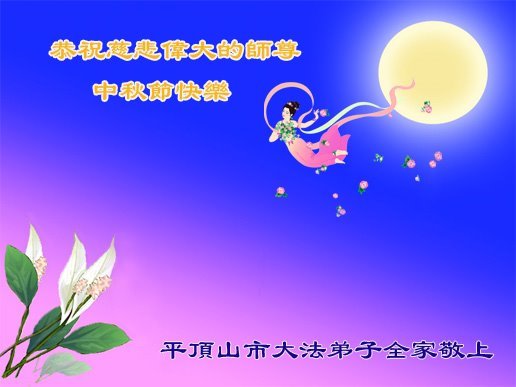 一年一度的中秋团圆佳节已来临,弟子在大洋彼岸向师尊问好。我们已经感觉到与师尊团聚的时间为期不远了。虽然盼望与师父早日团聚,但是大法弟子的使命是重要的。因此,在这最后的时刻,弟子一定抓紧时间做好三件事,完成自己的历史使命,圆满随师还。
