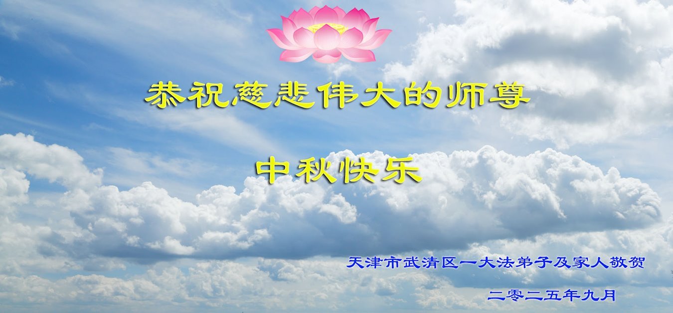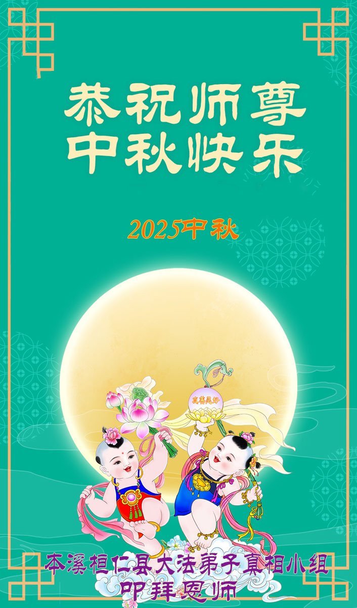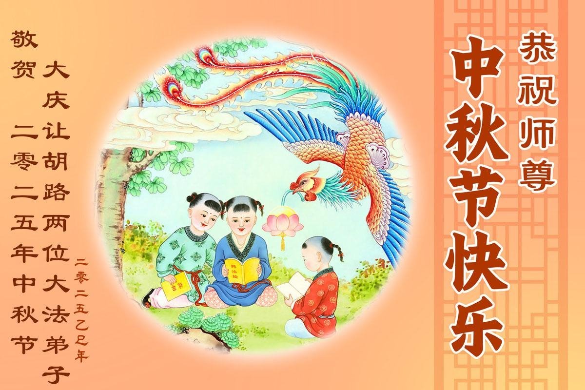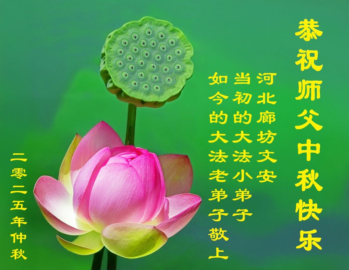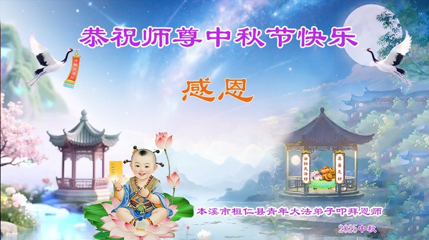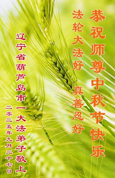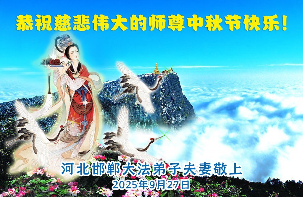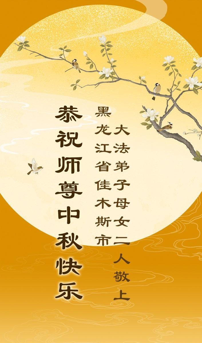 一年一度的中秋团圆佳节已来临,弟子在大洋彼岸向师尊问好。我们已经感觉到与师尊团聚的时间为期不远了。虽然盼望与师父早日团聚,但是大法弟子的使命是重要的。因此,在这最后的时刻,弟子一定抓紧时间做好三件事,完成自己的历史使命,圆满随师还。