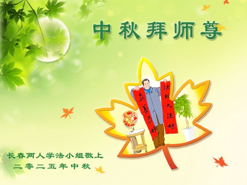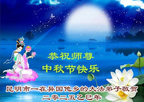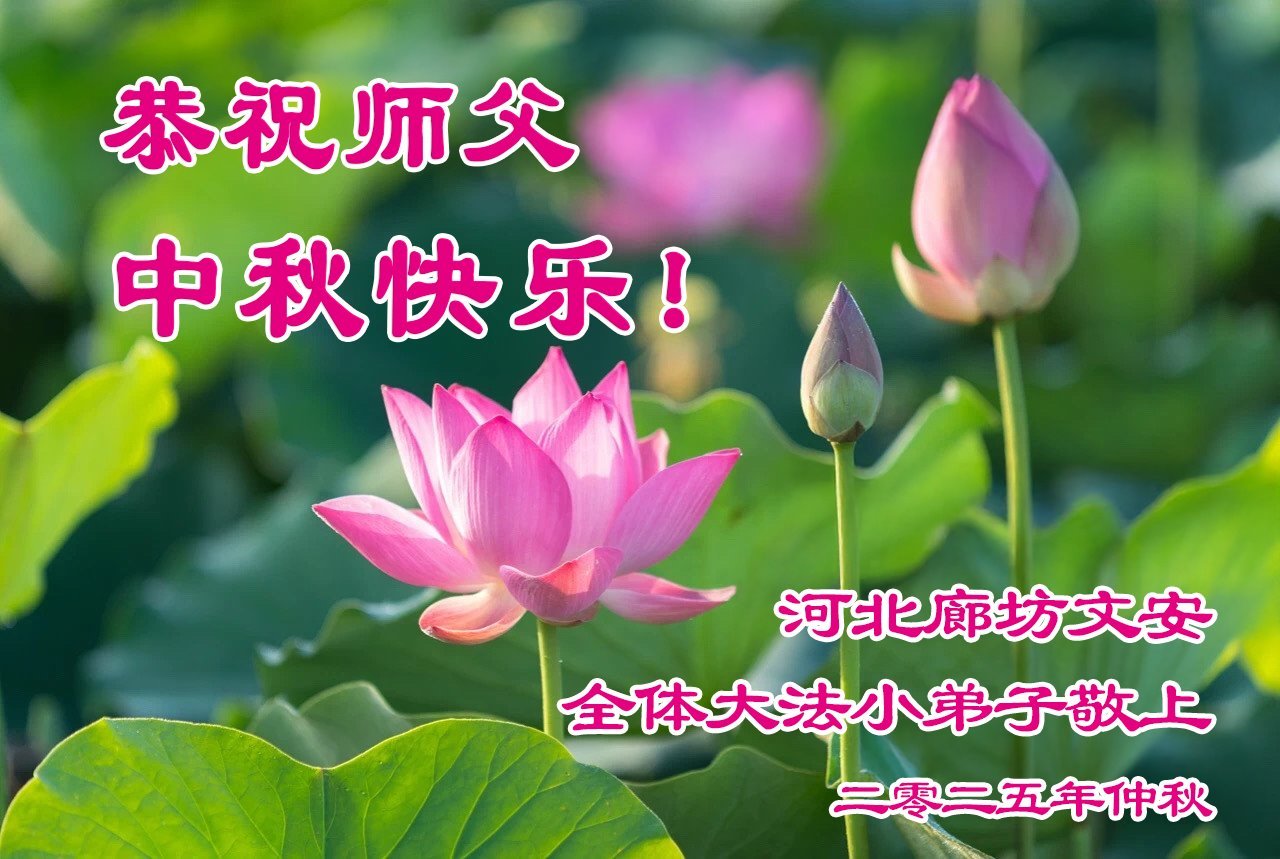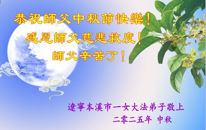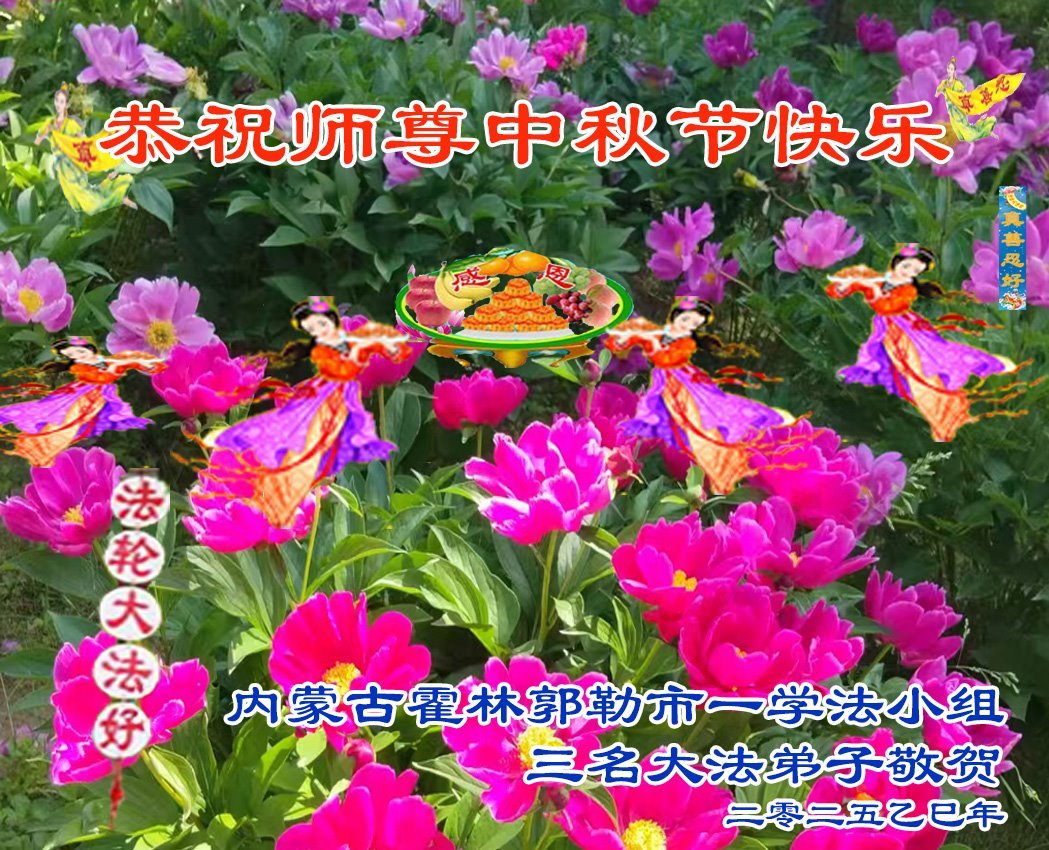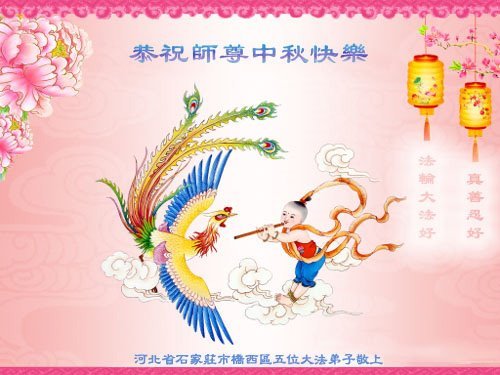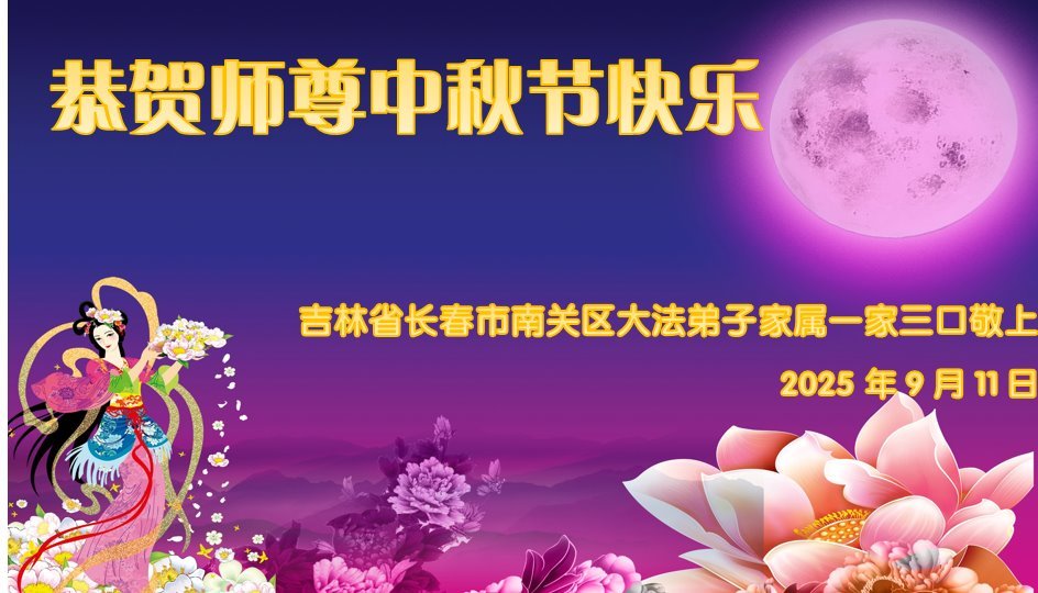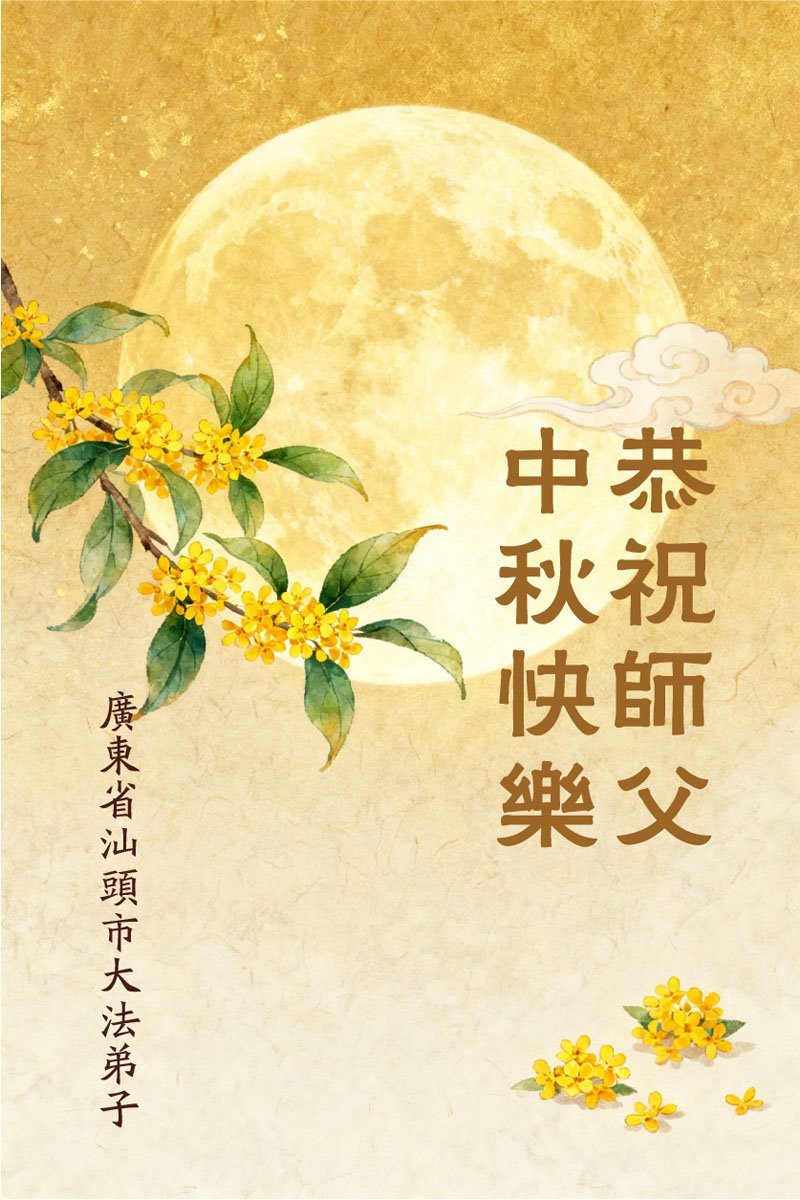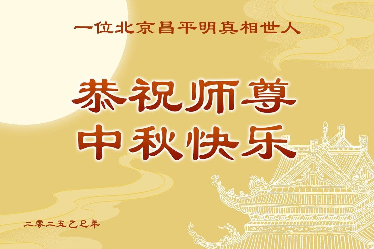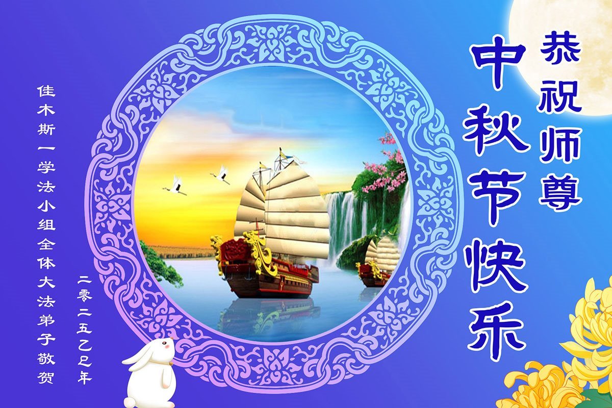 一年一度的中秋团圆佳节已来临,弟子在大洋彼岸向师尊问好。我们已经感觉到与师尊团聚的时间为期不远了。虽然盼望与师父早日团聚,但是大法弟子的使命是重要的。因此,在这最后的时刻,弟子一定抓紧时间做好三件事,完成自己的历史使命,圆满随师还。