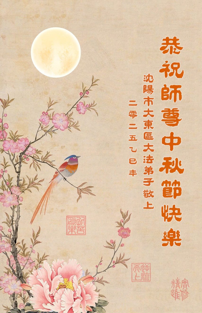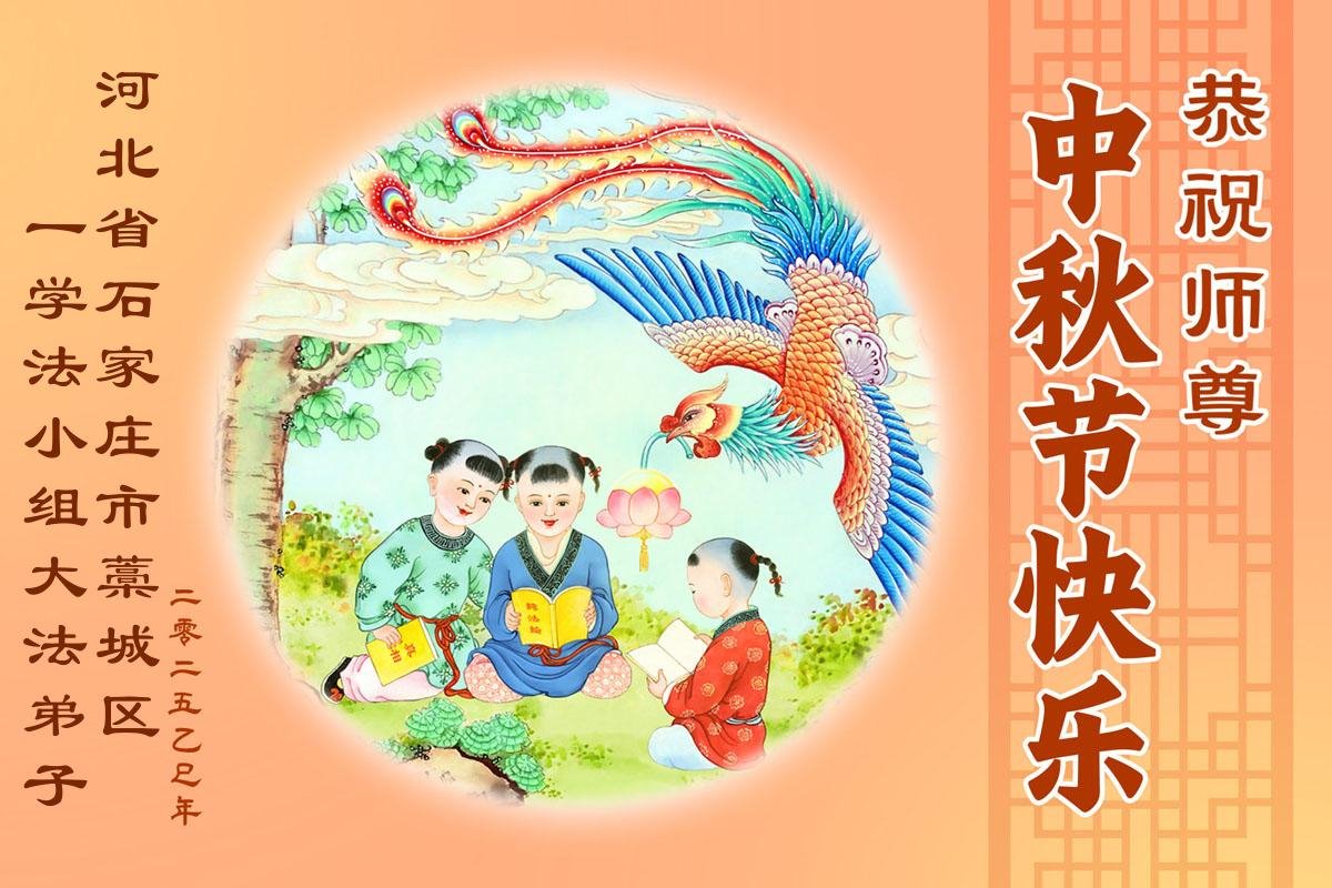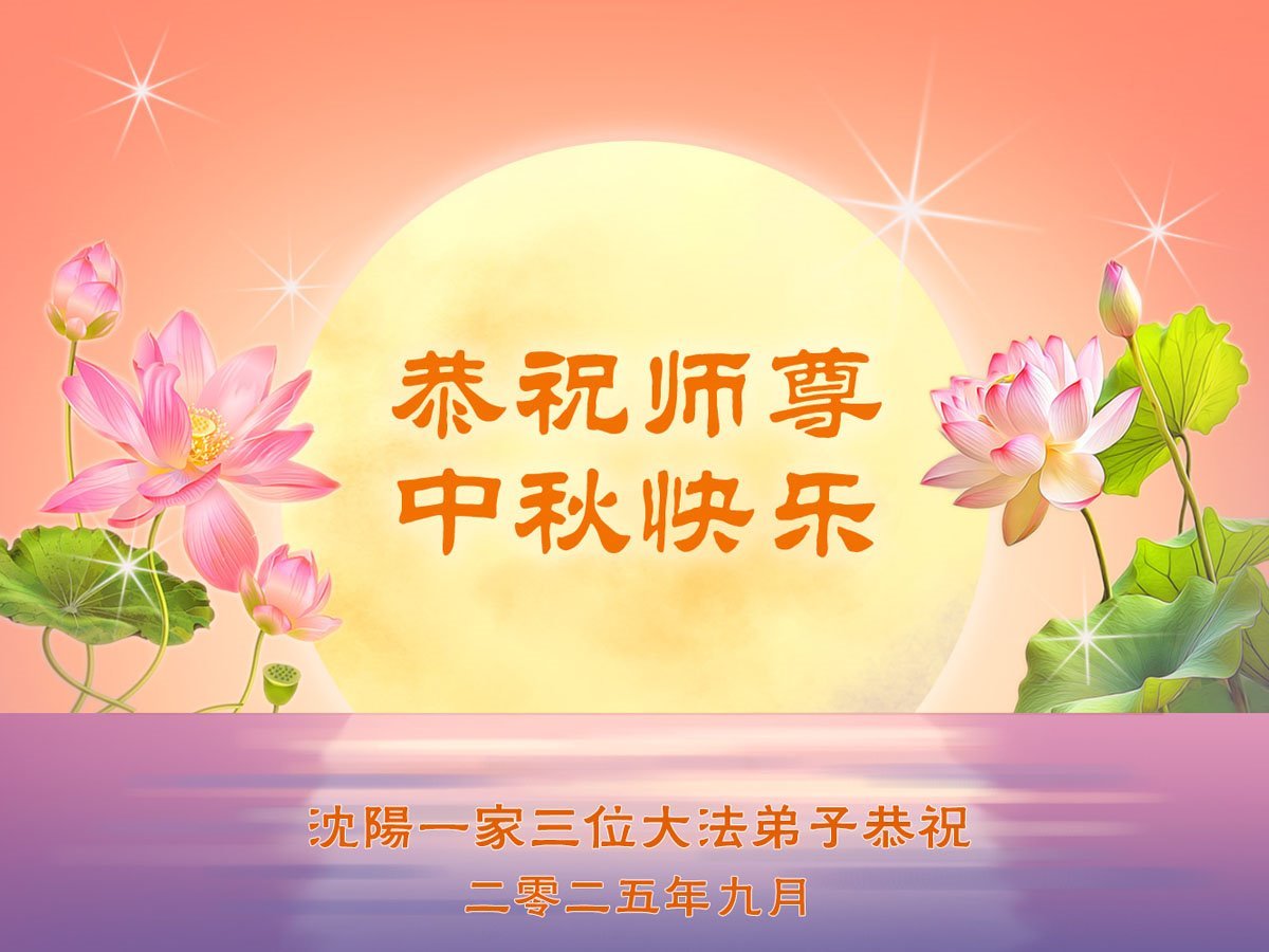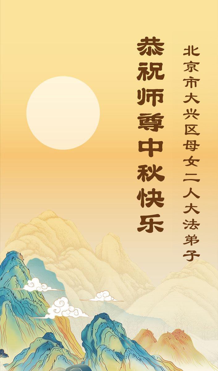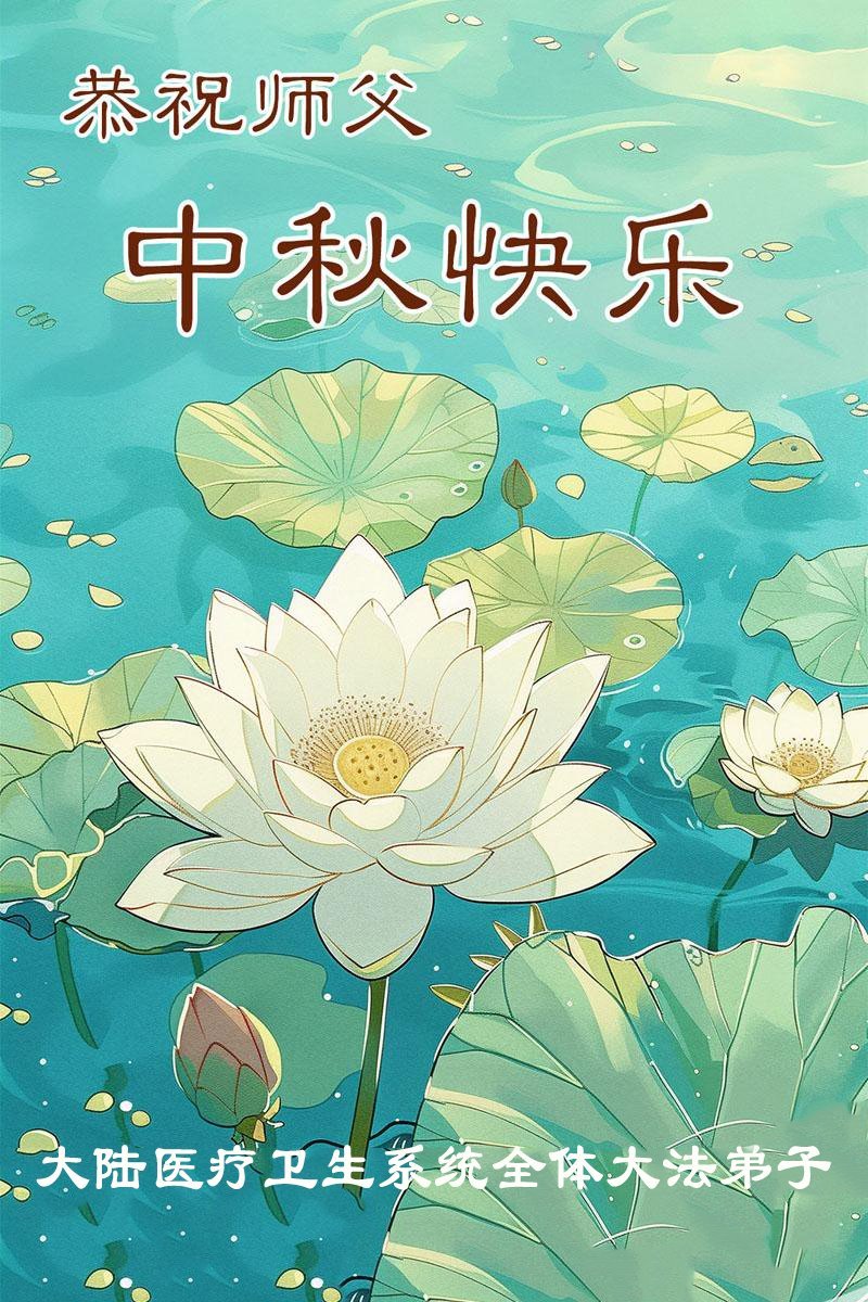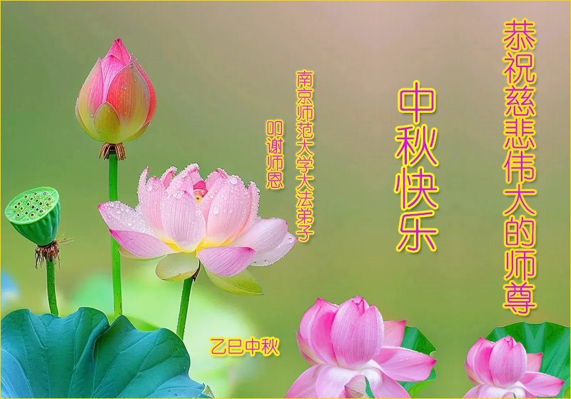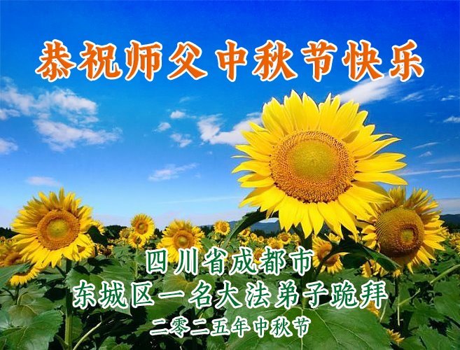 一年一度的中秋团圆佳节已来临,弟子在大洋彼岸向师尊问好。我们已经感觉到与师尊团聚的时间为期不远了。虽然盼望与师父早日团聚,但是大法弟子的使命是重要的。因此,在这最后的时刻,弟子一定抓紧时间做好三件事,完成自己的历史使命,圆满随师还。