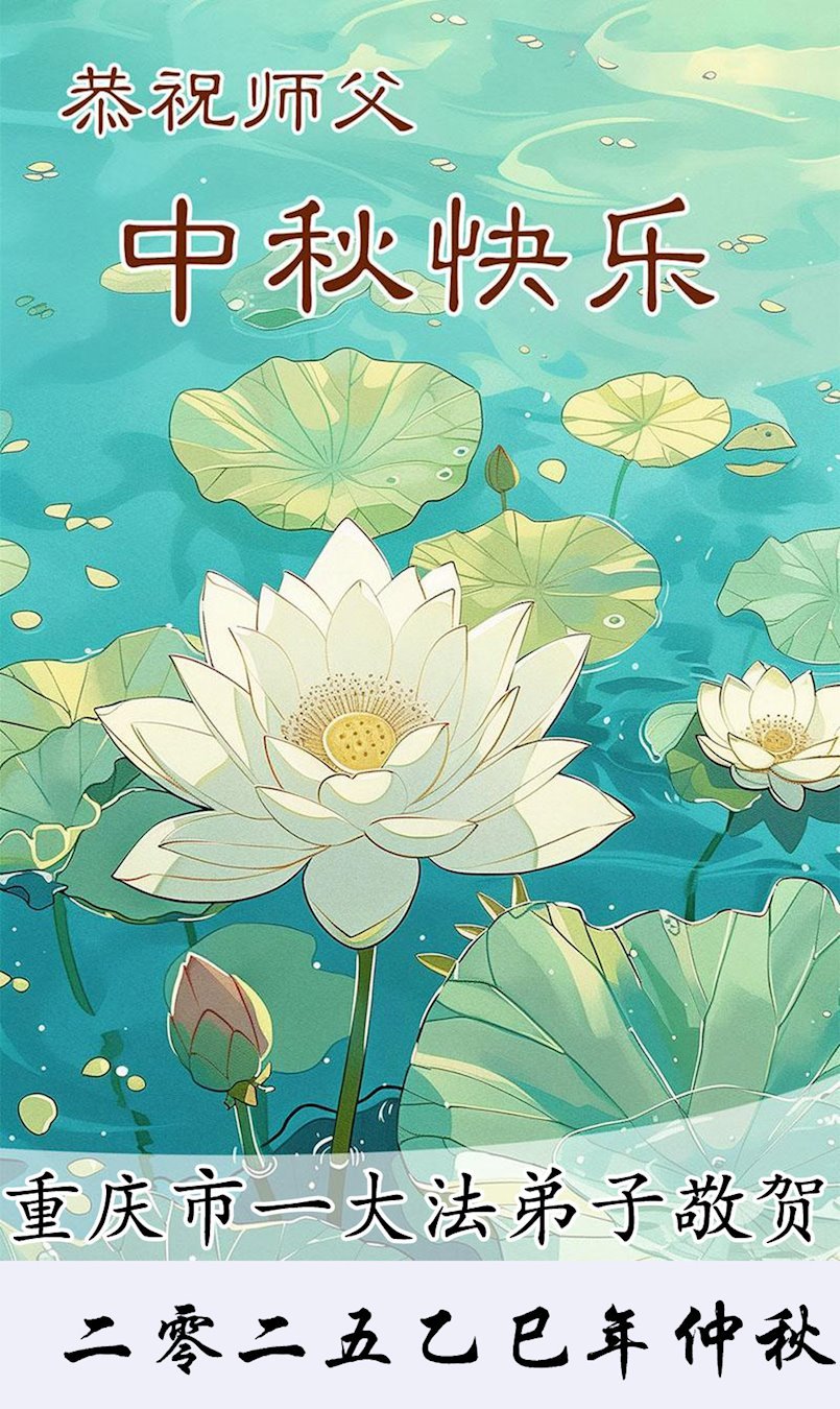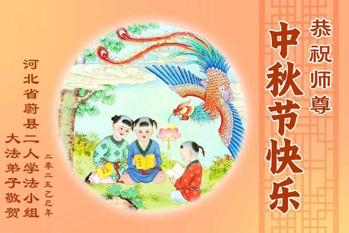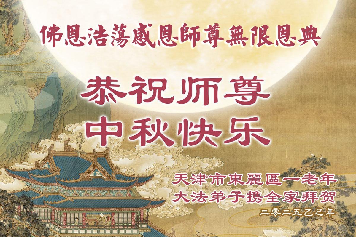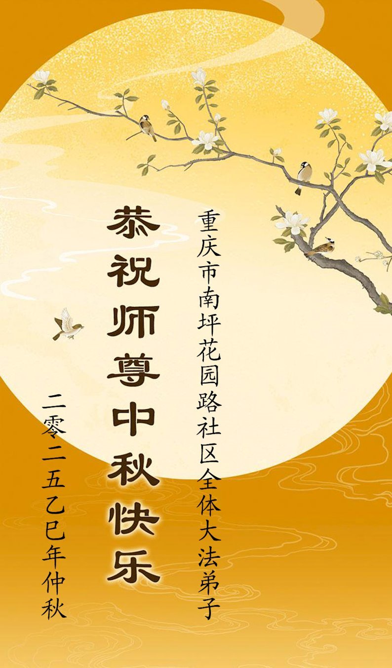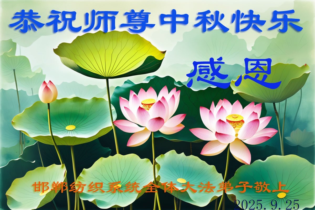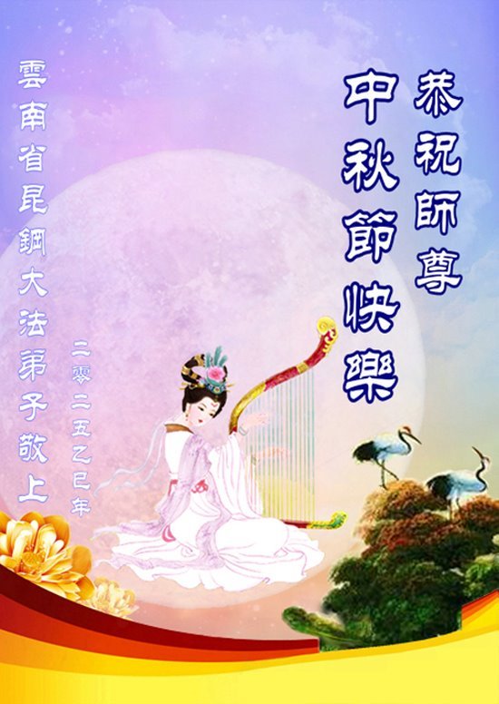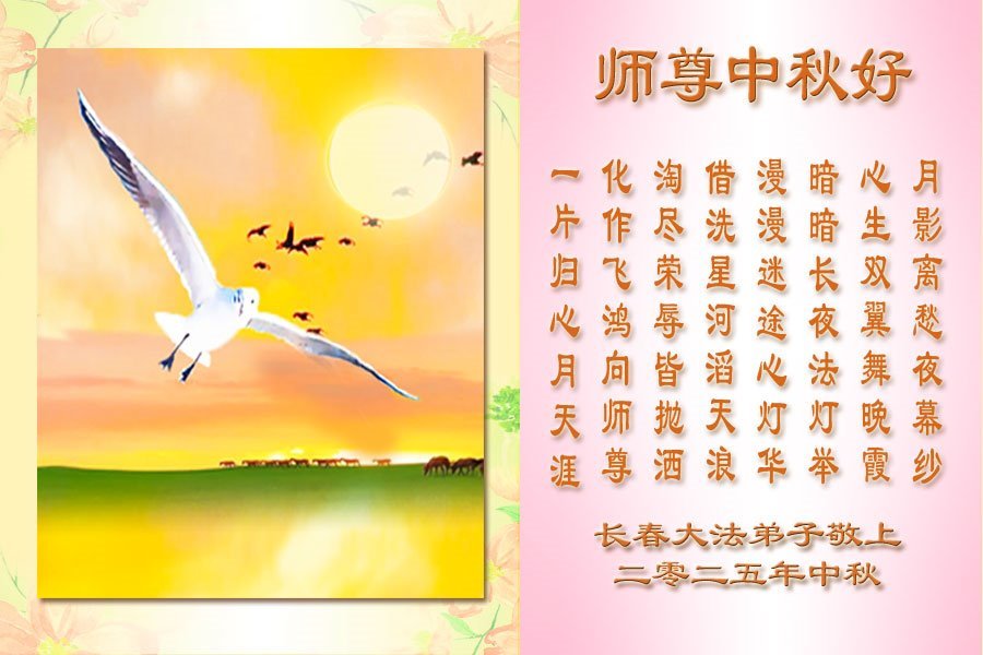一年一度的中秋团圆佳节已来临,弟子在大洋彼岸向师尊问好。我们已经感觉到与师尊团聚的时间为期不远了。虽然盼望与师父早日团聚,但是大法弟子的使命是重要的。因此,在这最后的时刻,弟子一定抓紧时间做好三件事,完成自己的历史使命,圆满随师还。