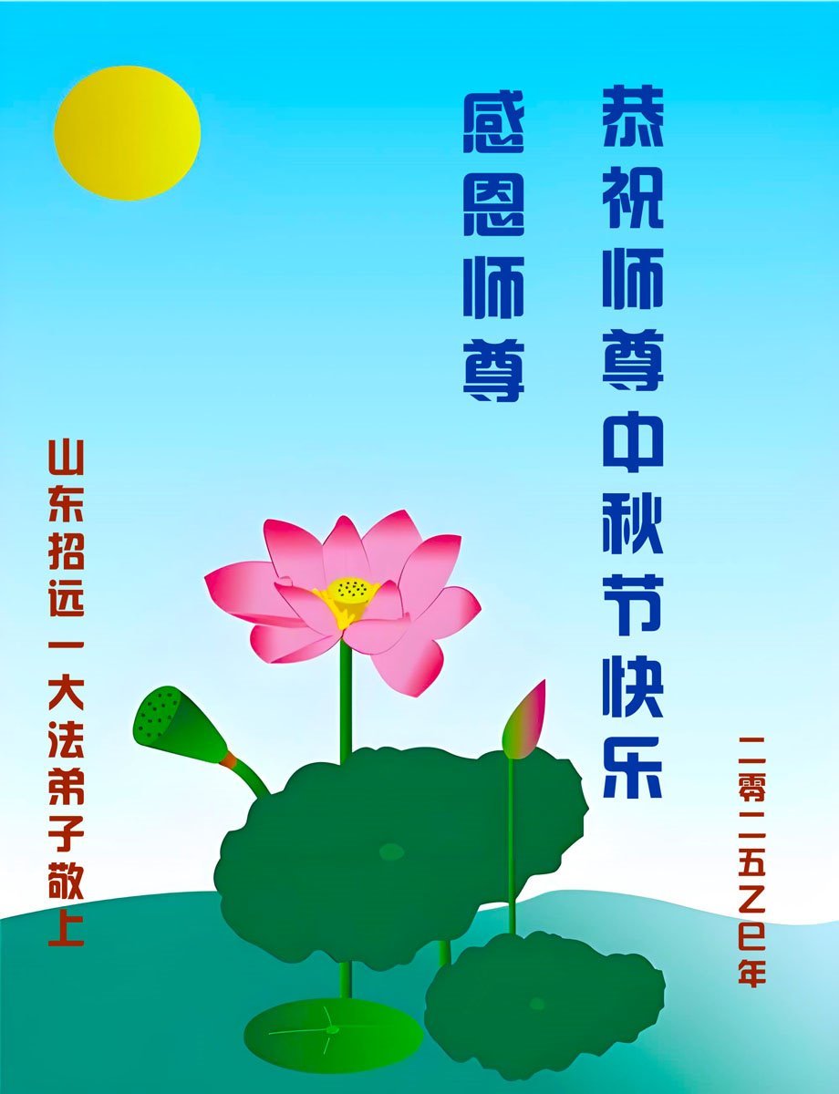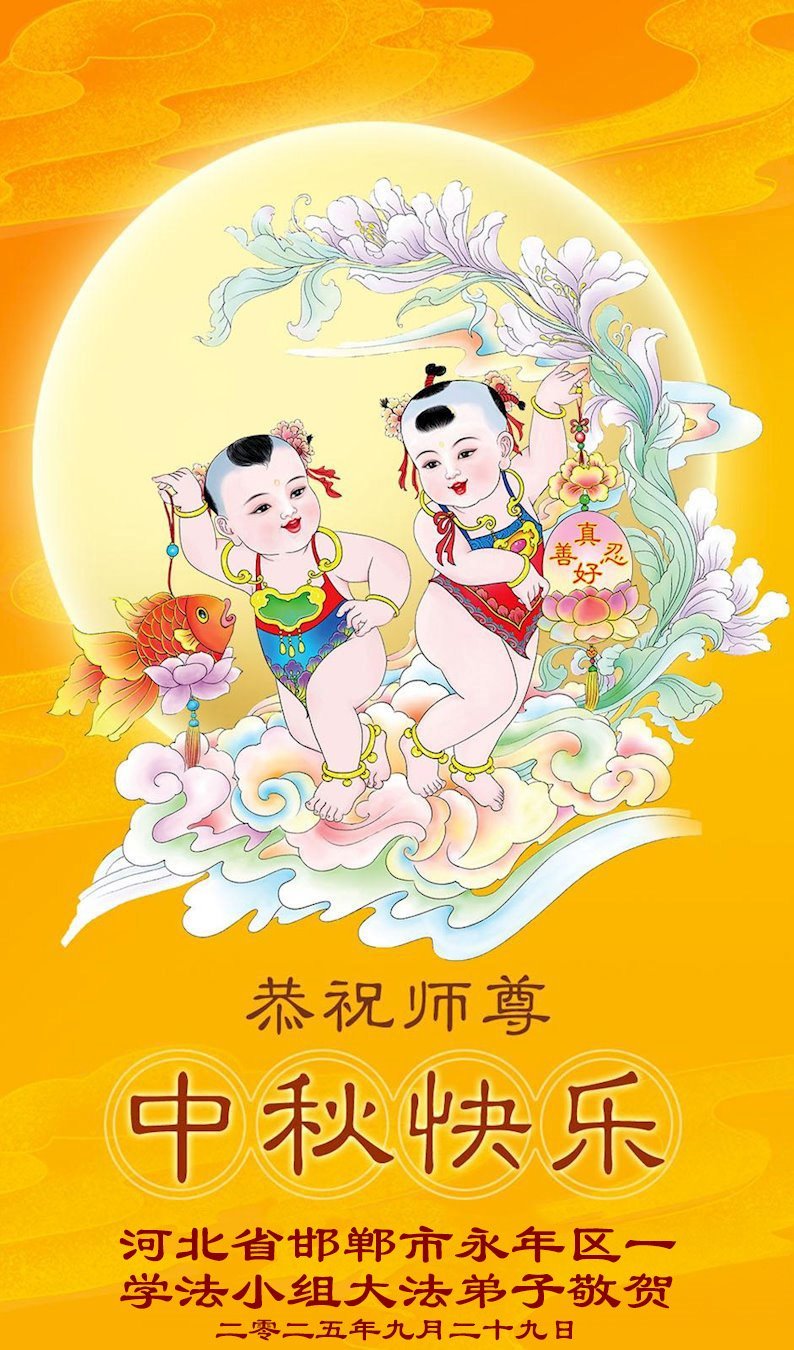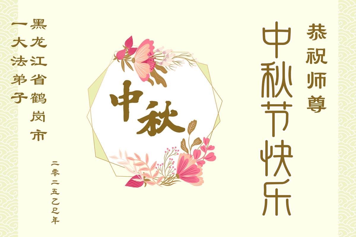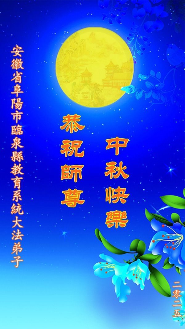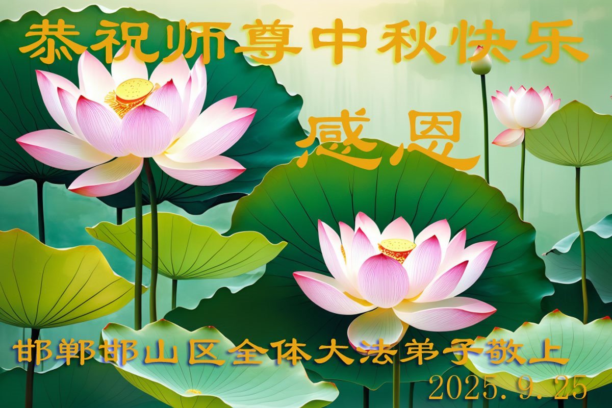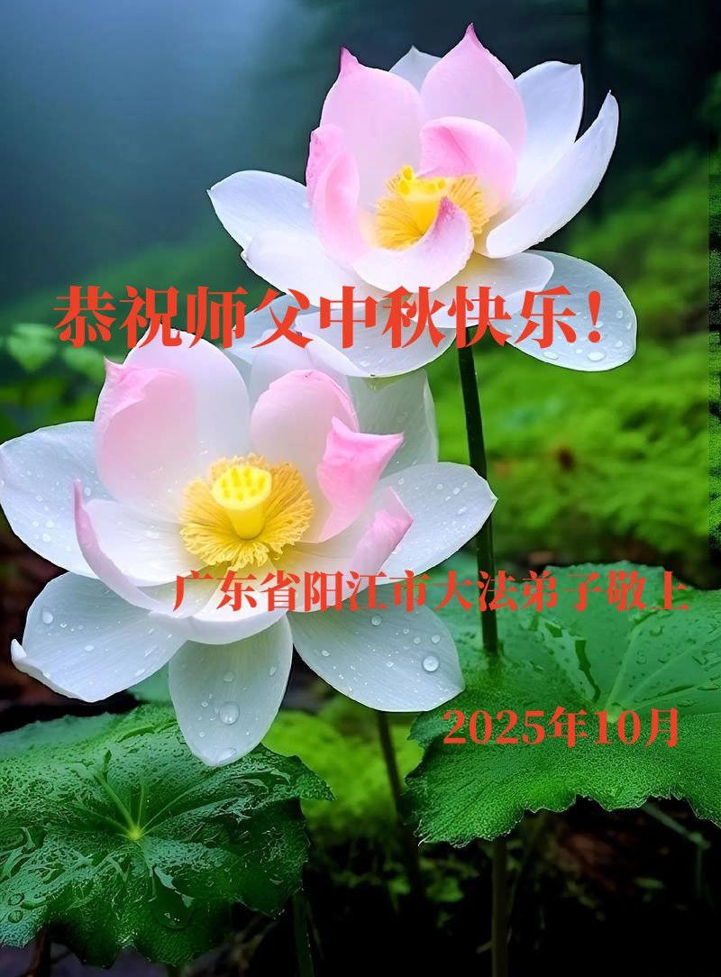 一年一度的中秋团圆佳节已来临,弟子在大洋彼岸向师尊问好。我们已经感觉到与师尊团聚的时间为期不远了。虽然盼望与师父早日团聚,但是大法弟子的使命是重要的。因此,在这最后的时刻,弟子一定抓紧时间做好三件事,完成自己的历史使命,圆满随师还。
