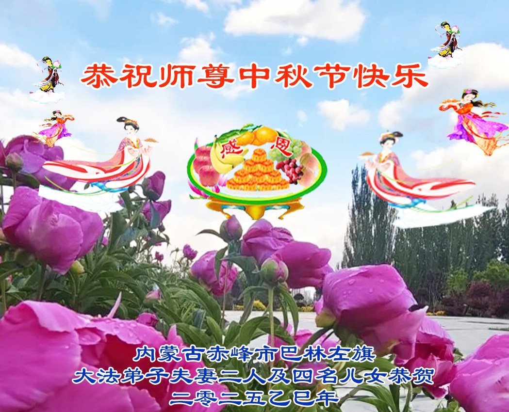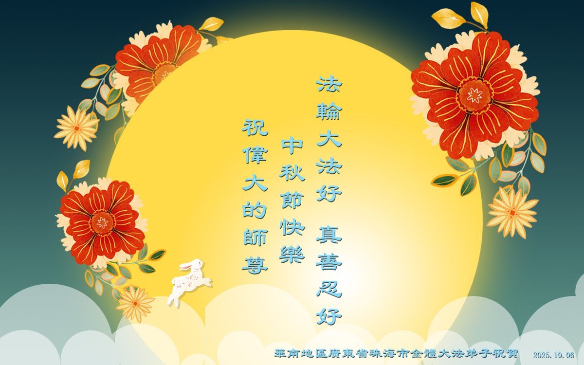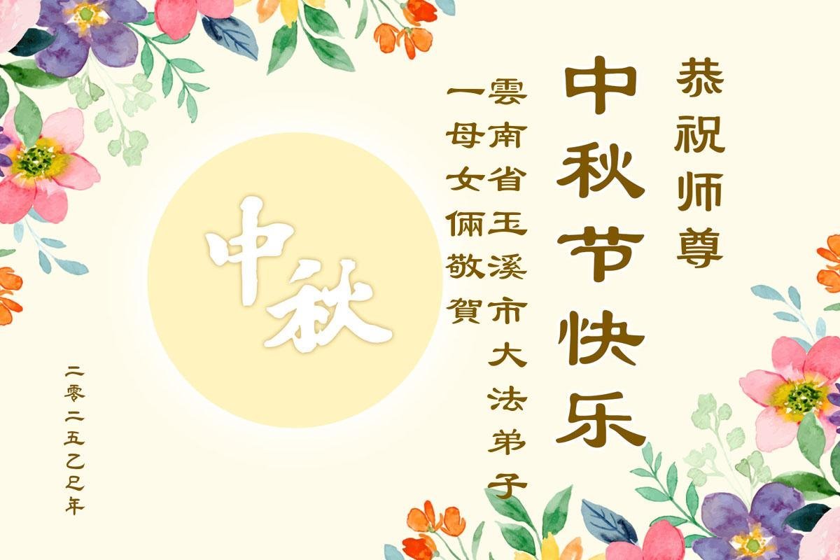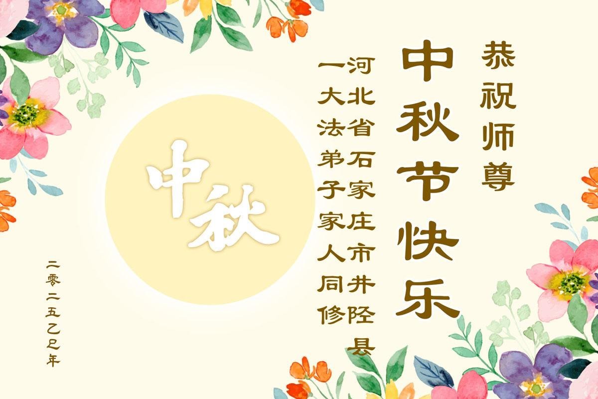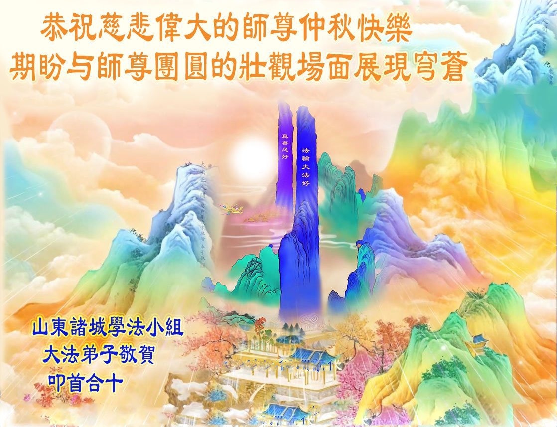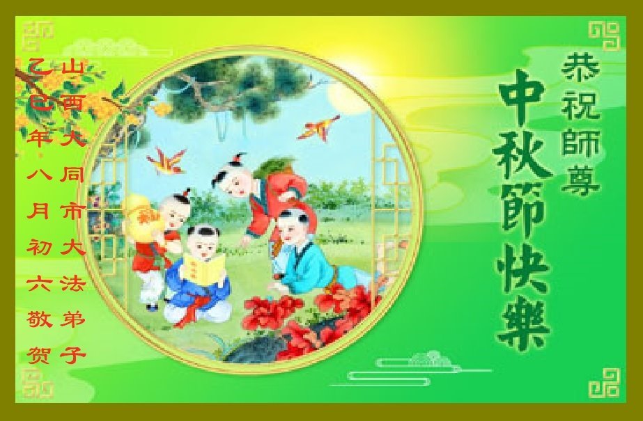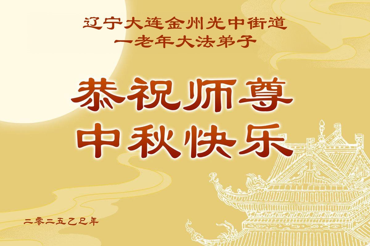 一年一度的中秋团圆佳节已来临,弟子在大洋彼岸向师尊问好。我们已经感觉到与师尊团聚的时间为期不远了。虽然盼望与师父早日团聚,但是大法弟子的使命是重要的。因此,在这最后的时刻,弟子一定抓紧时间做好三件事,完成自己的历史使命,圆满随师还。