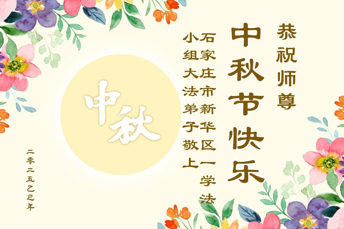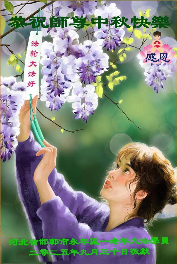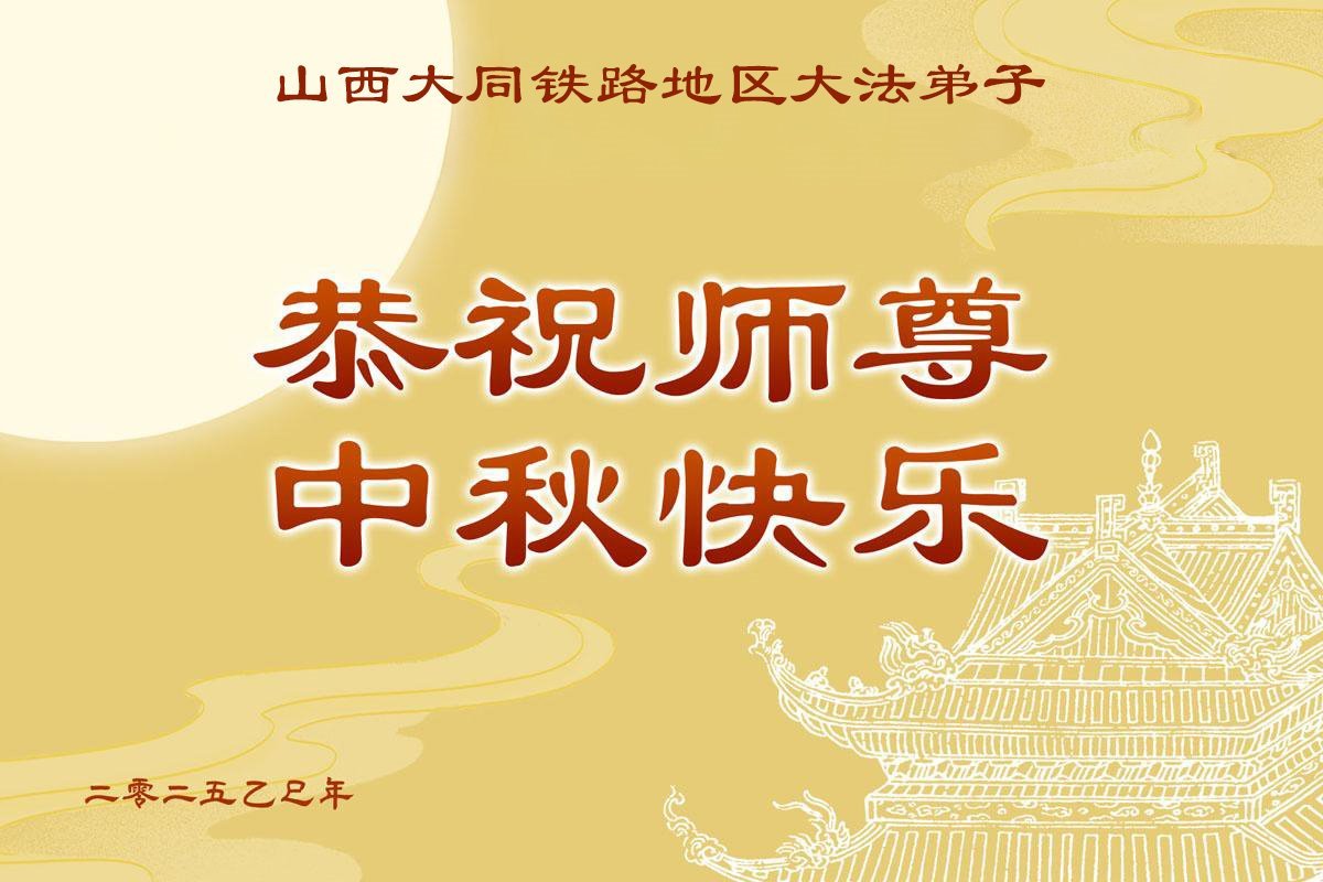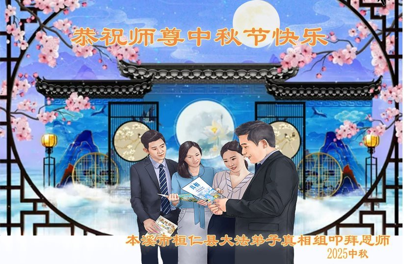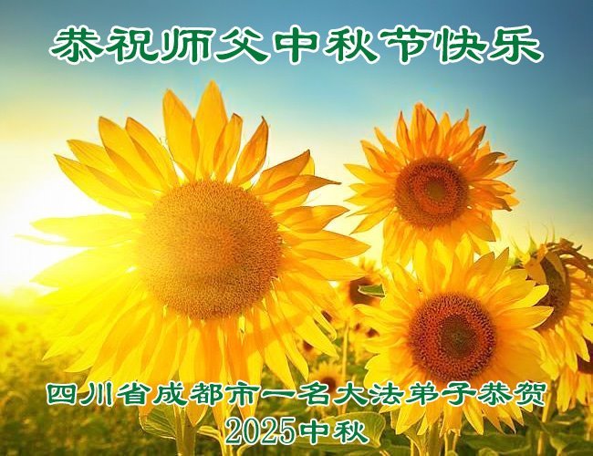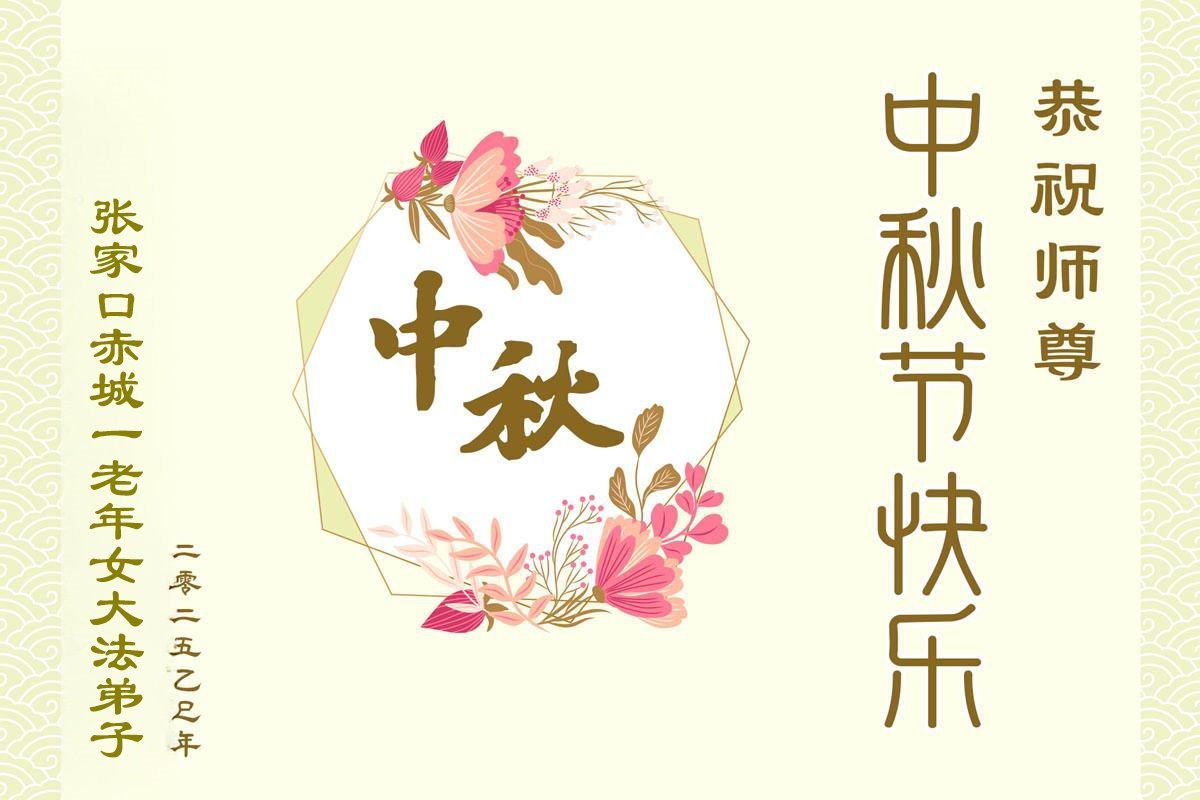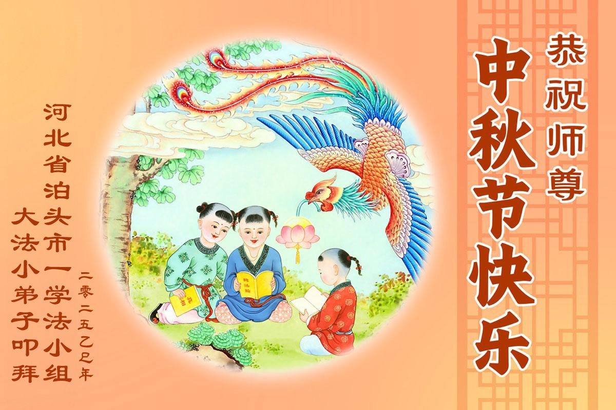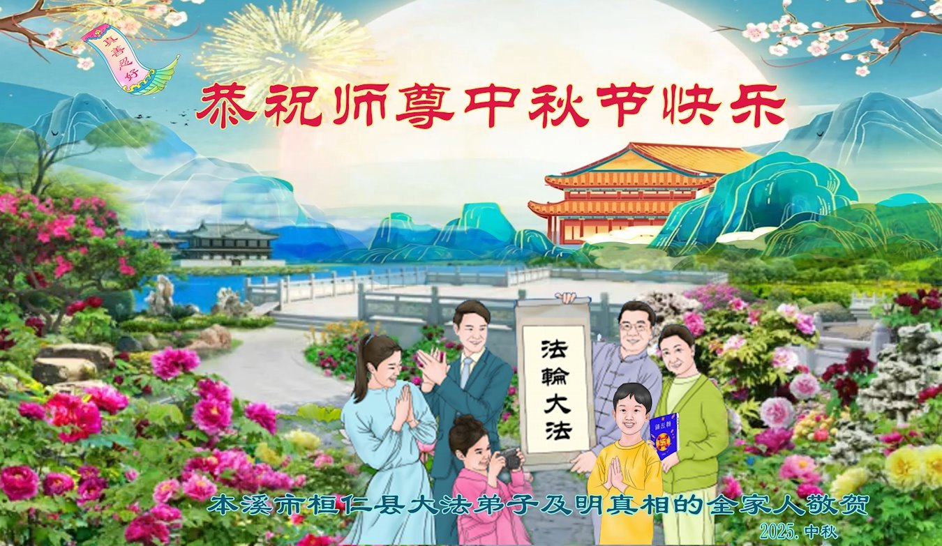 一年一度的中秋团圆佳节已来临,弟子在大洋彼岸向师尊问好。我们已经感觉到与师尊团聚的时间为期不远了。虽然盼望与师父早日团聚,但是大法弟子的使命是重要的。因此,在这最后的时刻,弟子一定抓紧时间做好三件事,完成自己的历史使命,圆满随师还。