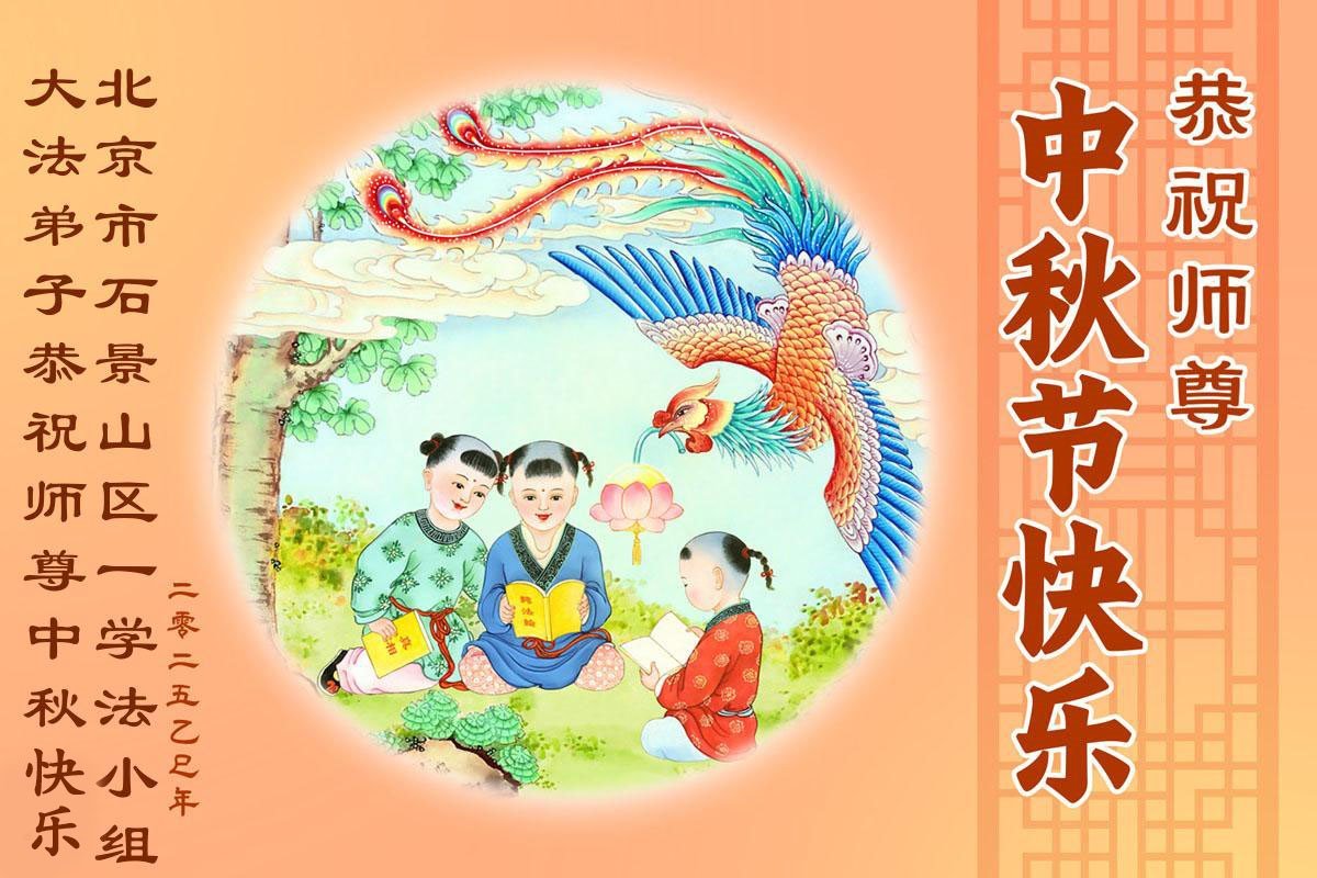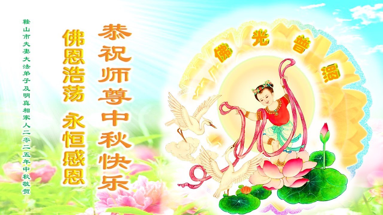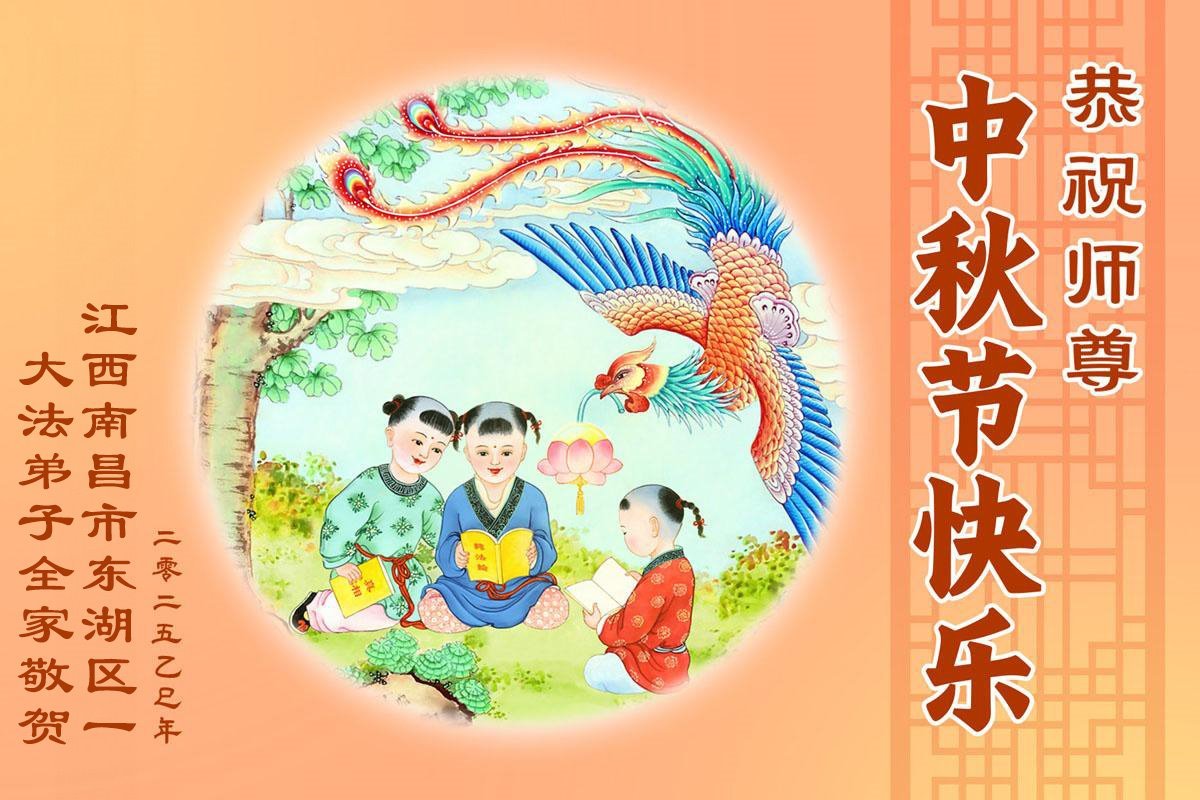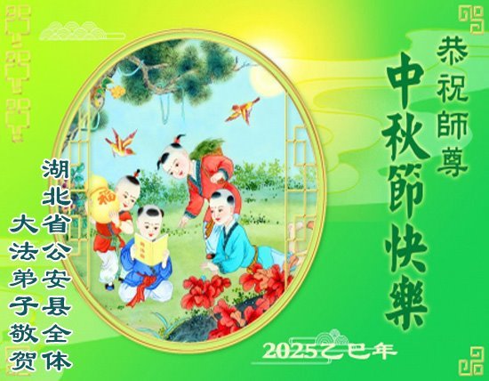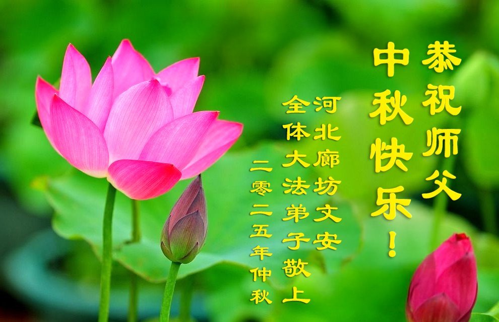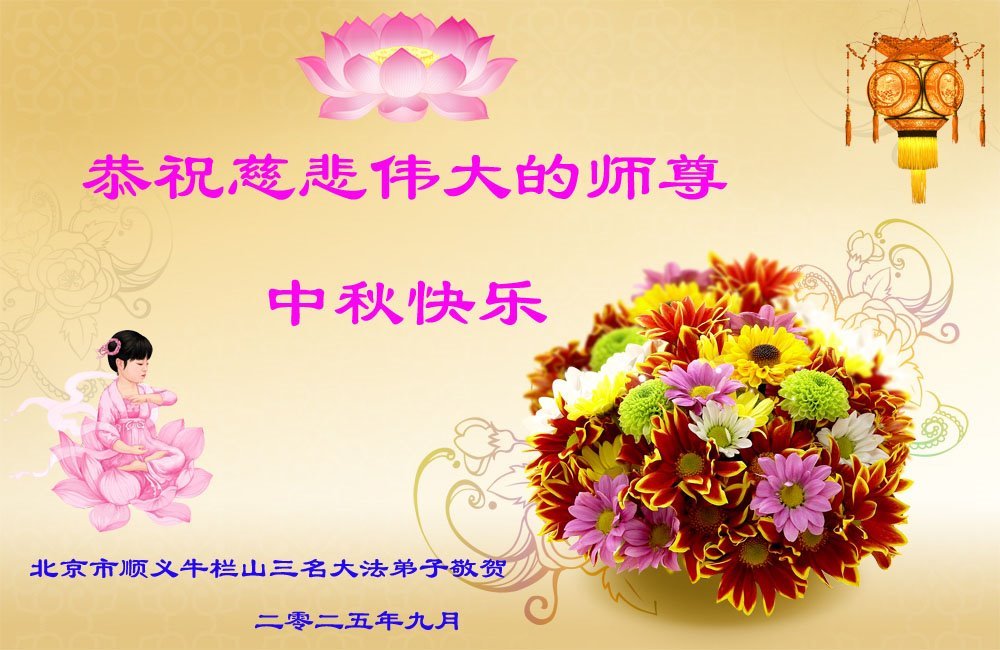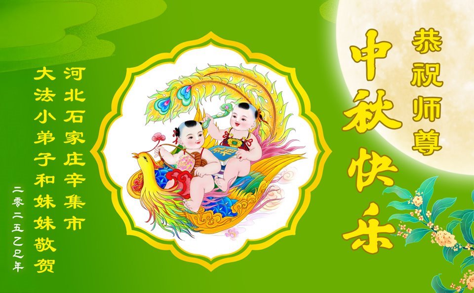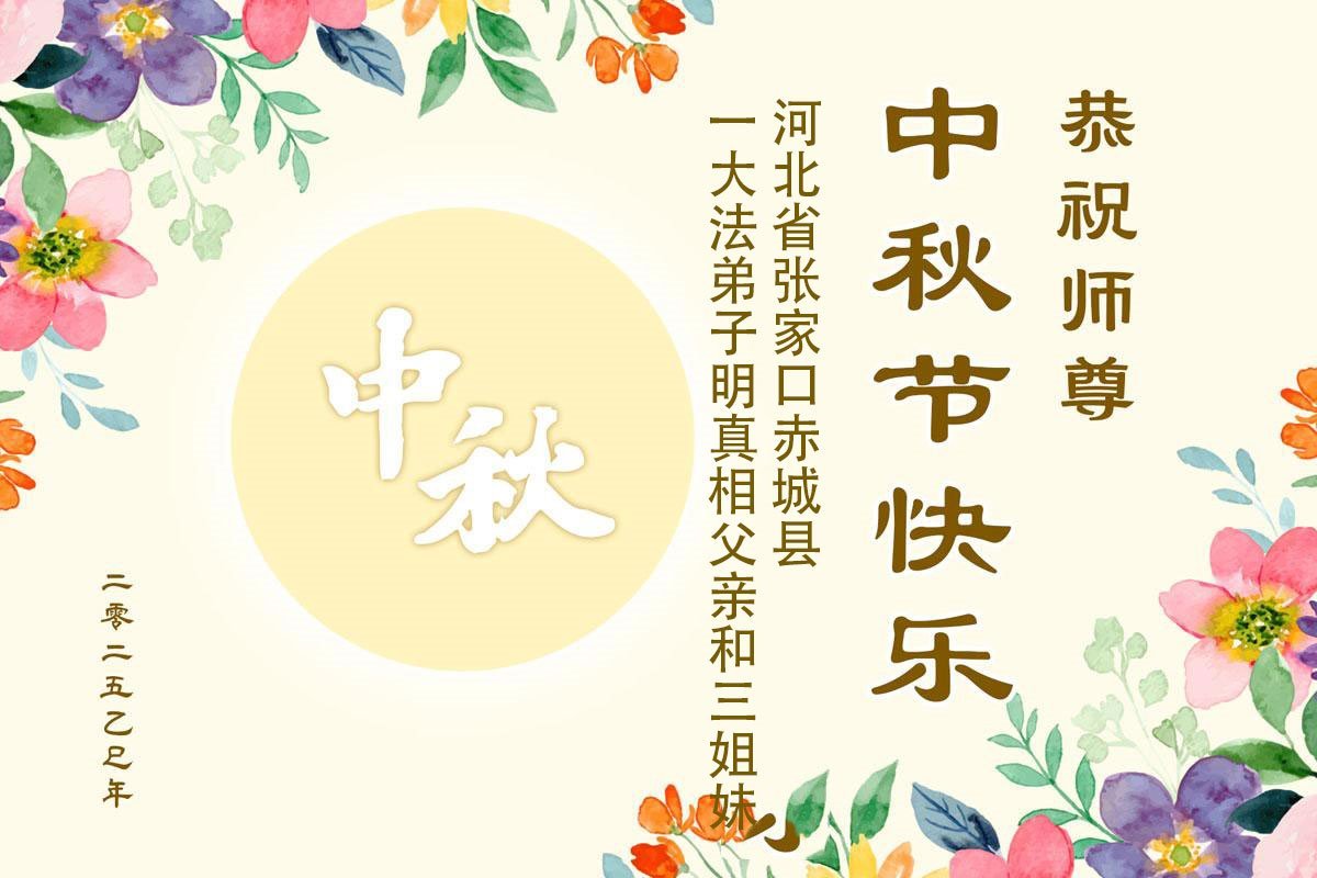 一年一度的中秋团圆佳节已来临,弟子在大洋彼岸向师尊问好。我们已经感觉到与师尊团聚的时间为期不远了。虽然盼望与师父早日团聚,但是大法弟子的使命是重要的。因此,在这最后的时刻,弟子一定抓紧时间做好三件事,完成自己的历史使命,圆满随师还。