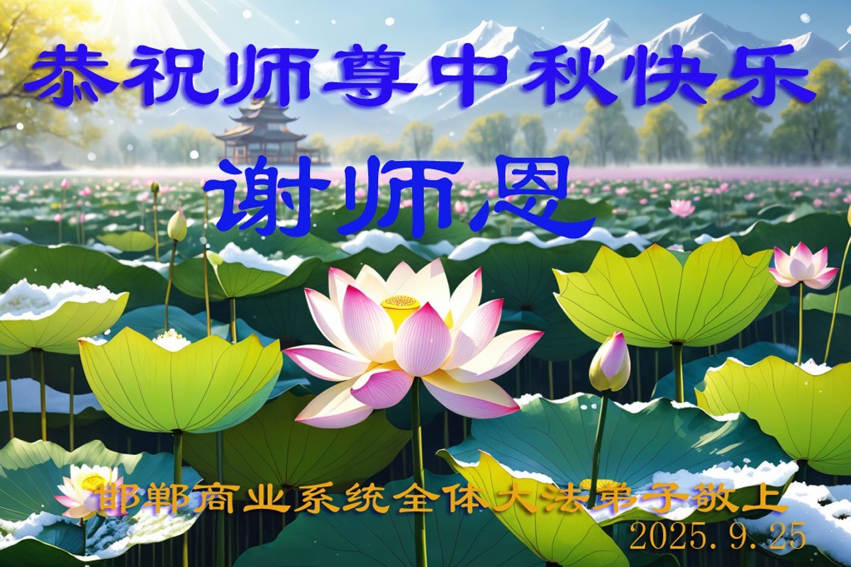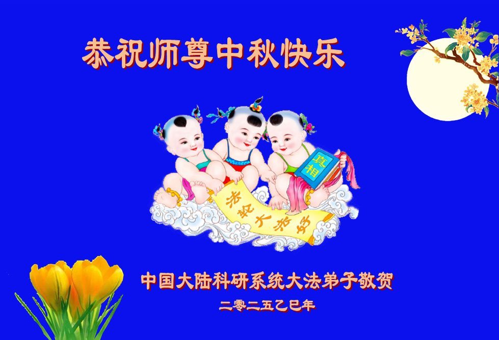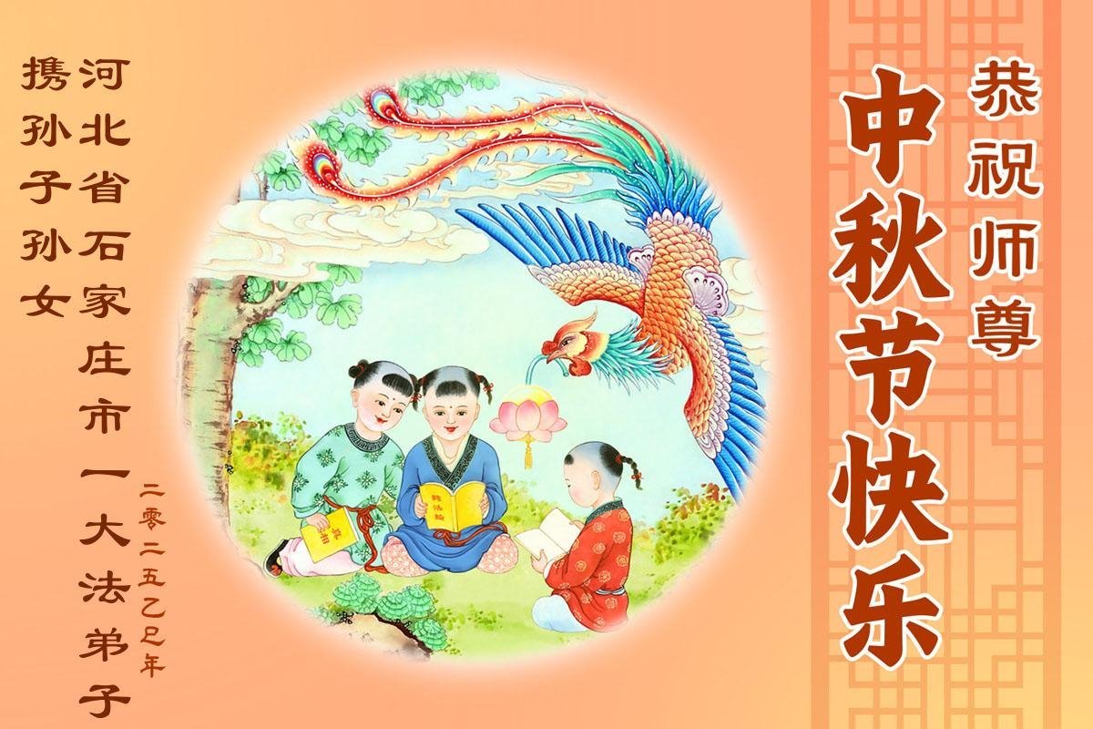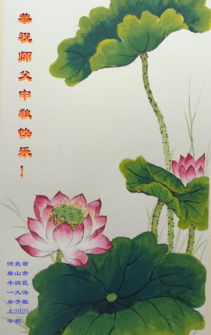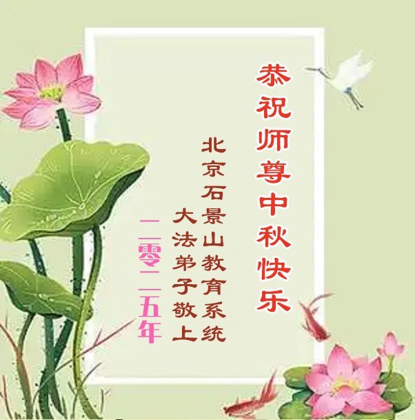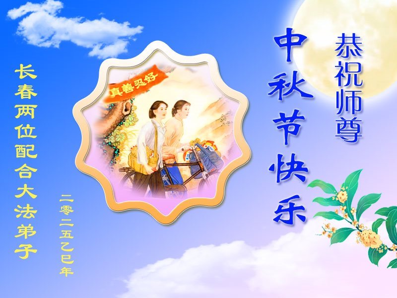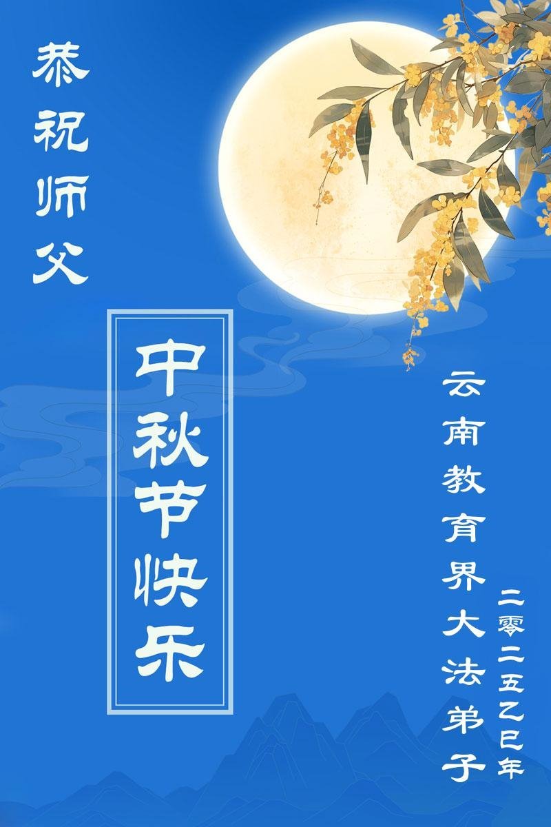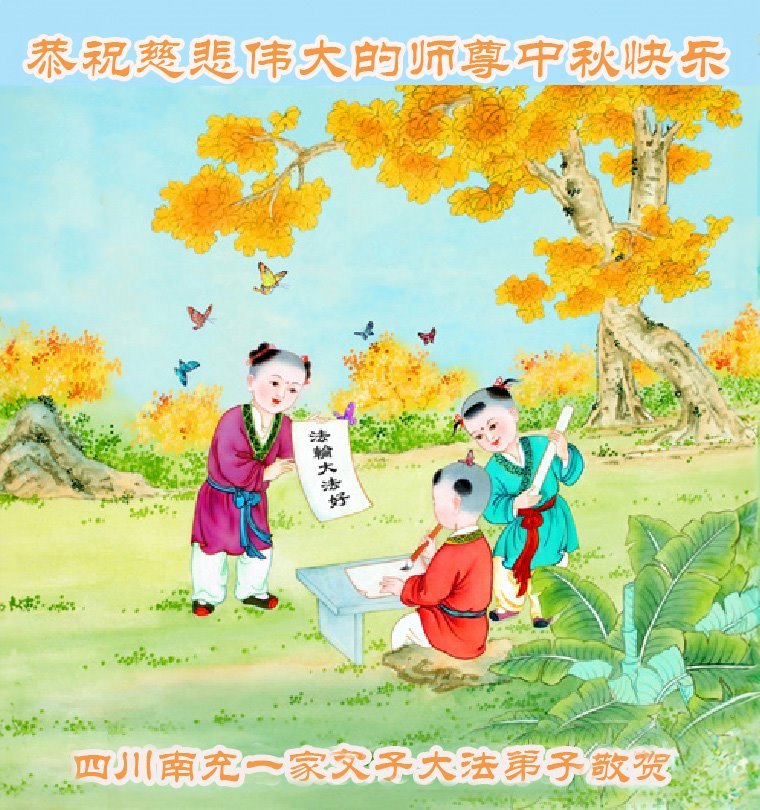 一年一度的中秋团圆佳节已来临,弟子在大洋彼岸向师尊问好。我们已经感觉到与师尊团聚的时间为期不远了。虽然盼望与师父早日团聚,但是大法弟子的使命是重要的。因此,在这最后的时刻,弟子一定抓紧时间做好三件事,完成自己的历史使命,圆满随师还。