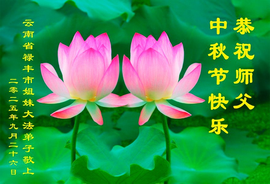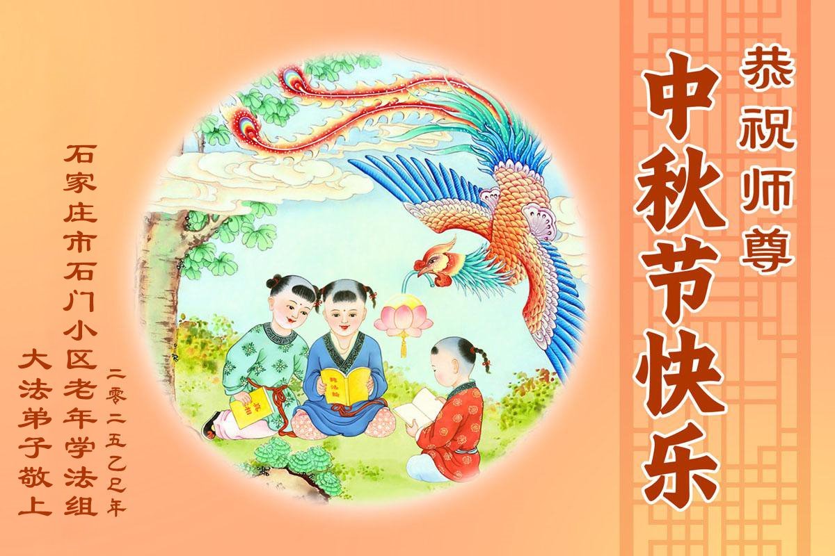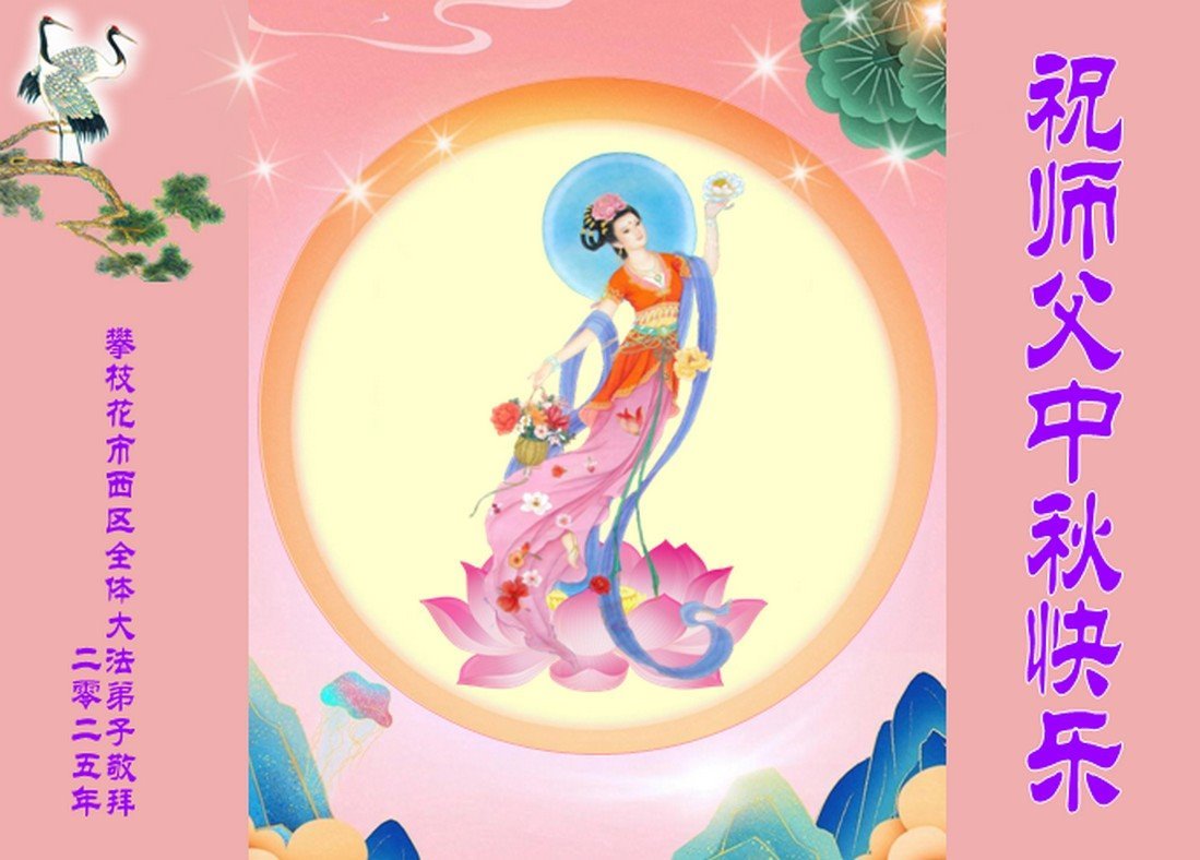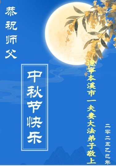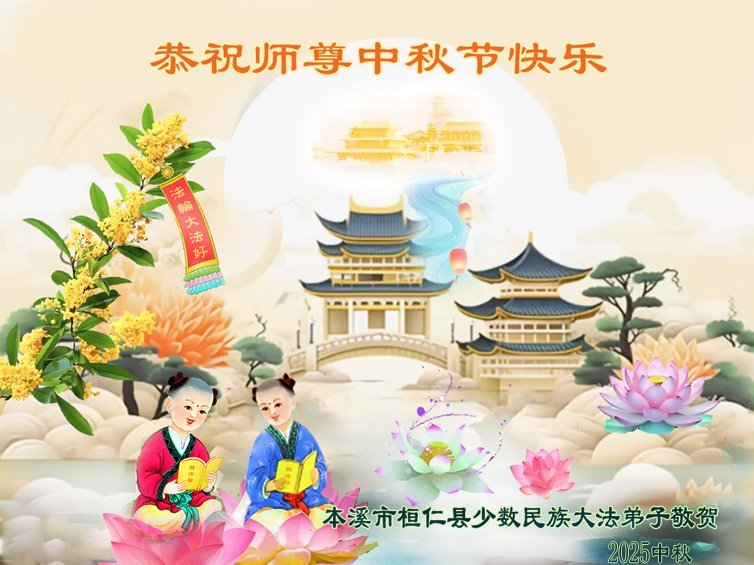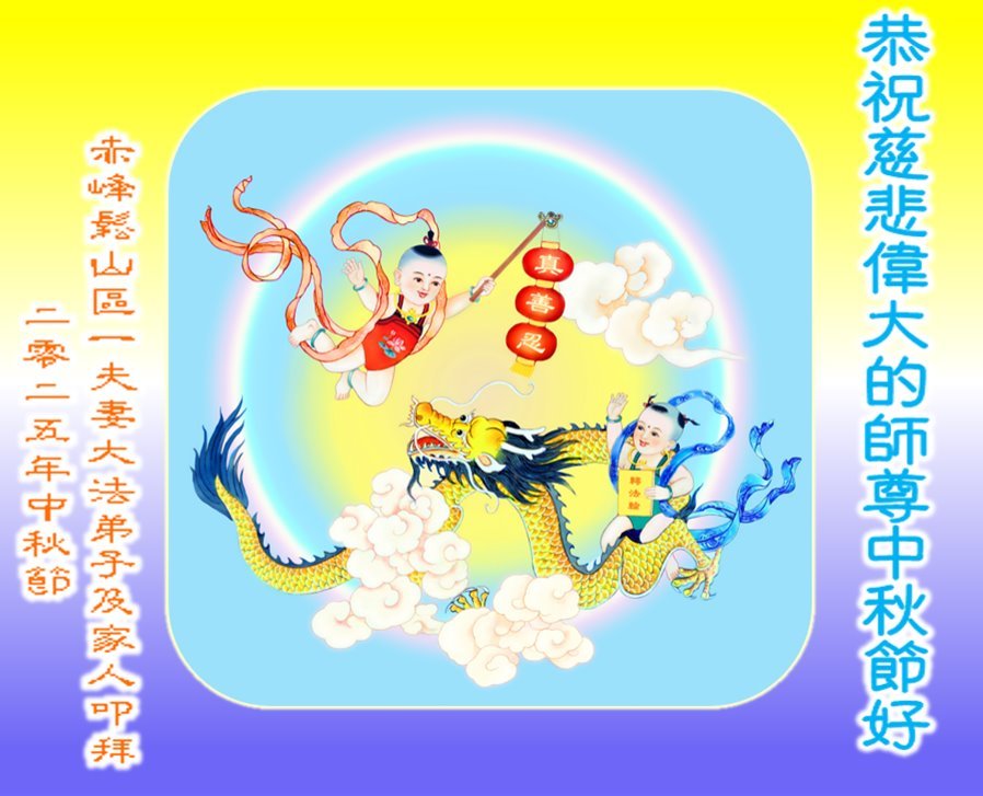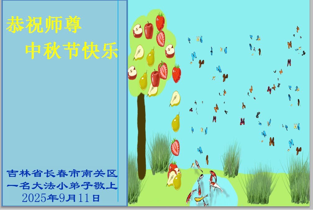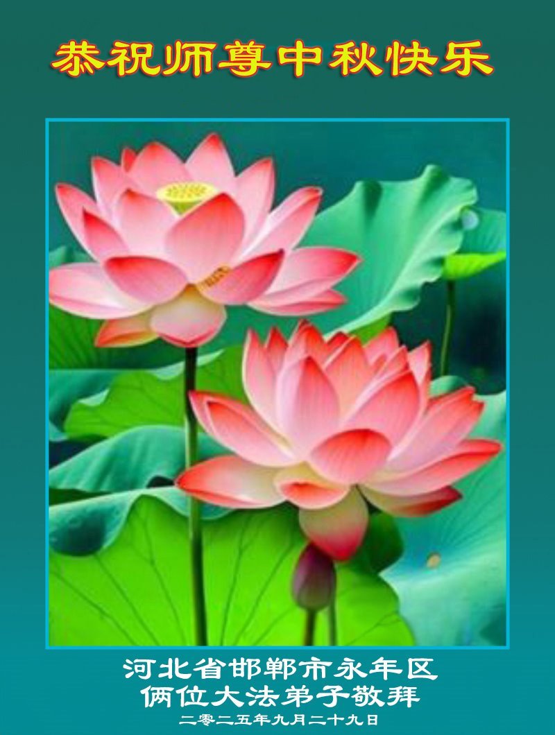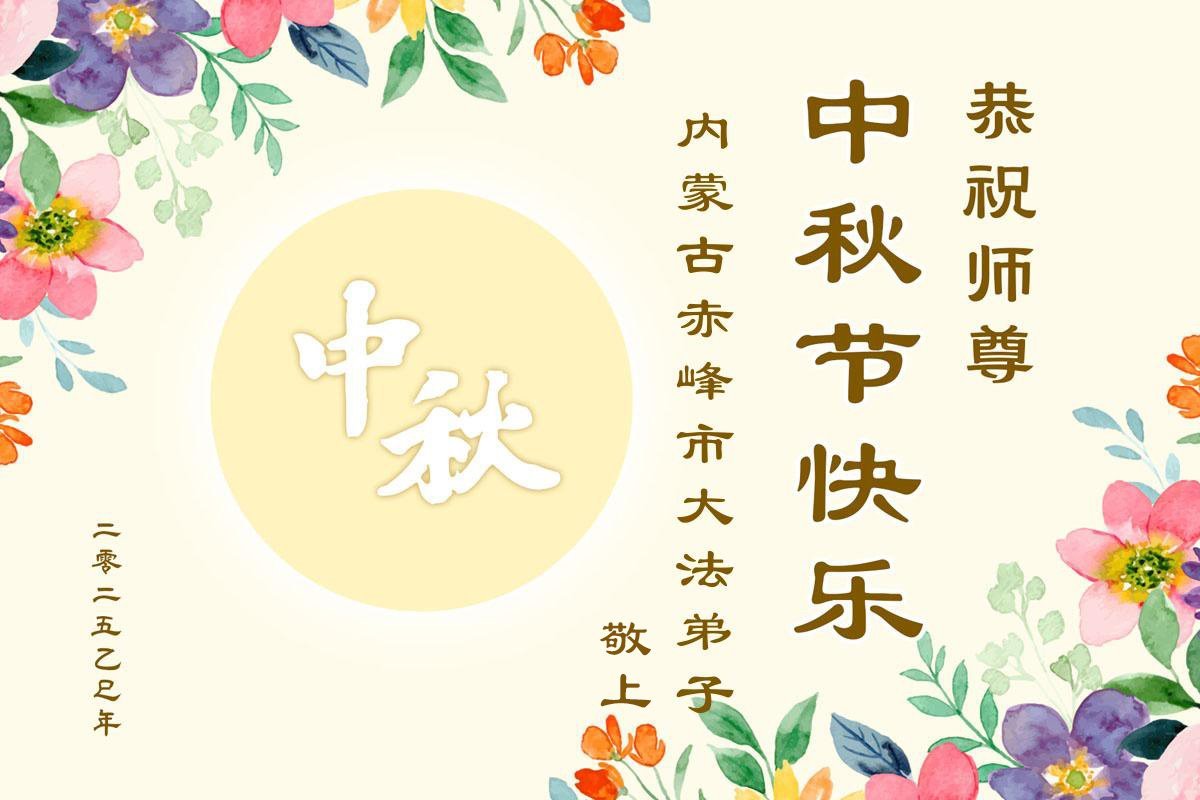 一年一度的中秋团圆佳节已来临,弟子在大洋彼岸向师尊问好。我们已经感觉到与师尊团聚的时间为期不远了。虽然盼望与师父早日团聚,但是大法弟子的使命是重要的。因此,在这最后的时刻,弟子一定抓紧时间做好三件事,完成自己的历史使命,圆满随师还。