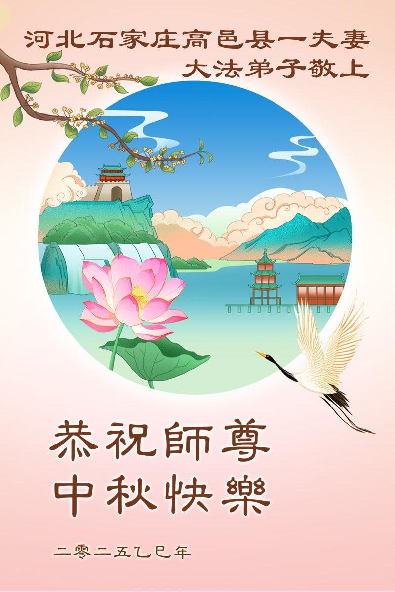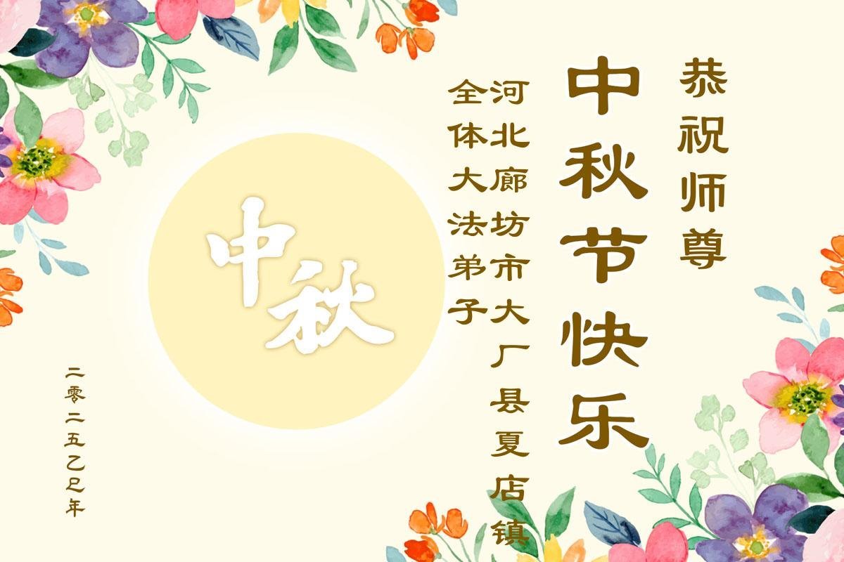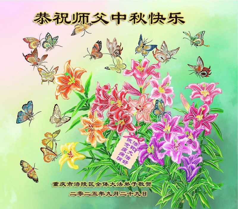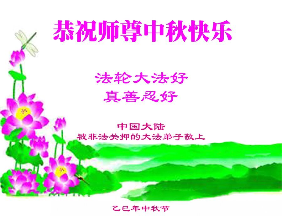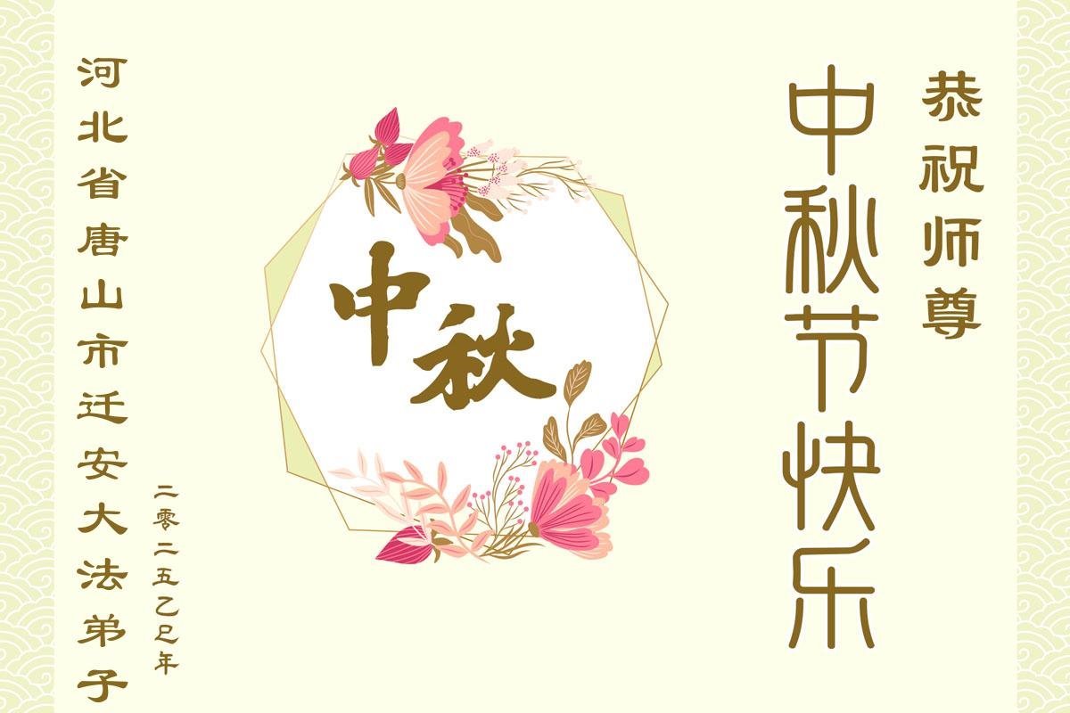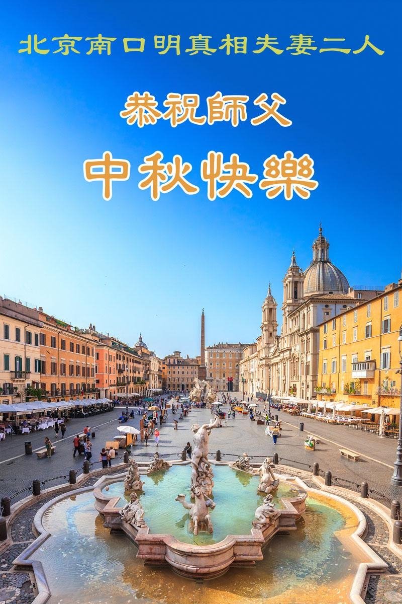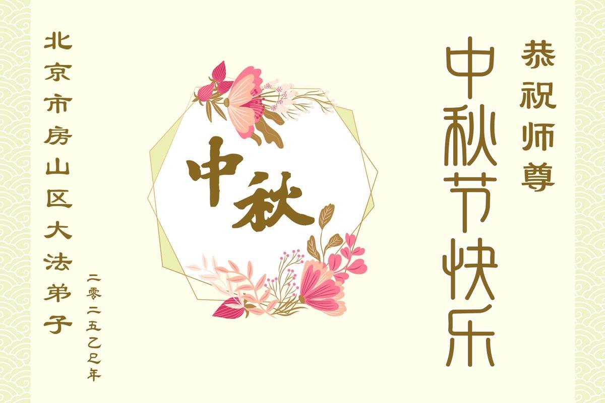 一年一度的中秋团圆佳节已来临,弟子在大洋彼岸向师尊问好。我们已经感觉到与师尊团聚的时间为期不远了。虽然盼望与师父早日团聚,但是大法弟子的使命是重要的。因此,在这最后的时刻,弟子一定抓紧时间做好三件事,完成自己的历史使命,圆满随师还。