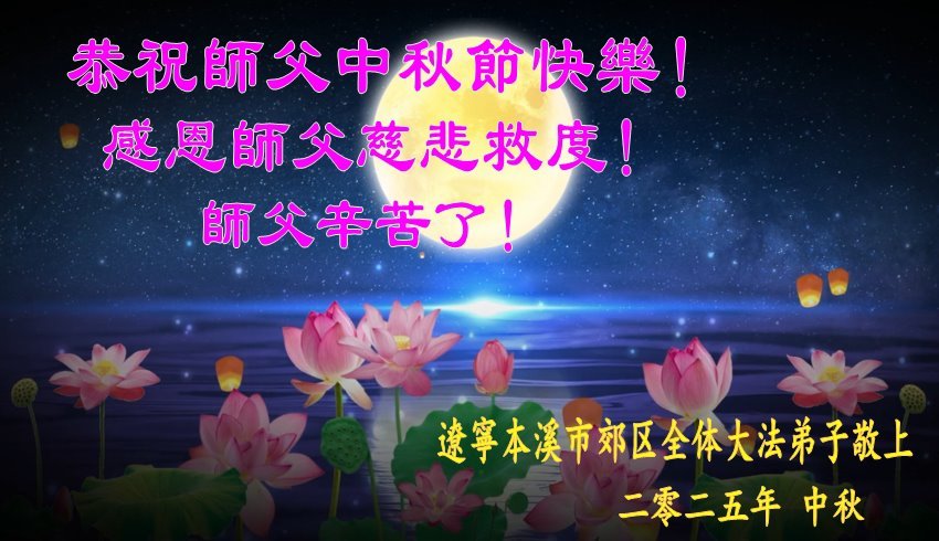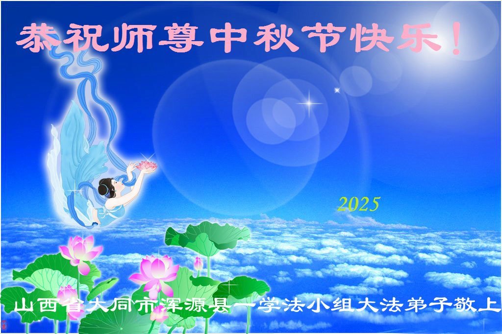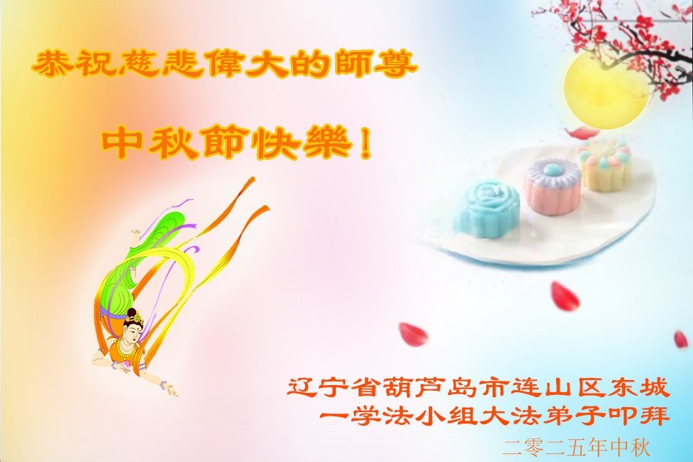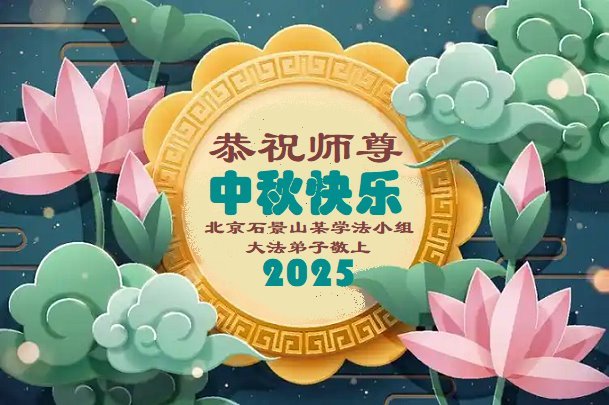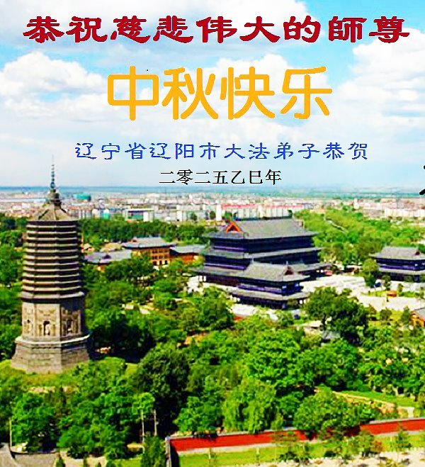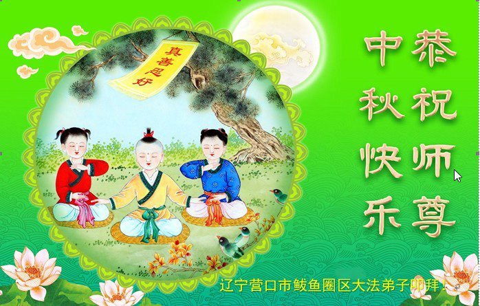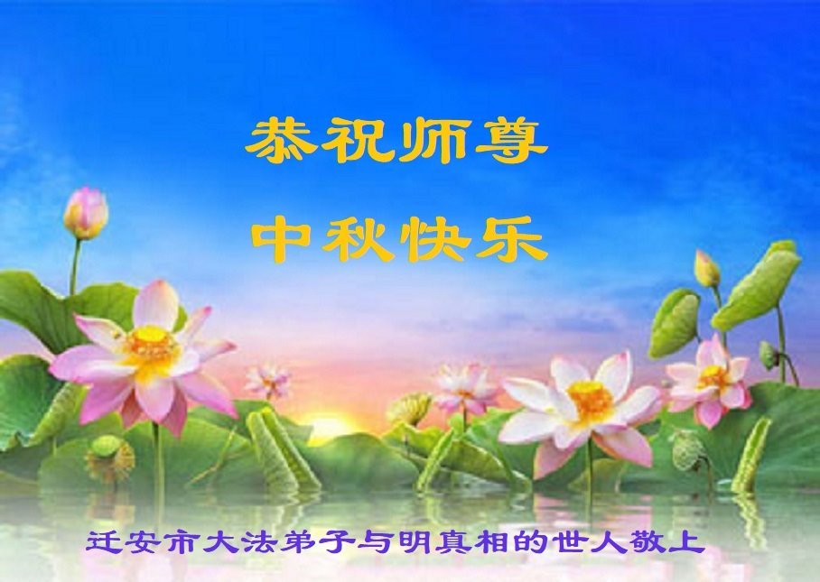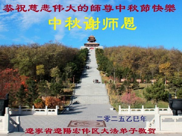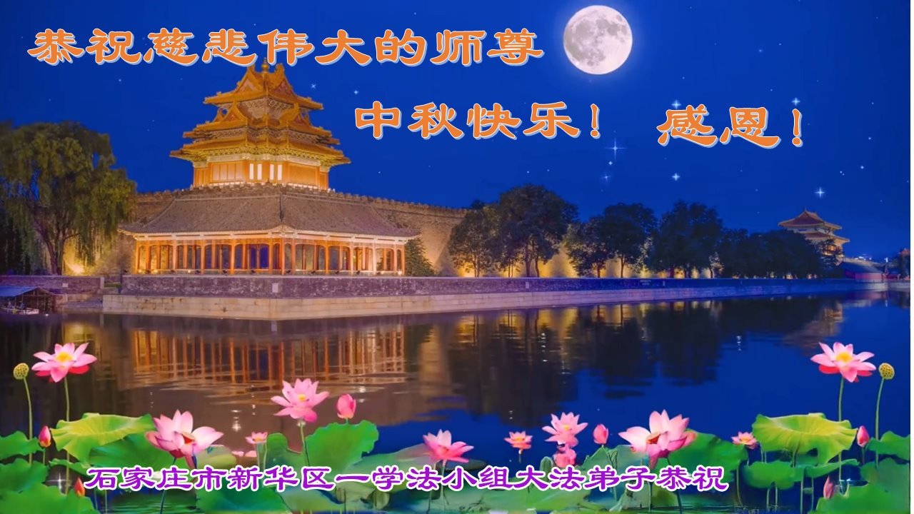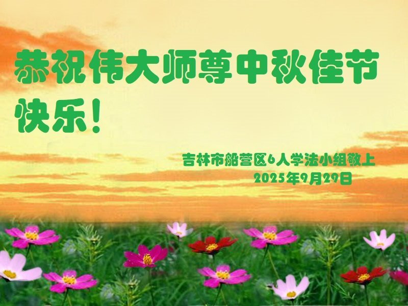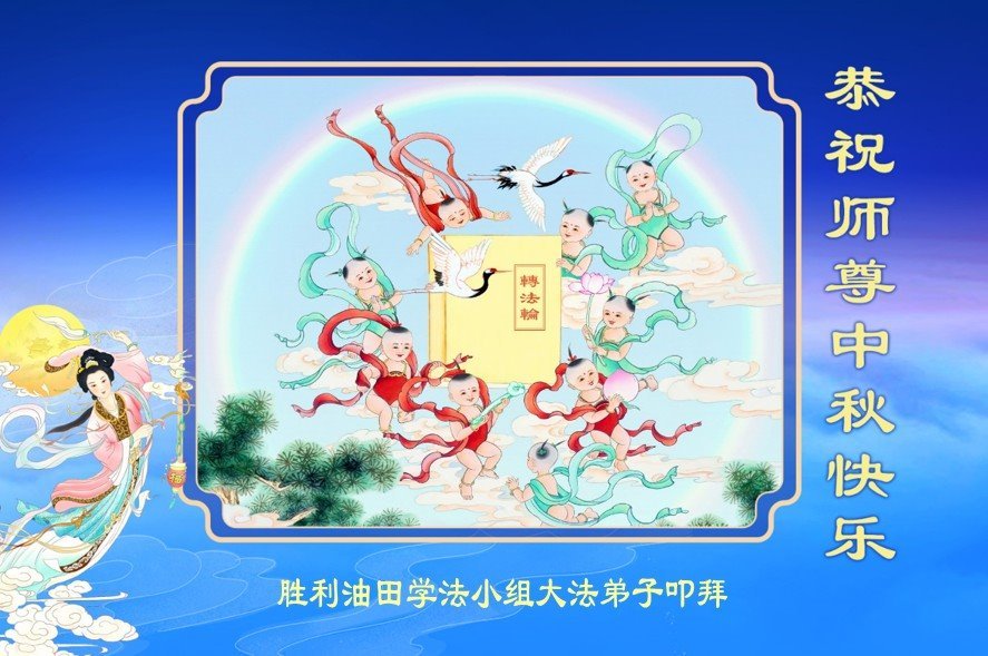 在这秋高气爽,明月高悬之时,我们大陆辽宁省辽阳市一学法小组怀着对师尊的感恩,怀着对正法必成的信念,怀着救度众生的史前大愿,决心一定不辱使命,放下人心,努力配合,助师正法,救度众生,在最后有限的正法时间里,做的更好,圆满随师还。