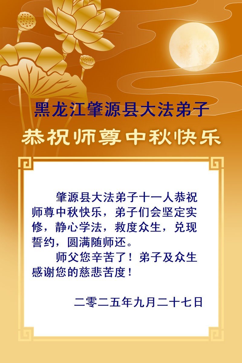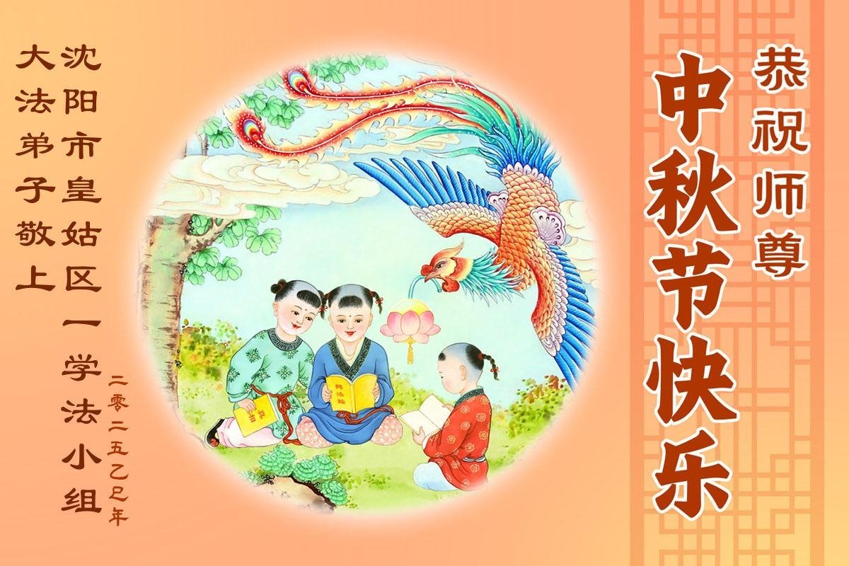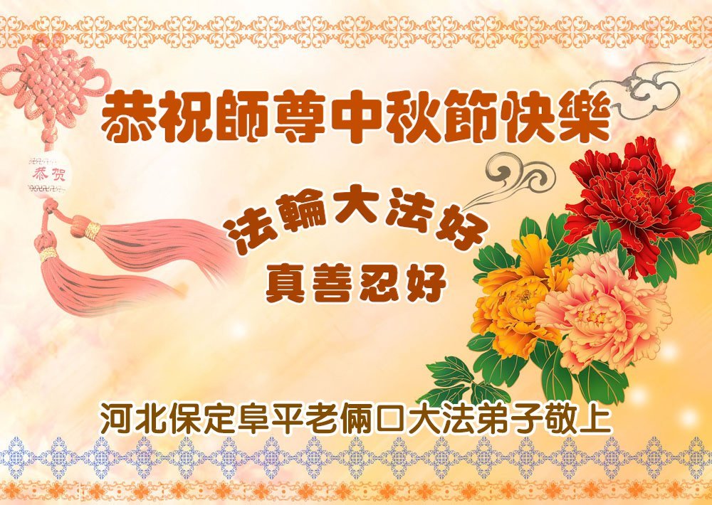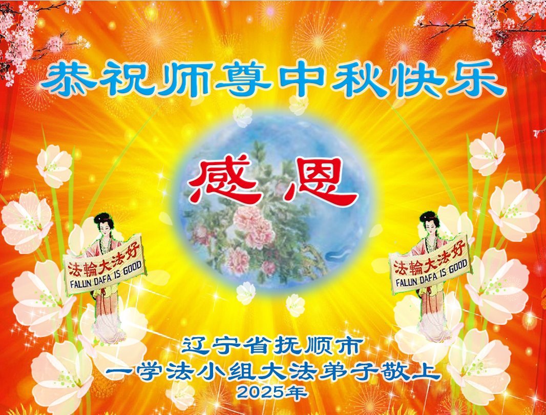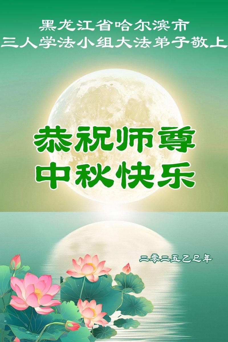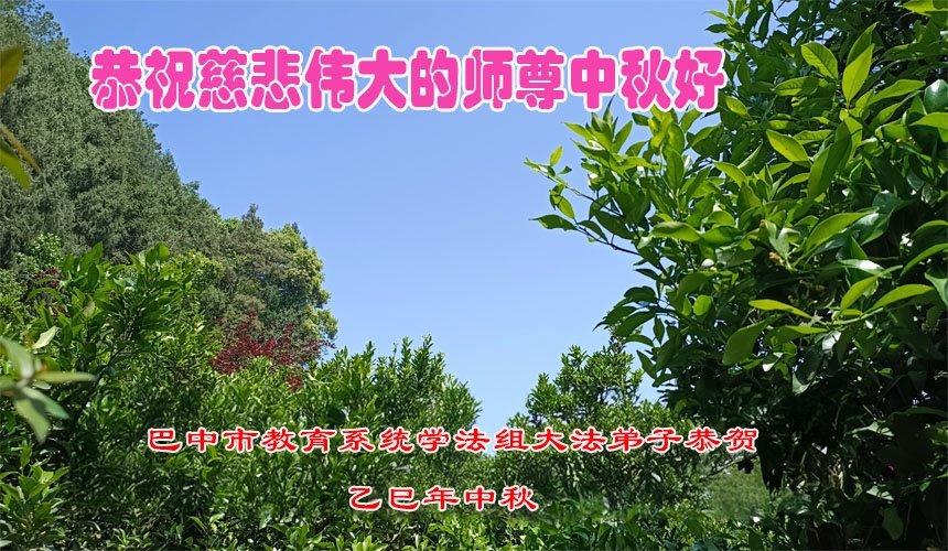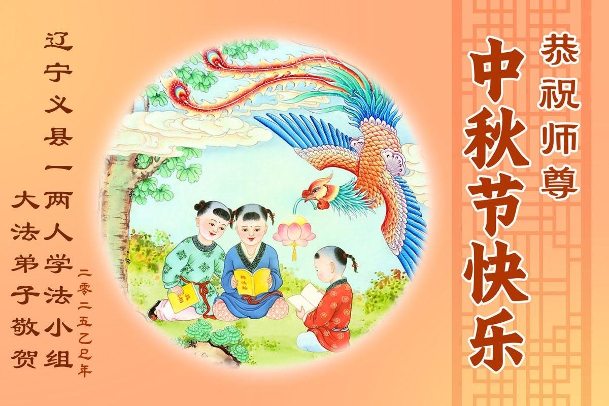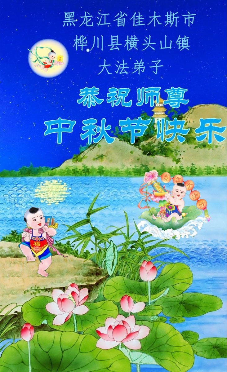在这秋高气爽,明月高悬之时,我们大陆辽宁省辽阳市一学法小组怀着对师尊的感恩,怀着对正法必成的信念,怀着救度众生的史前大愿,决心一定不辱使命,放下人心,努力配合,助师正法,救度众生,在最后有限的正法时间里,做的更好,圆满随师还。