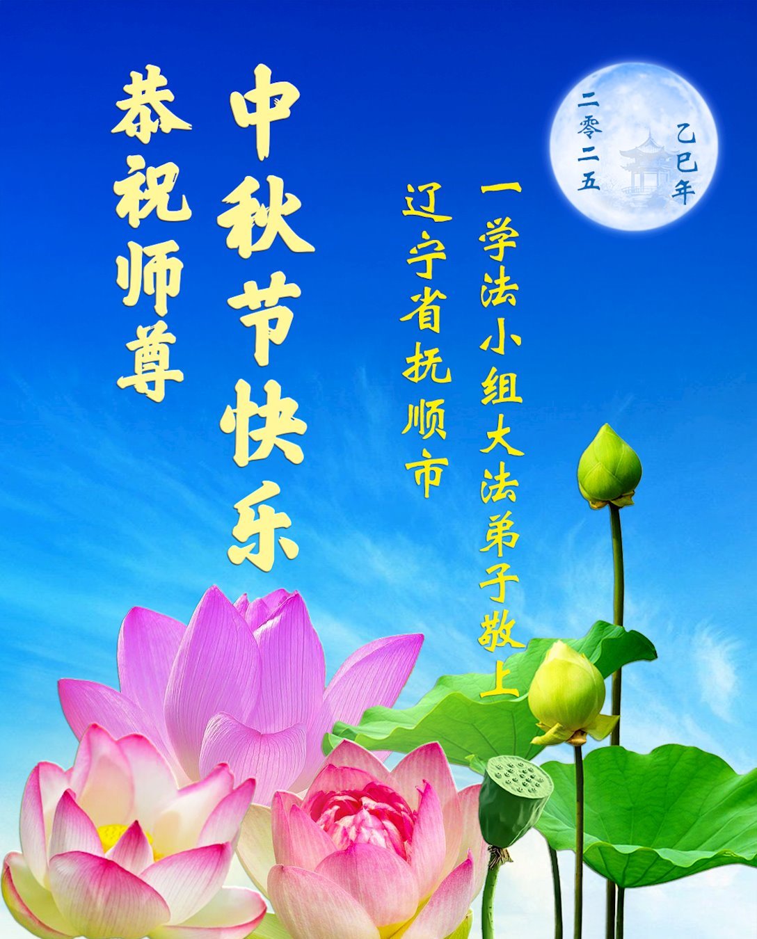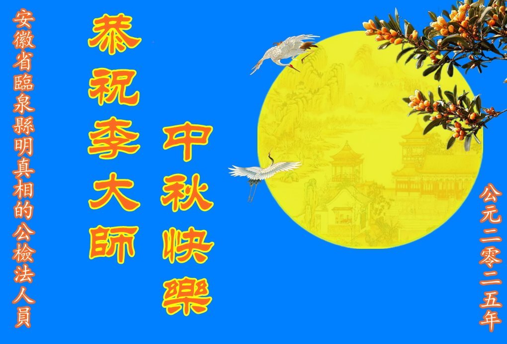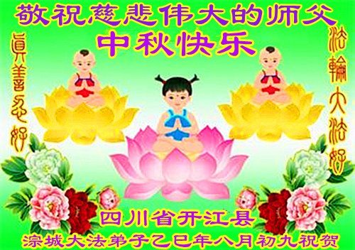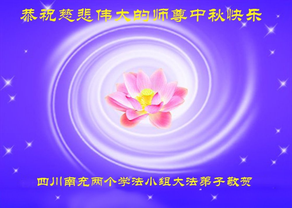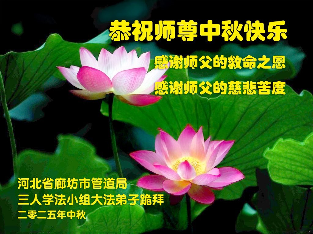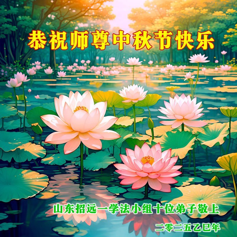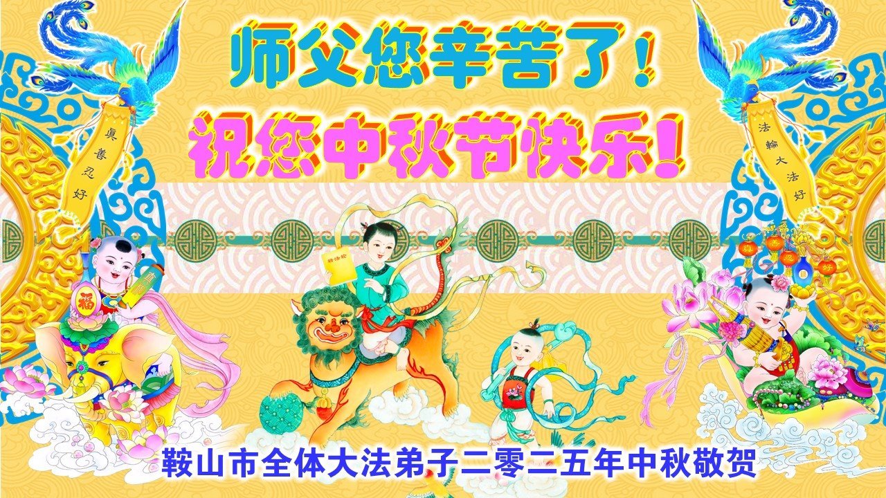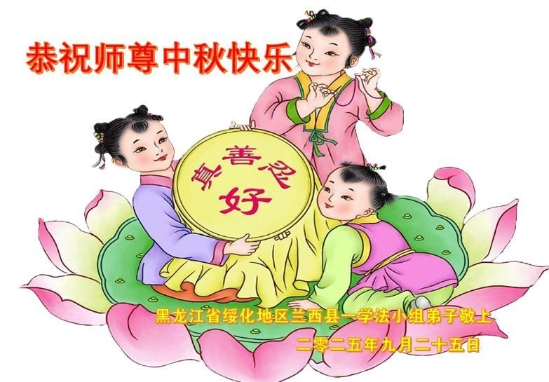 在这秋高气爽,明月高悬之时,我们大陆辽宁省辽阳市一学法小组怀着对师尊的感恩,怀着对正法必成的信念,怀着救度众生的史前大愿,决心一定不辱使命,放下人心,努力配合,助师正法,救度众生,在最后有限的正法时间里,做的更好,圆满随师还。