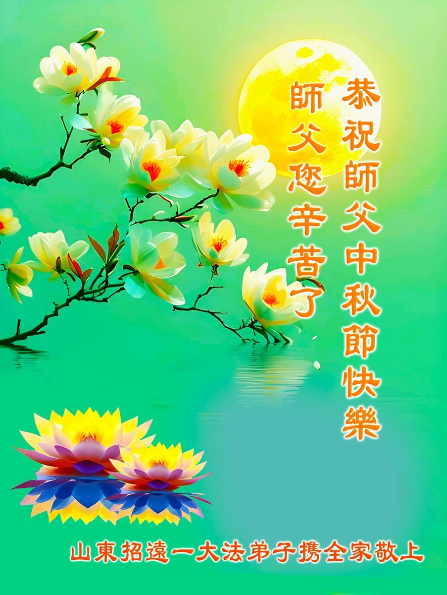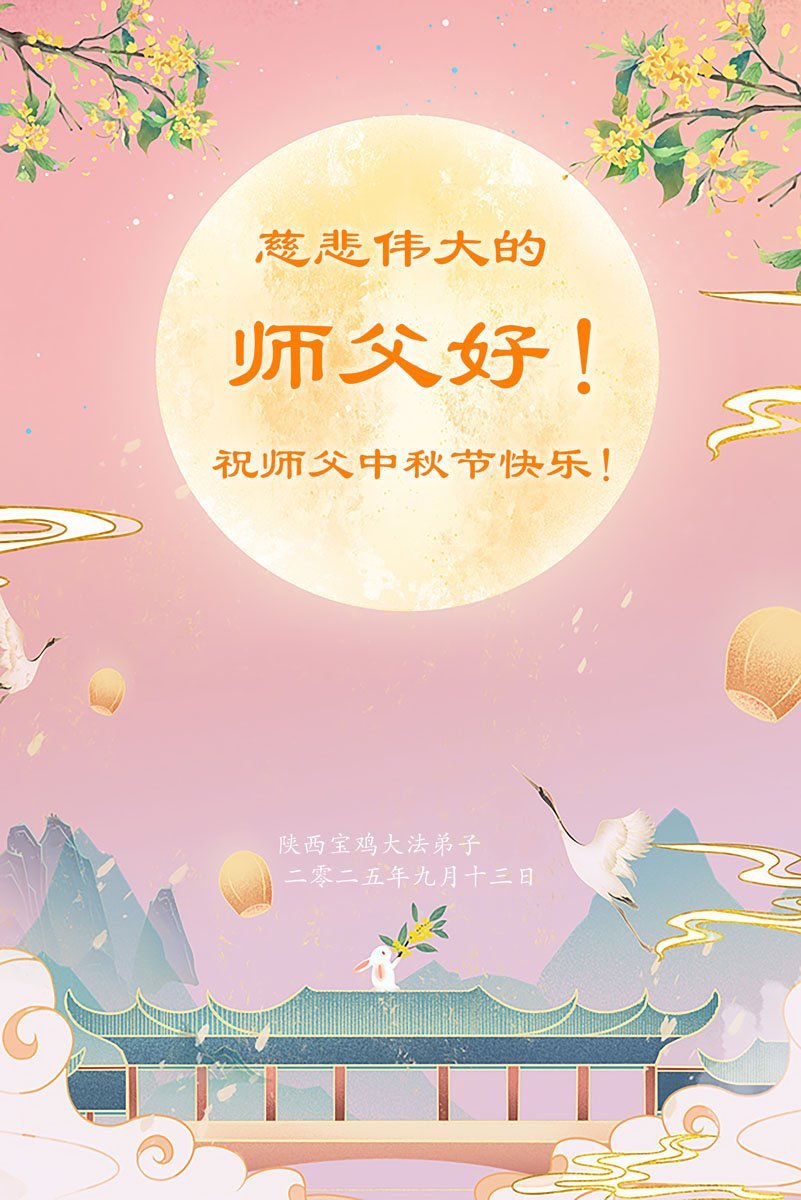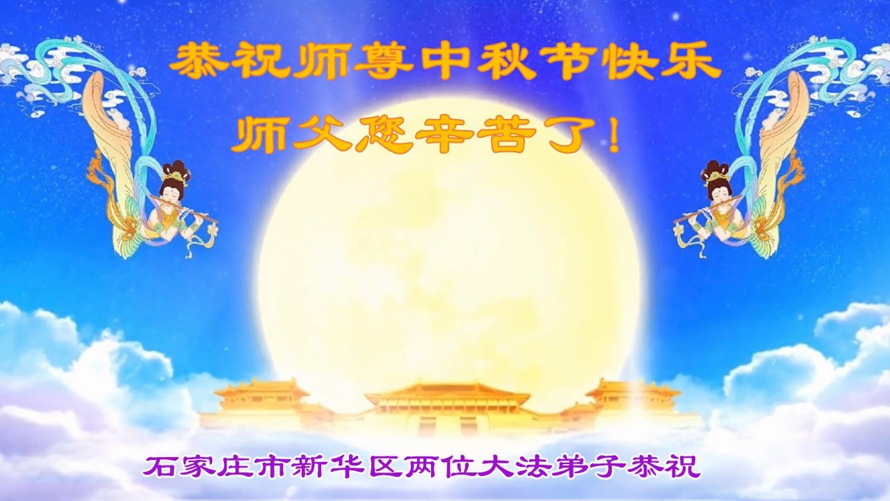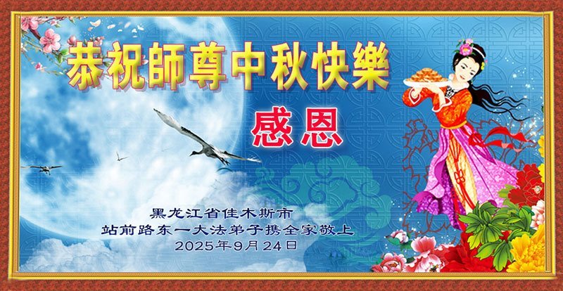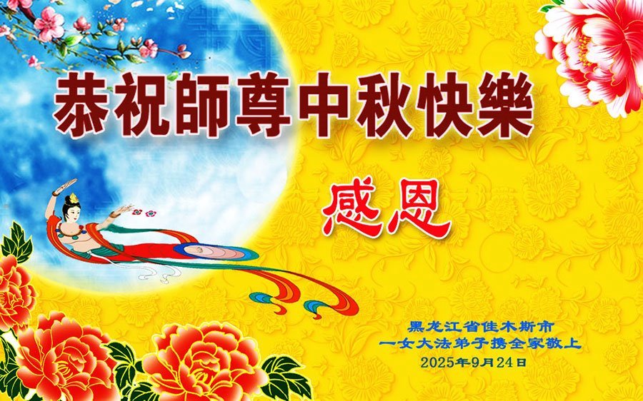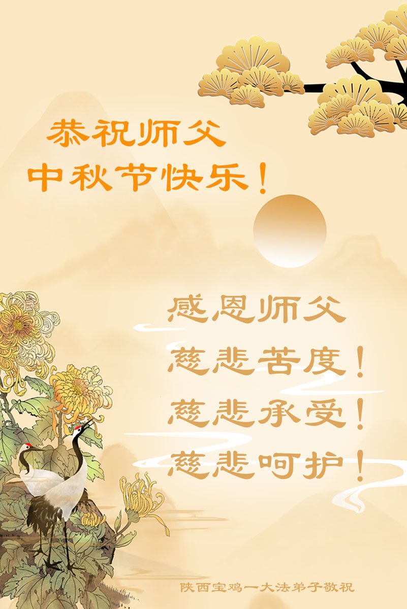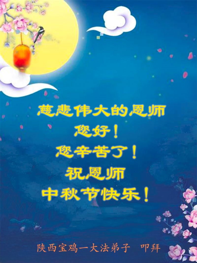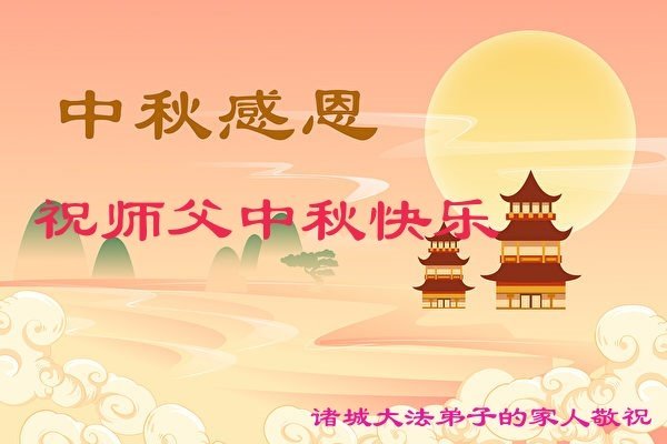 师父,您为众生承受的太多了!为了使大法弟子修炼成熟,为了使更多的众生得救,师父用巨大的付出一再延长时间。作为弟子没有语言表达对师父的感恩,唯有借此中秋佳节之际向伟大的师父问好:师父您辛苦了!我们一定遵照师父教诲,做好三件事,以报师恩!