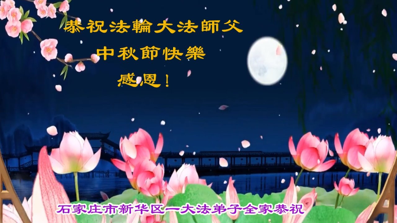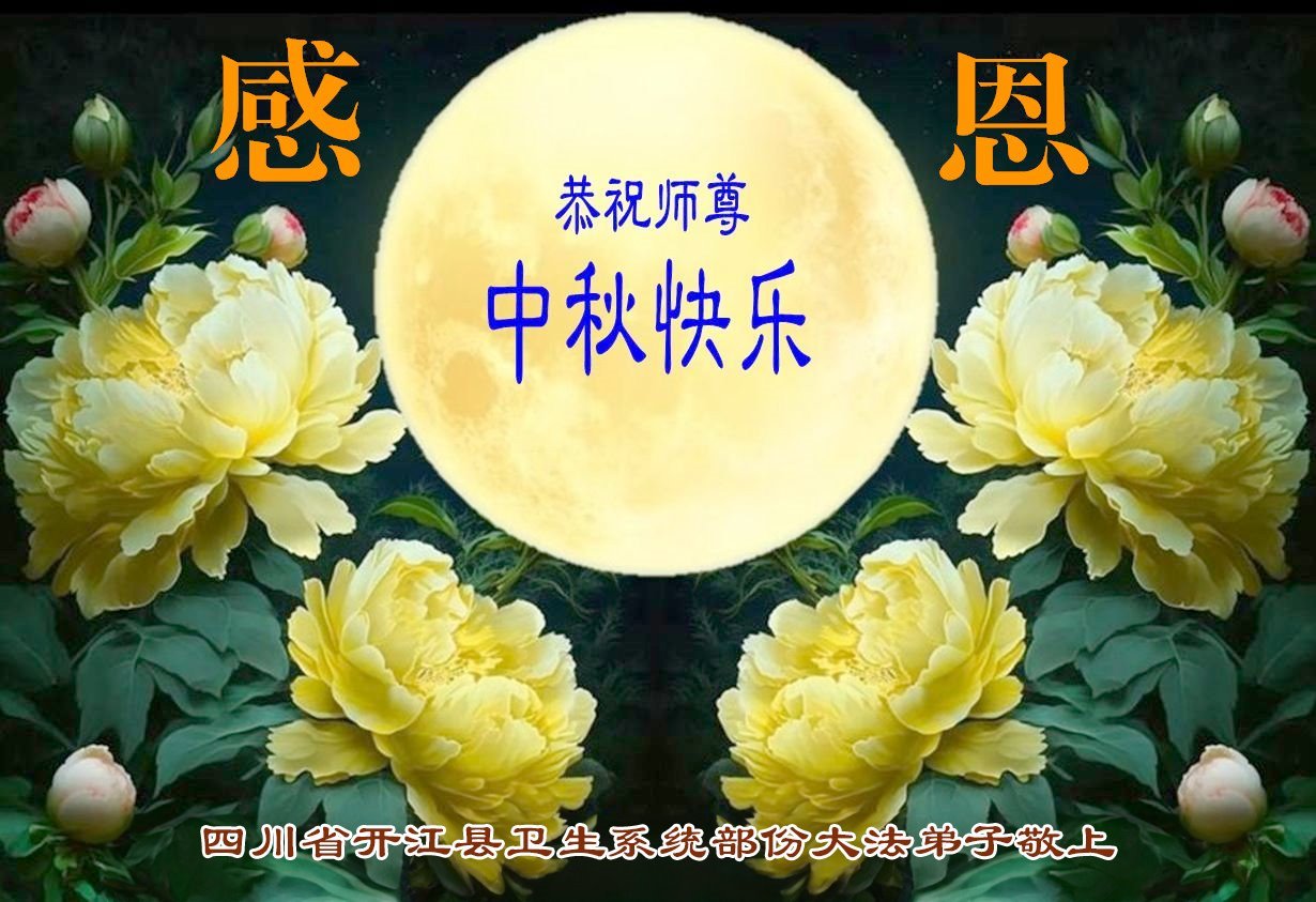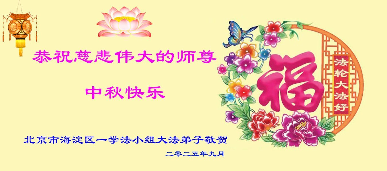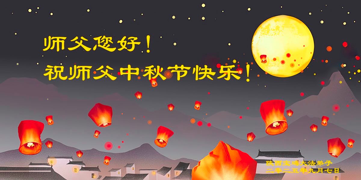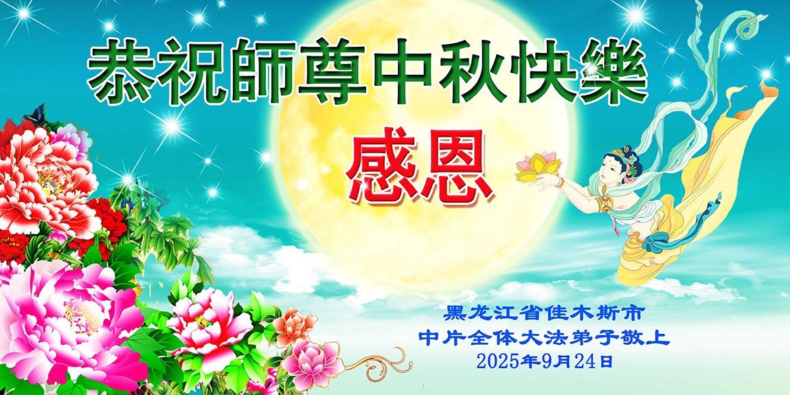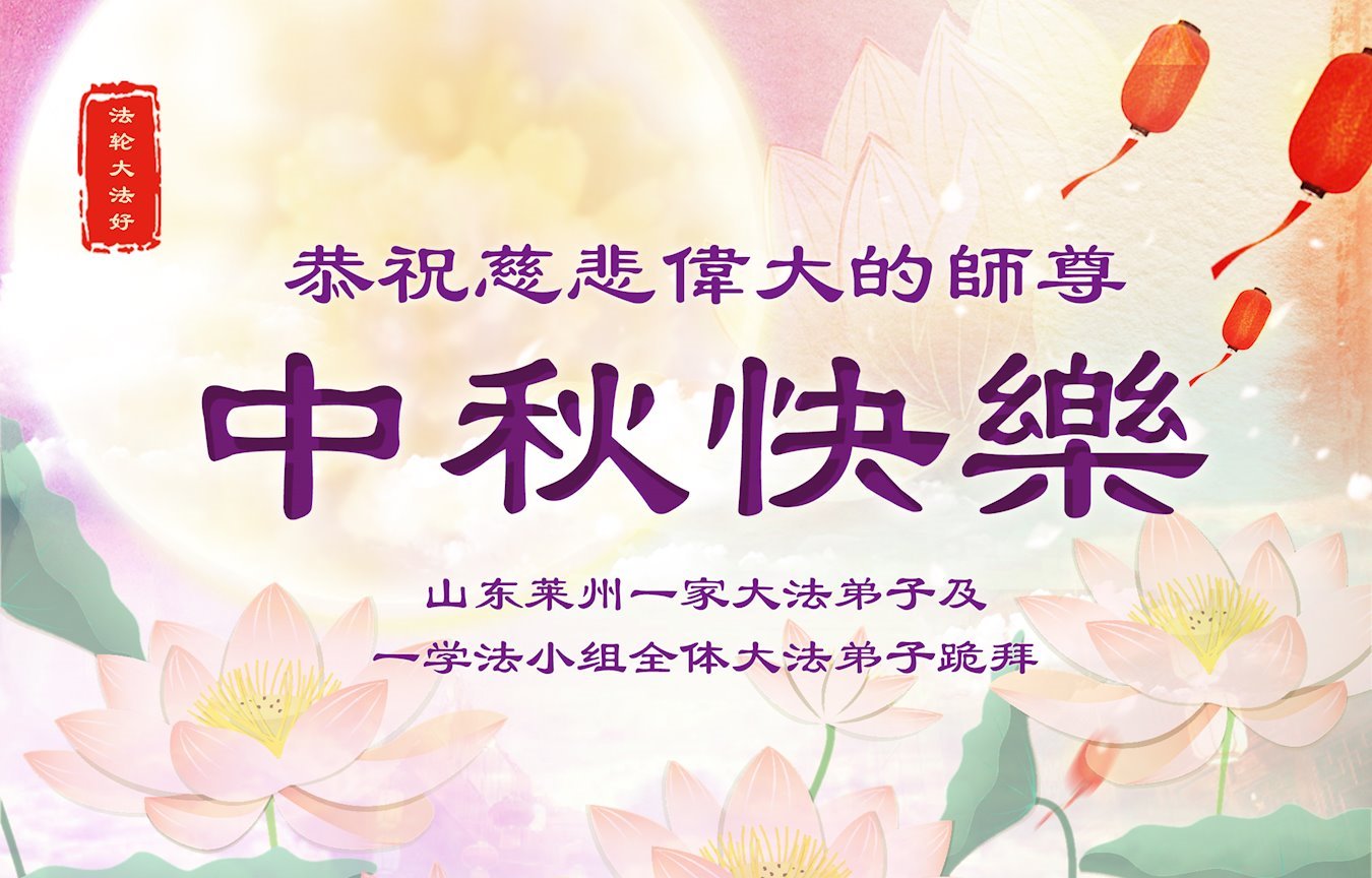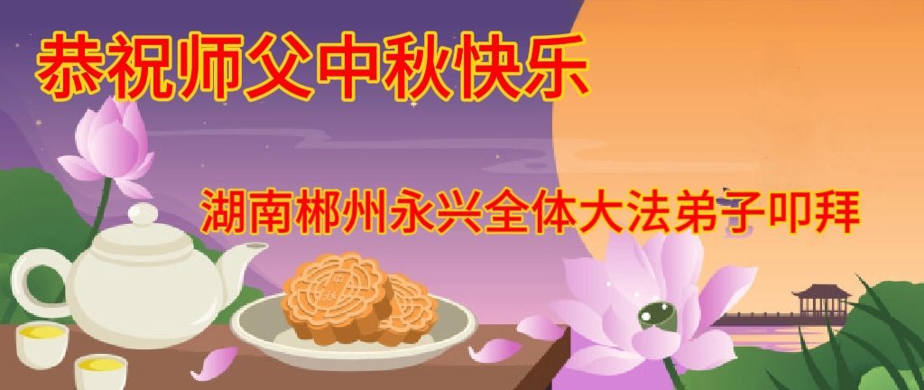 师父,您为众生承受的太多了!为了使大法弟子修炼成熟,为了使更多的众生得救,师父用巨大的付出一再延长时间。作为弟子没有语言表达对师父的感恩,唯有借此中秋佳节之际向伟大的师父问好:师父您辛苦了!我们一定遵照师父教诲,做好三件事,以报师恩!