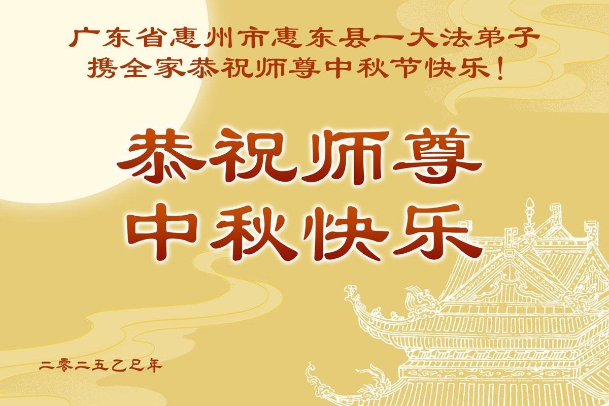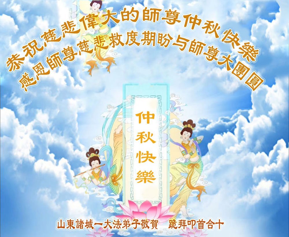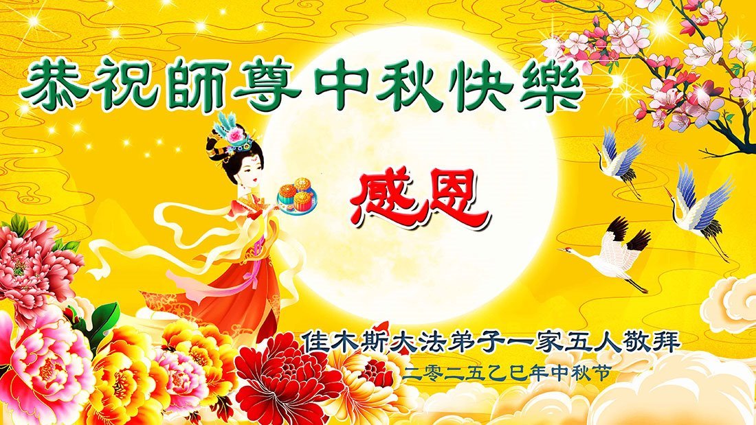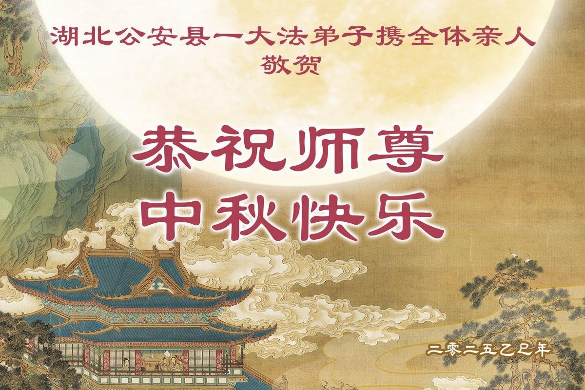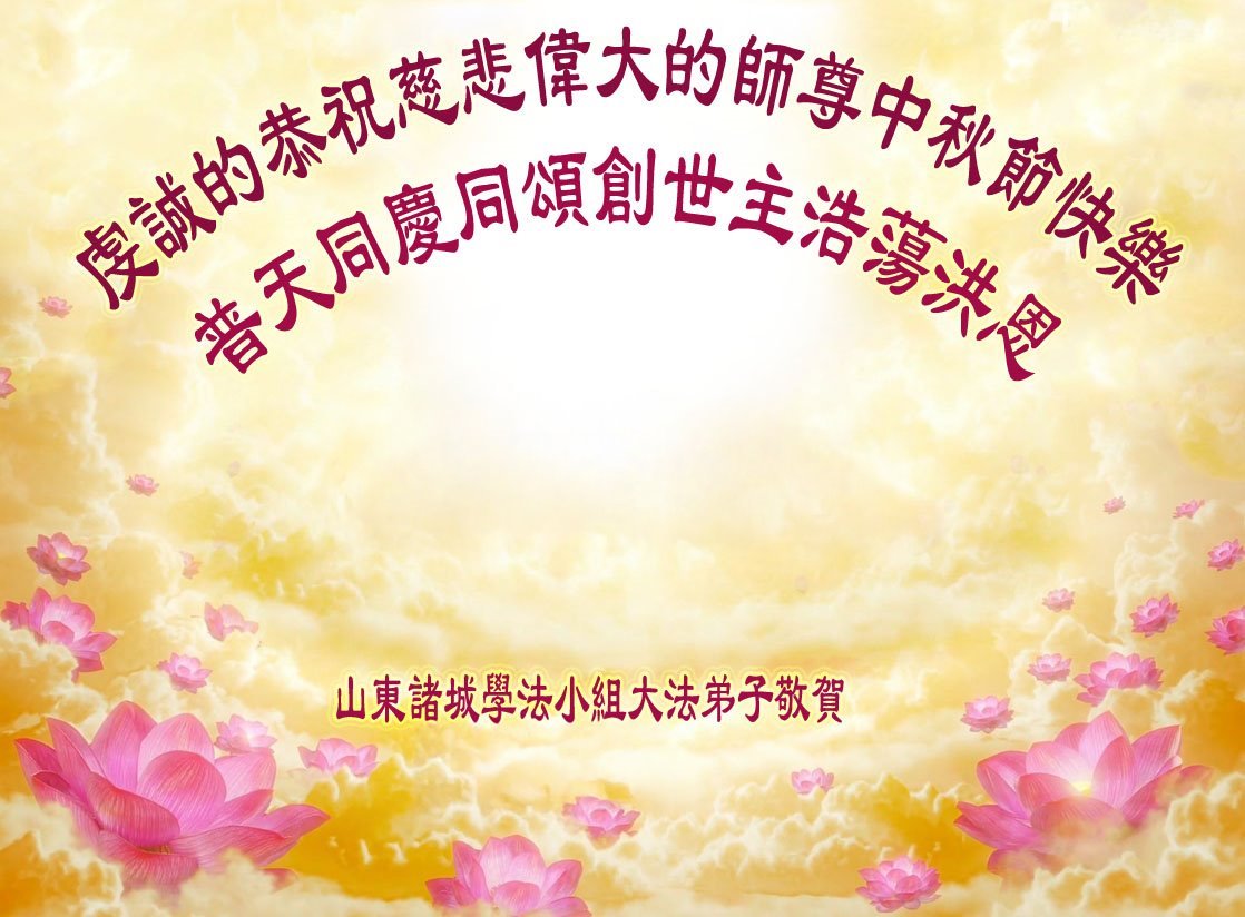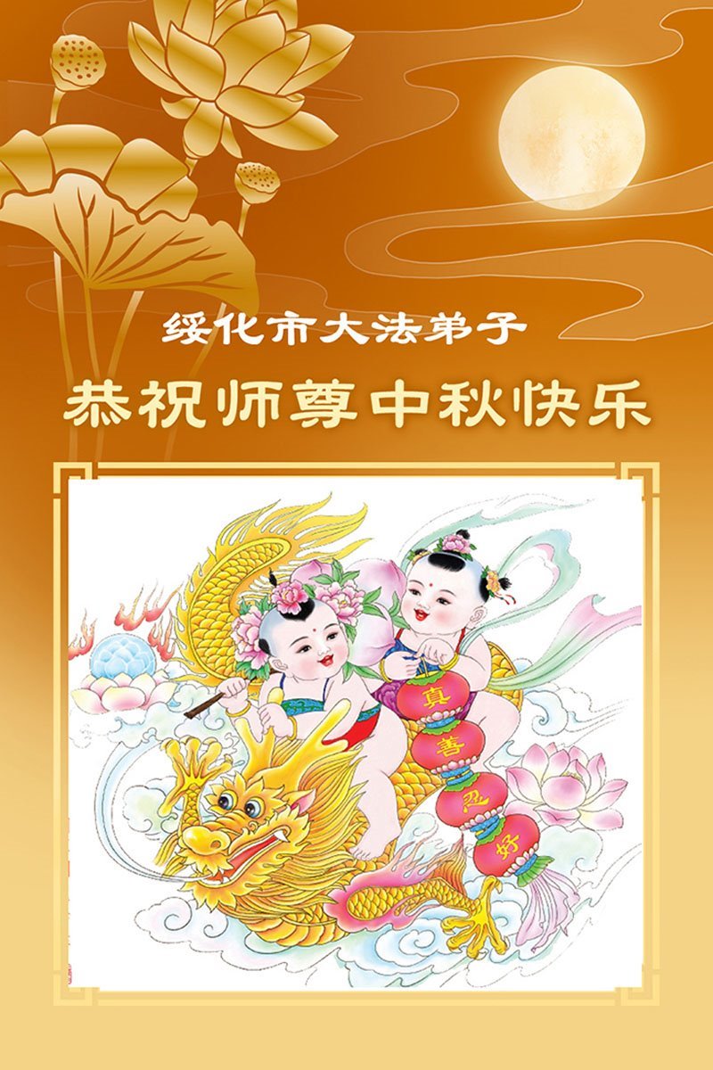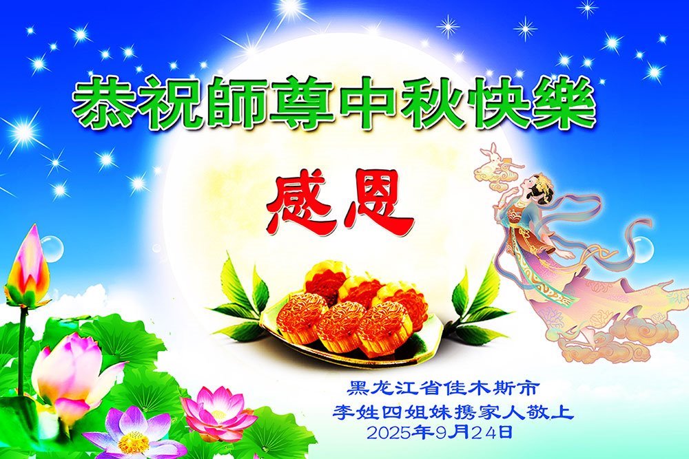 师父,您为众生承受的太多了!为了使大法弟子修炼成熟,为了使更多的众生得救,师父用巨大的付出一再延长时间。作为弟子没有语言表达对师父的感恩,唯有借此中秋佳节之际向伟大的师父问好:师父您辛苦了!我们一定遵照师父教诲,做好三件事,以报师恩!