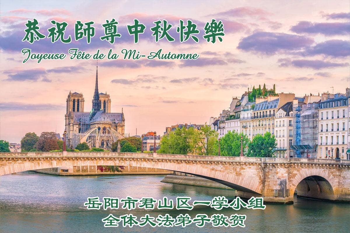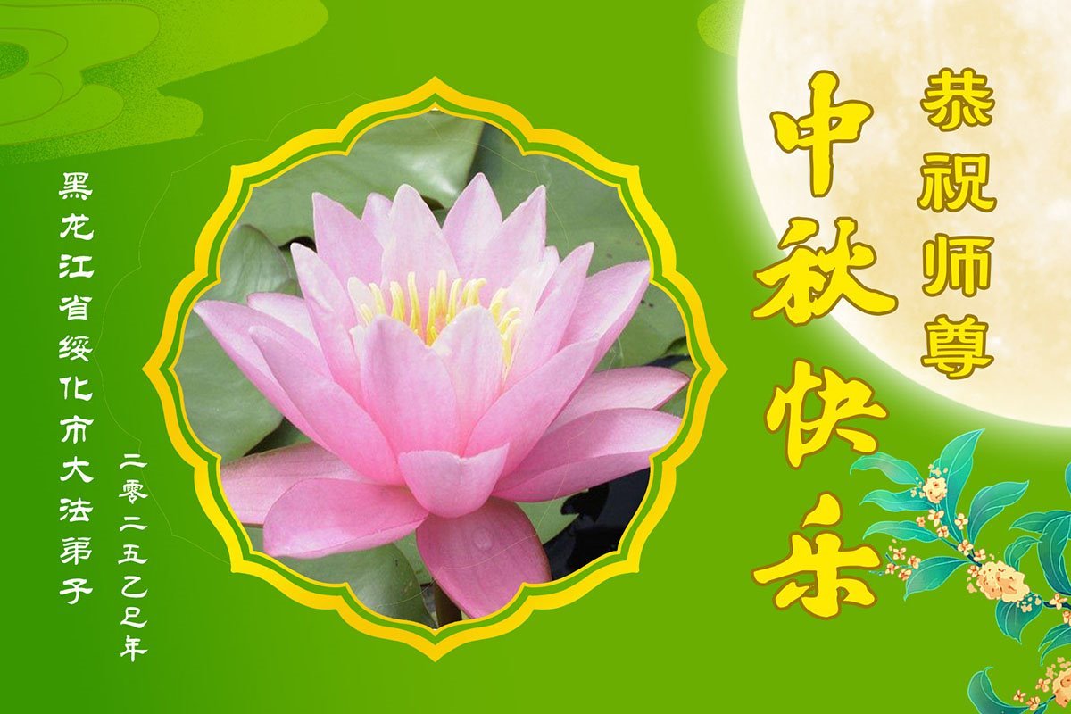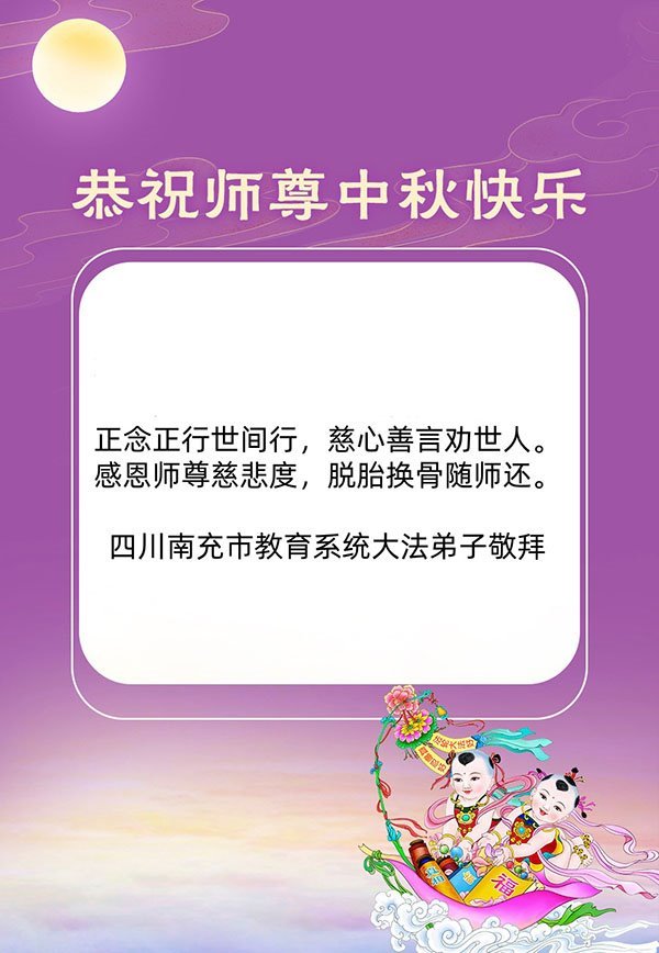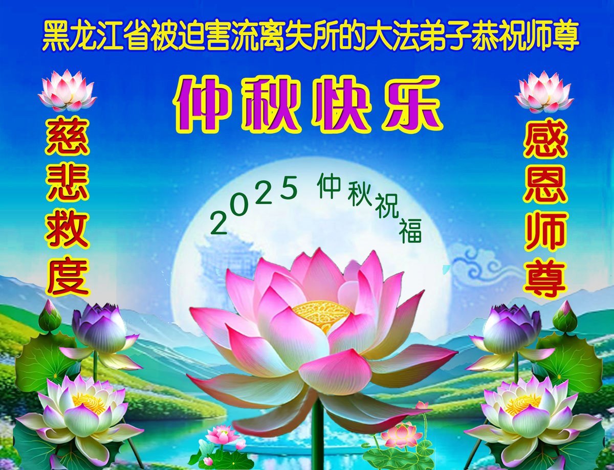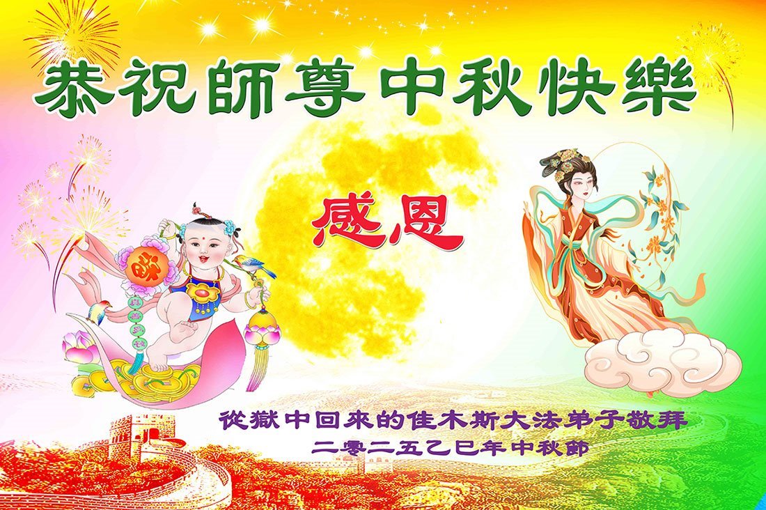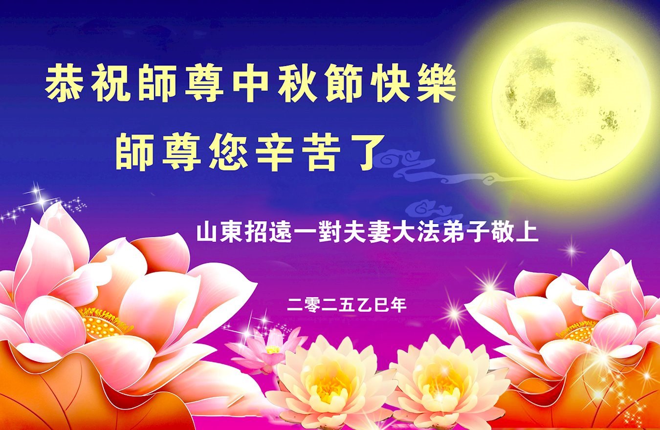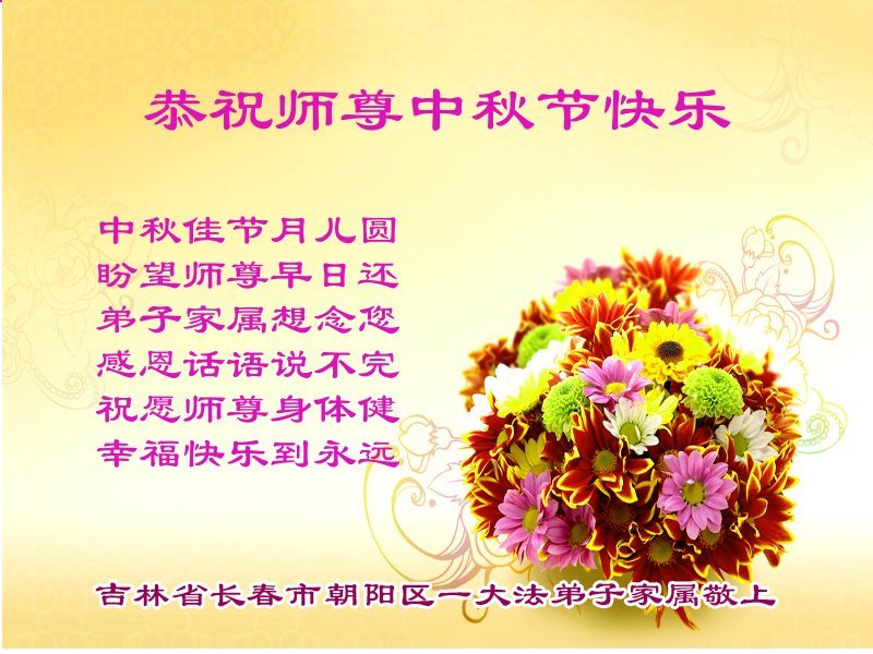 师父,您为众生承受的太多了!为了使大法弟子修炼成熟,为了使更多的众生得救,师父用巨大的付出一再延长时间。作为弟子没有语言表达对师父的感恩,唯有借此中秋佳节之际向伟大的师父问好:师父您辛苦了!我们一定遵照师父教诲,做好三件事,以报师恩!