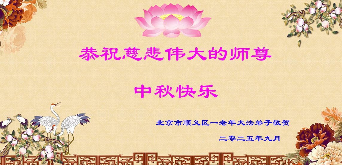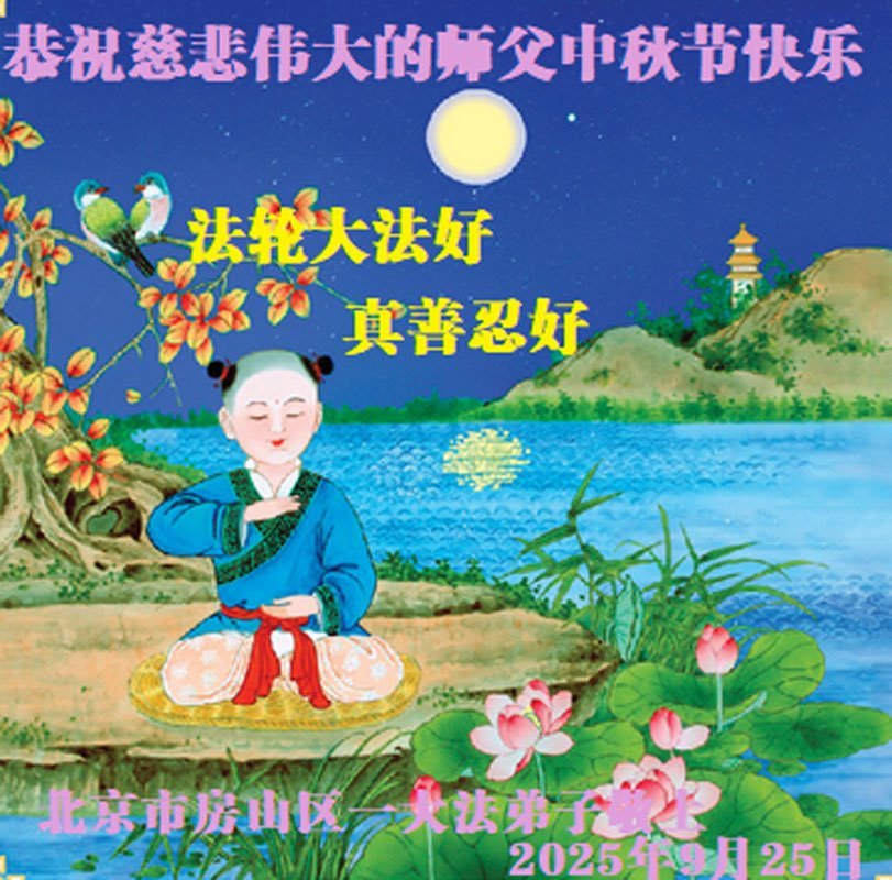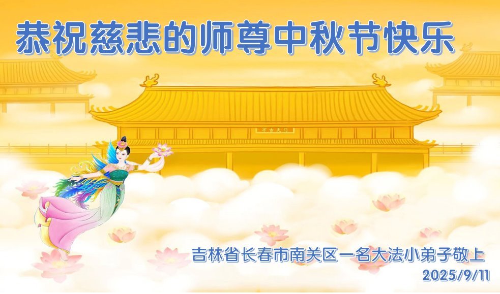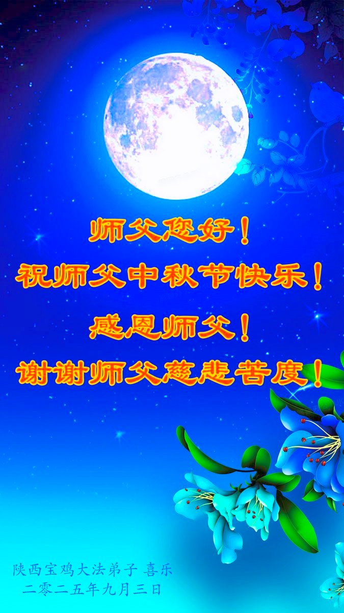 慈悲伟大的师父中秋快乐!请师父放心,弟子一定听师父的话,用法衡量一切,彻底改变千百年来骨子里形成的人的理,用纯净的心态做好三件事,走好最后的路。不负正法时期大法弟子的神圣使命,不负师父的慈悲苦度!感恩师父的慈悲苦度!永恒的感恩!弟子想念师父!