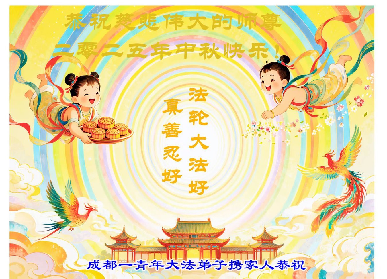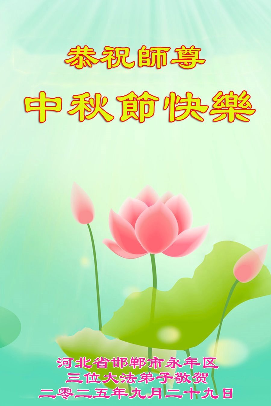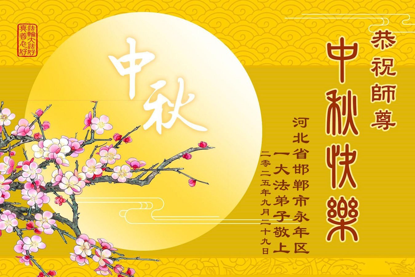 二零二五年九月十九日大洛杉矶法轮功学员恭祝师尊中秋快乐