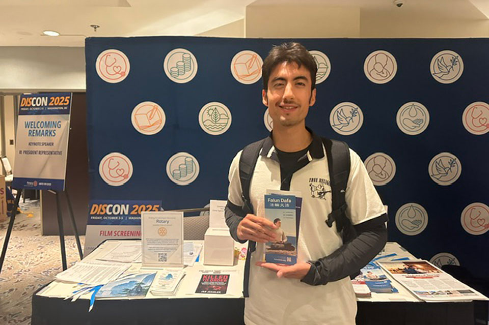 弗吉尼亚理工大学艺术专业的学生何塞(Jose)在电影放映会结束后,向场外的法轮功学员详细了解真相。他说,这些真相被掩盖了,他自己需要先好好了解,才能跟更多人传播这些信息。