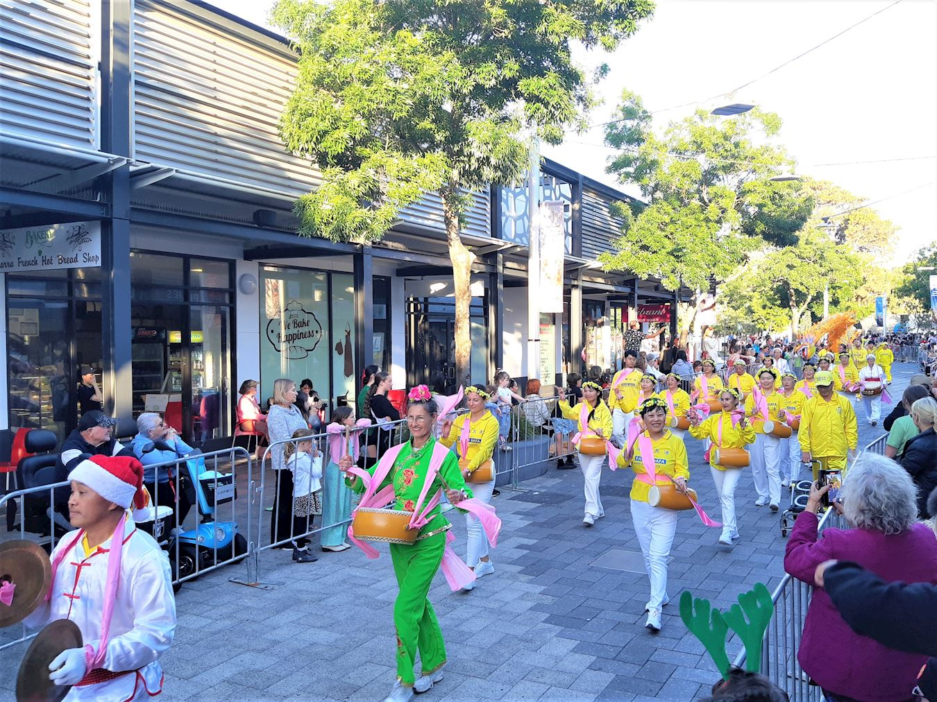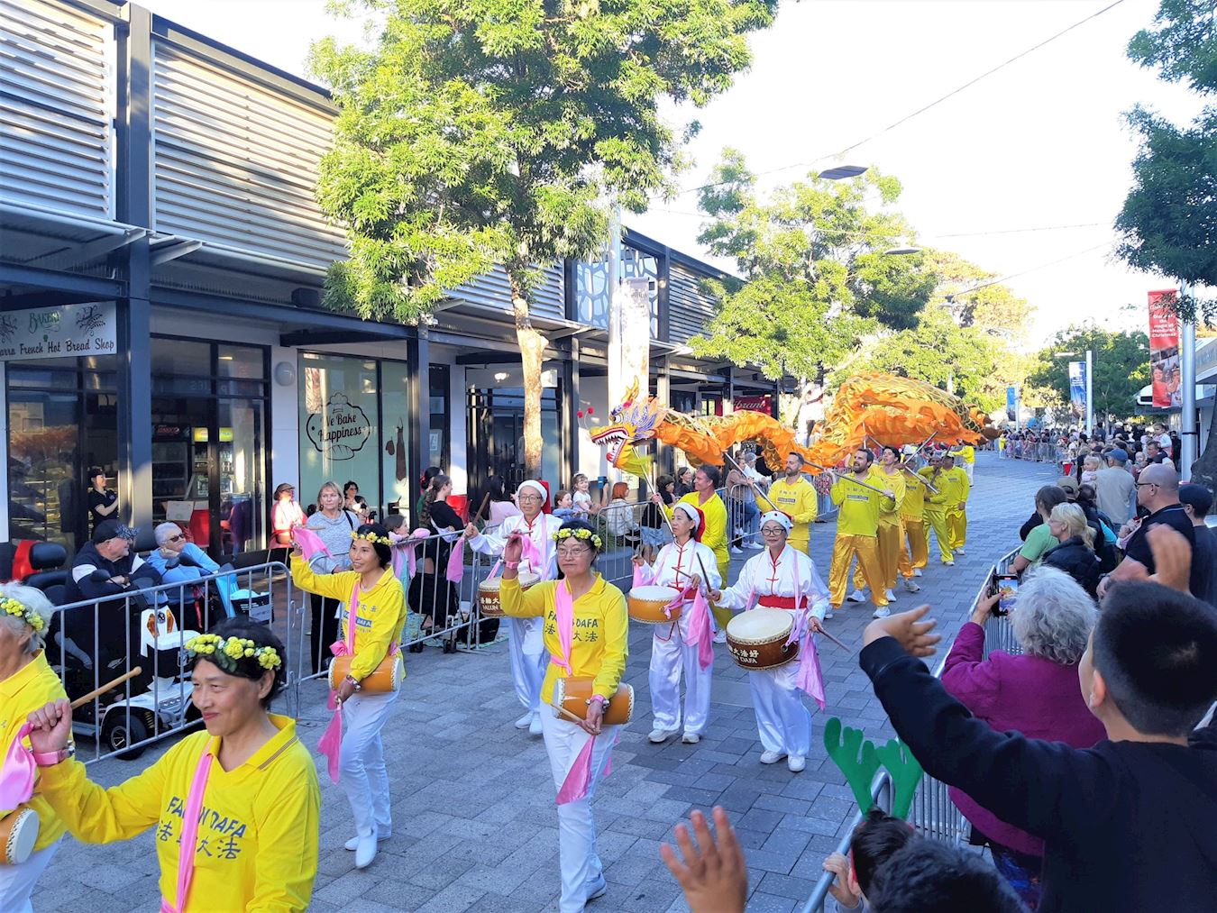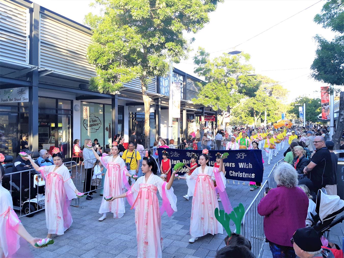 法轮功学员在游行中,不仅为当地居民送上圣诞祝福,也把法轮大法的美好带给了人们。游行团队包括仙女队、腰鼓队和舞龙队。大量沿途观众为法轮功学员的表演欢呼、喝彩,人们纷纷鼓掌赞叹、拍照录像,还有人随着音乐和鼓声舞动。人们对其亮丽的色彩以及祥和的能量赞赏不已。游行结束后,也有观众主动向法轮功学员表达感谢。