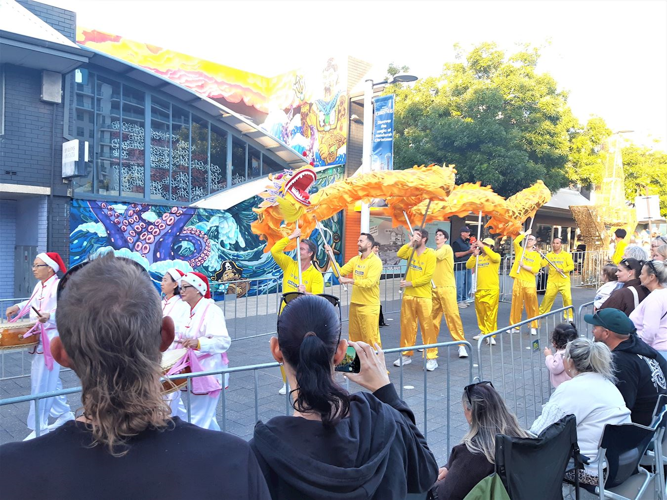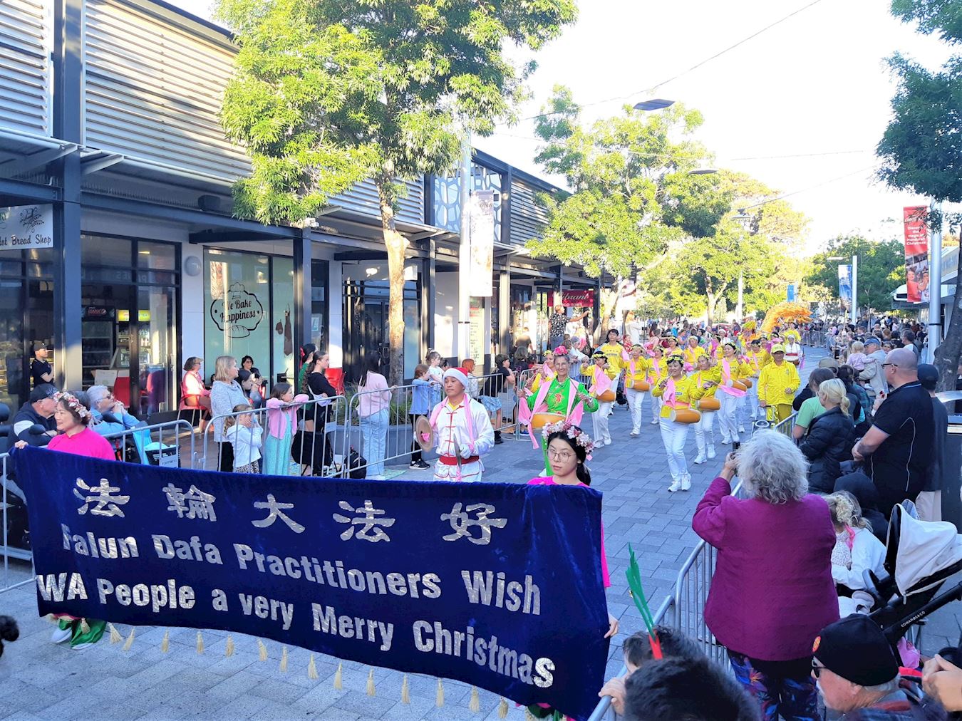【明慧网二零二五年十二月四日】(明慧澳洲珀斯记者站报道)二零二五年十一月二十八日星期五傍晚,西澳西南海岸城市曼都拉(Mandurah)举行了盛大的圣诞游行。在游行中,法轮功学员的游行方阵备受瞩目。观众盛赞:“你们是最棒的!”十二月二日,曼都拉市长安珀·科恩斯(Amber Kearns)向法轮大法学会发来感谢信,表达了对法轮功学员参加社区圣诞游行的感谢。