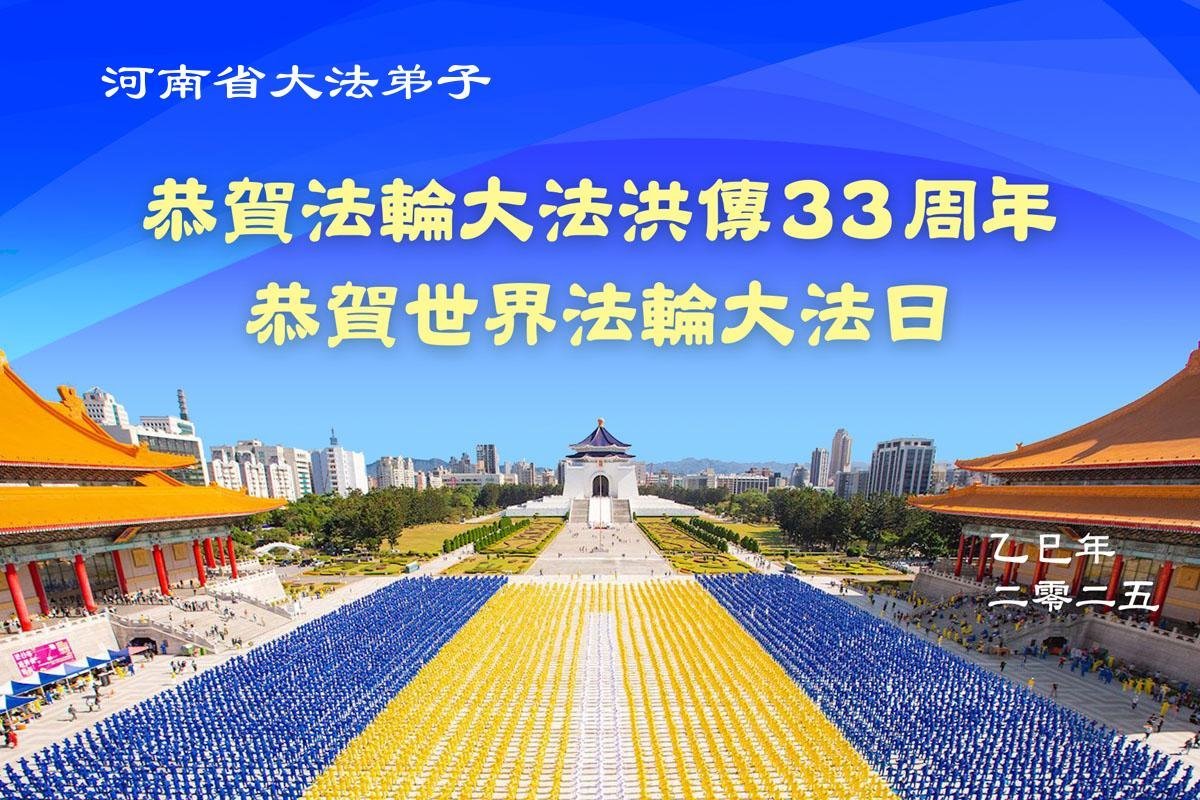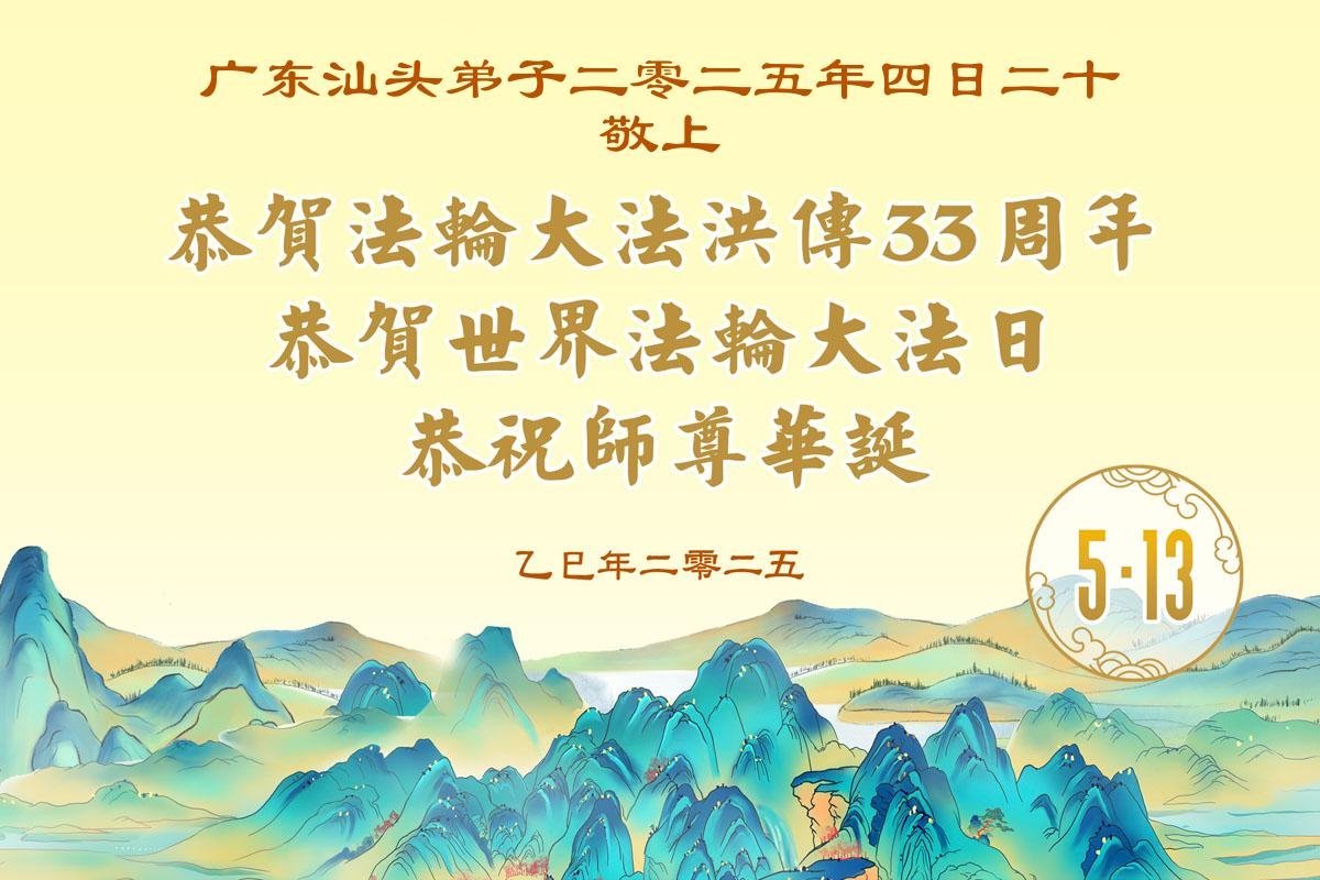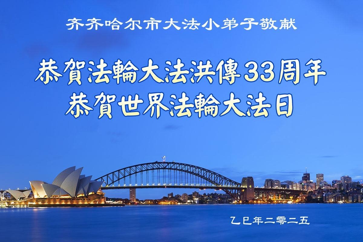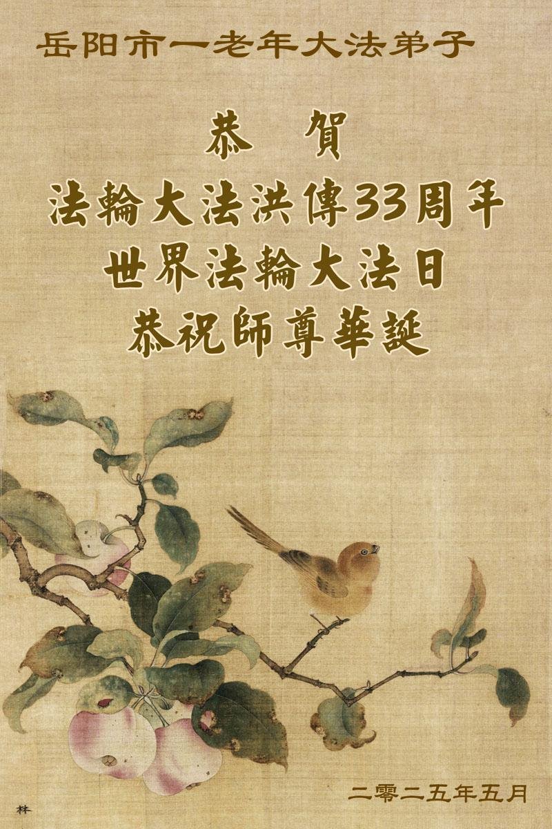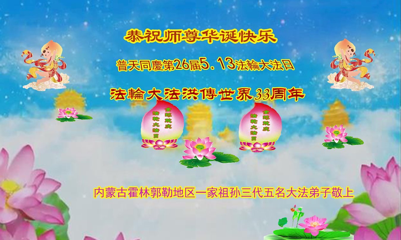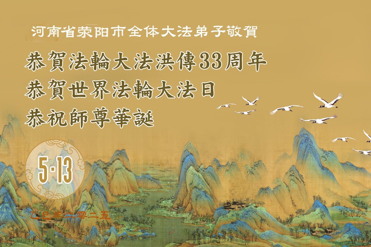 值此法轮大法开传三十三周年纪念日、第二十六届世界法轮大法日,伟大师尊七十四岁华诞喜庆之际,弟子恭祝师尊华诞!同庆世界法轮大法日!