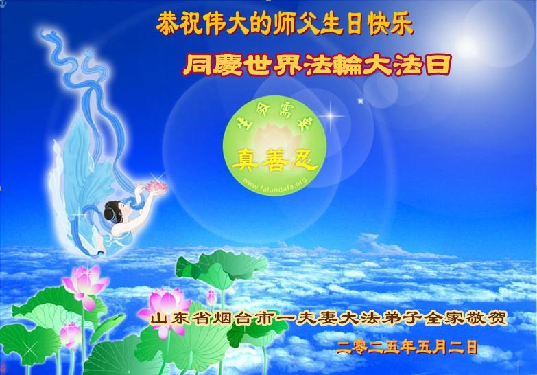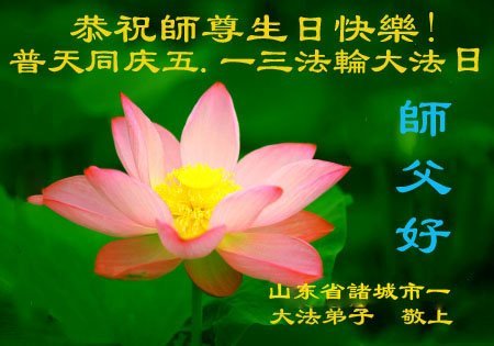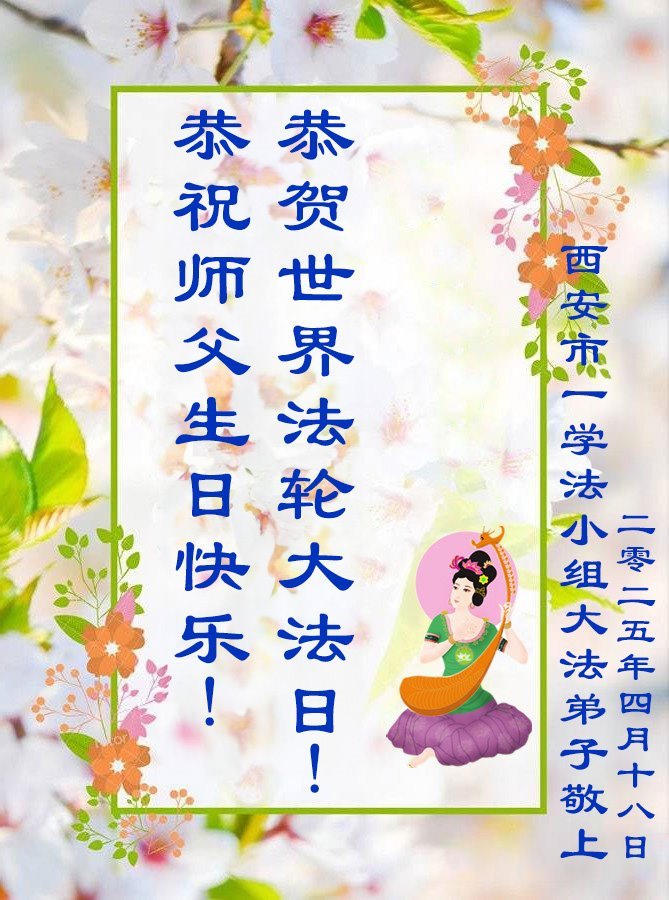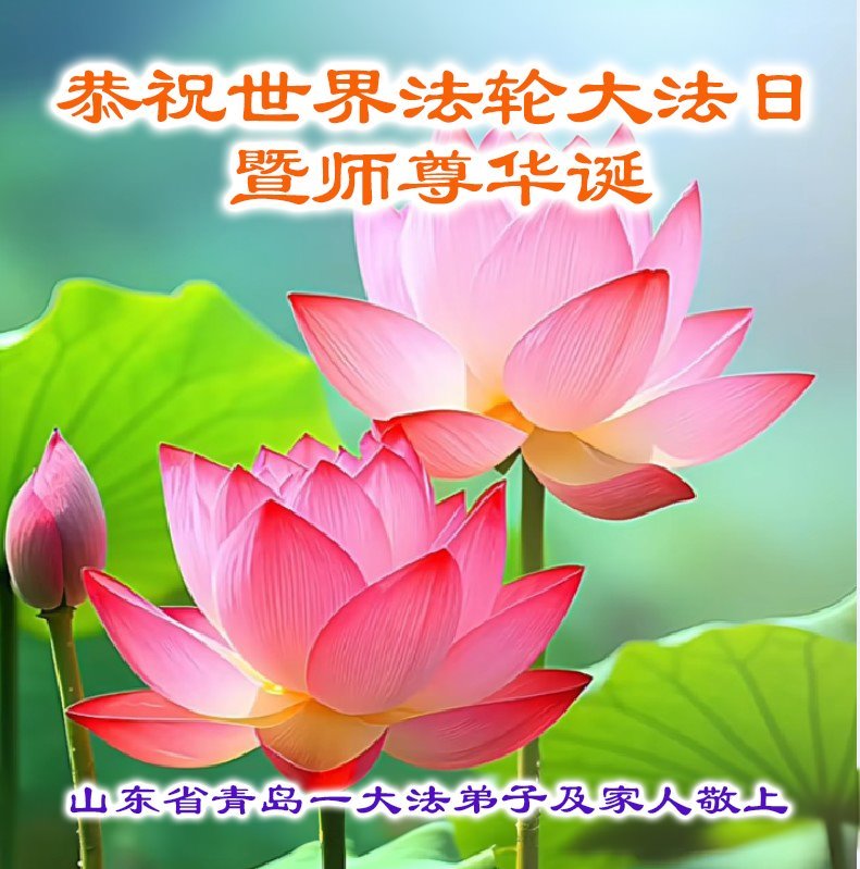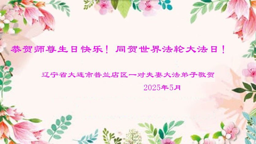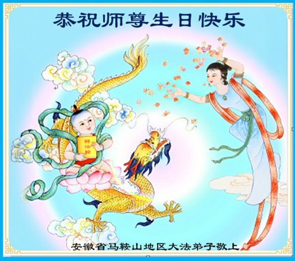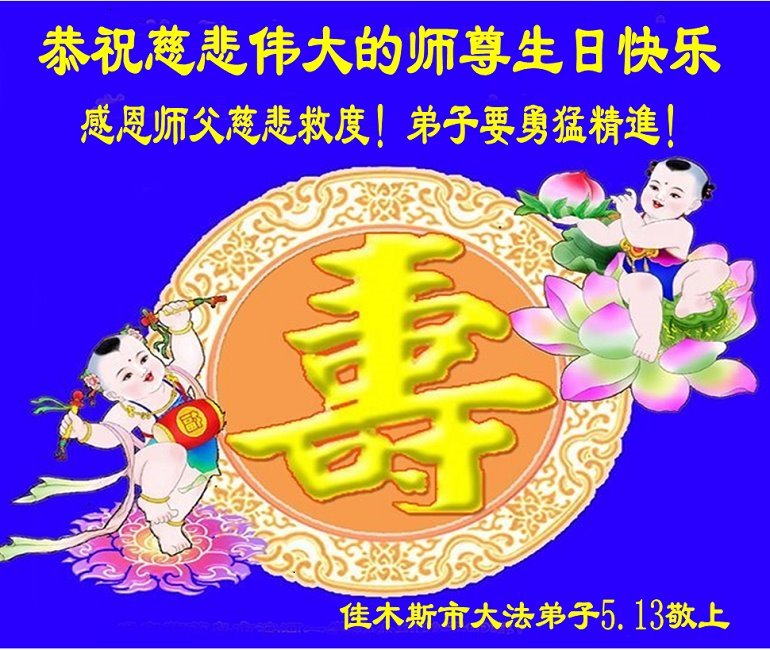 我们是九九年七二零之前得法的老弟子,历经种种风雨魔难,更加坚信大法,精進实修,以报师恩。在五一三世界法轮大法日来临之际,恭祝师尊生日快乐!我们想念师尊,盼望师尊早日回国,荣归故里。弟子敬拜师尊!谨以以下小诗敬献师尊。