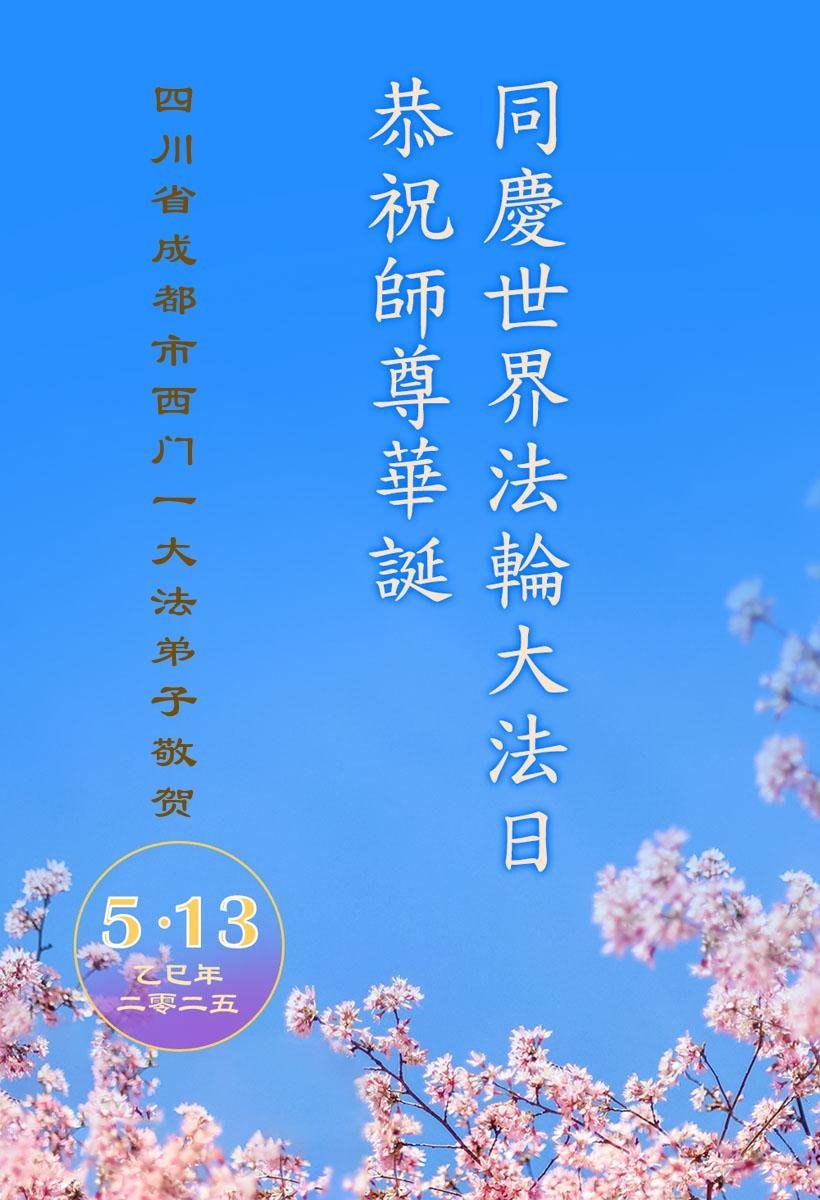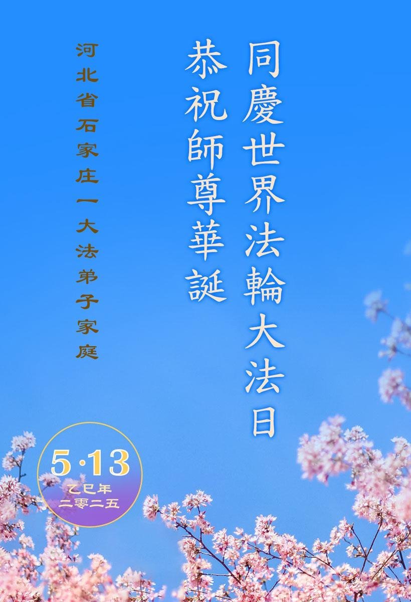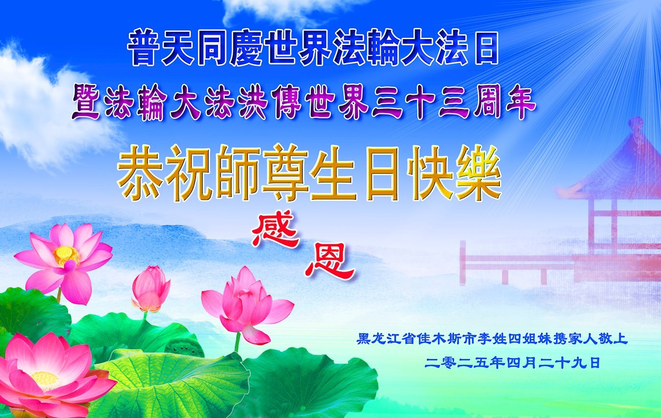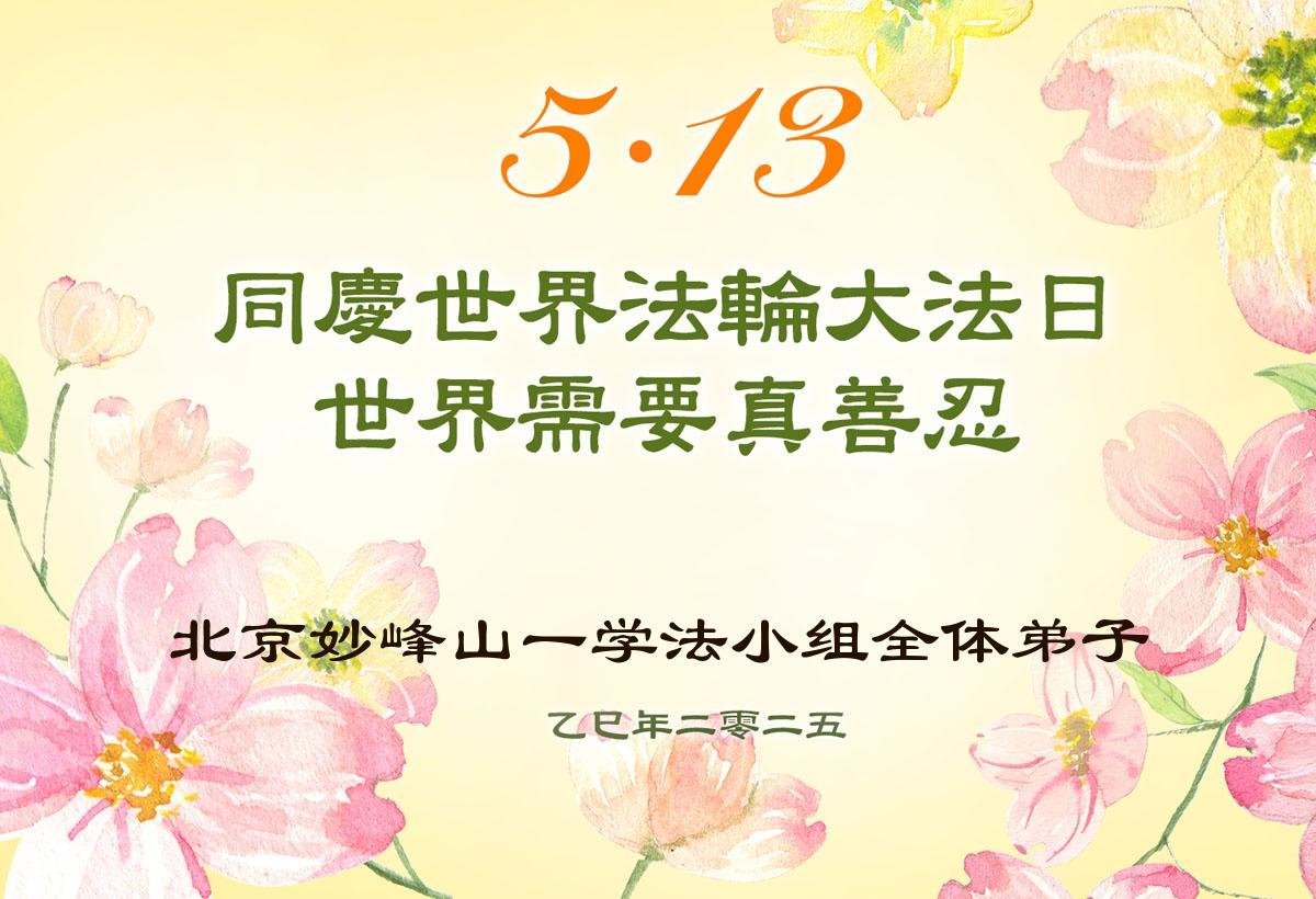 【明慧网二零二五年五月十一日】(明慧网记者综合报道)历经中共残酷迫害法轮功的二十六年,大法弟子们凭着对师尊的正信一路走过来了。中国各省各地都有学法小组,大法弟子开创环境每天静心学法炼功,按照真善忍实修自己,历经种种风雨魔难,依靠大法的指引不迷航。五月十三日,世界法轮大法日到来之际,中国各地学法小组的大法弟子们同庆同祝这神圣的日子,深深感念师尊的慈悲救度,恭贺师尊华诞。