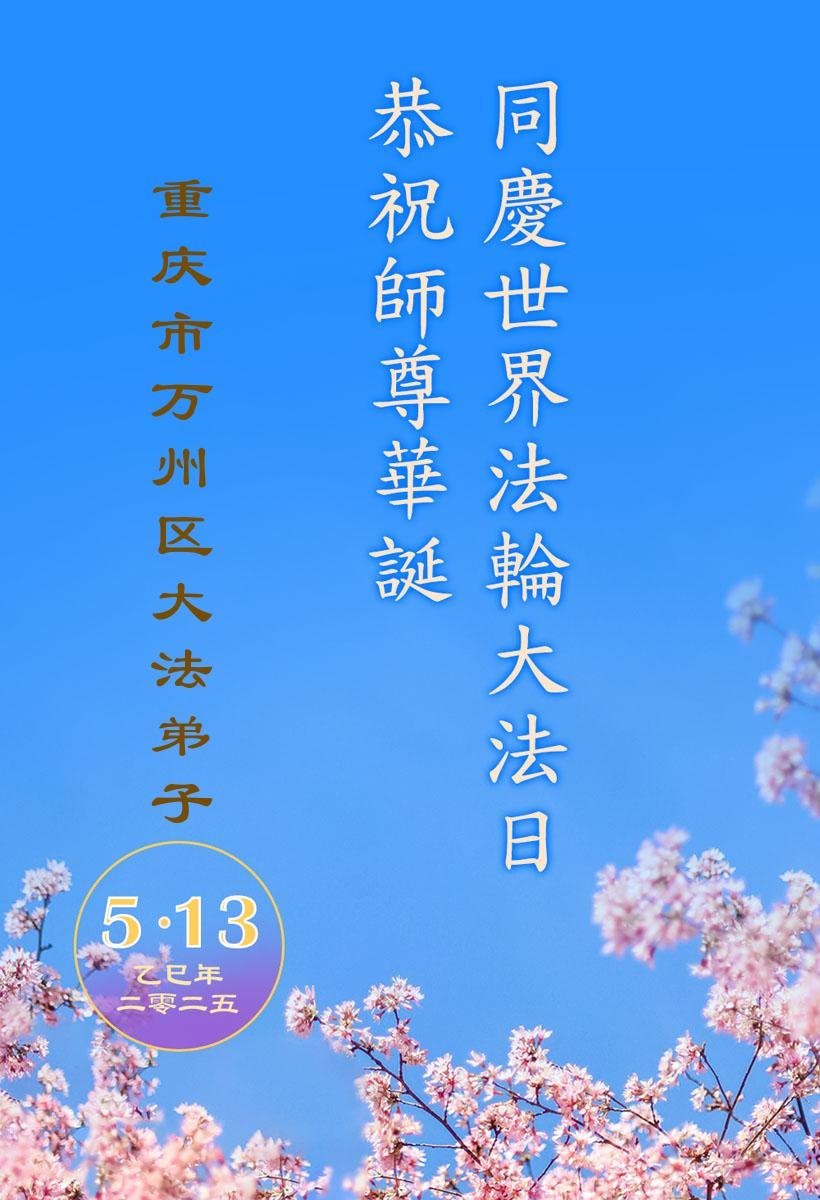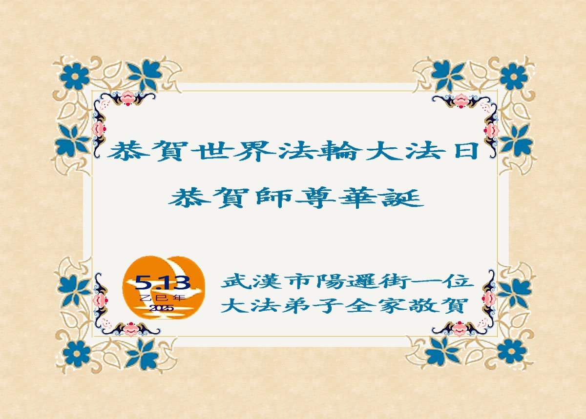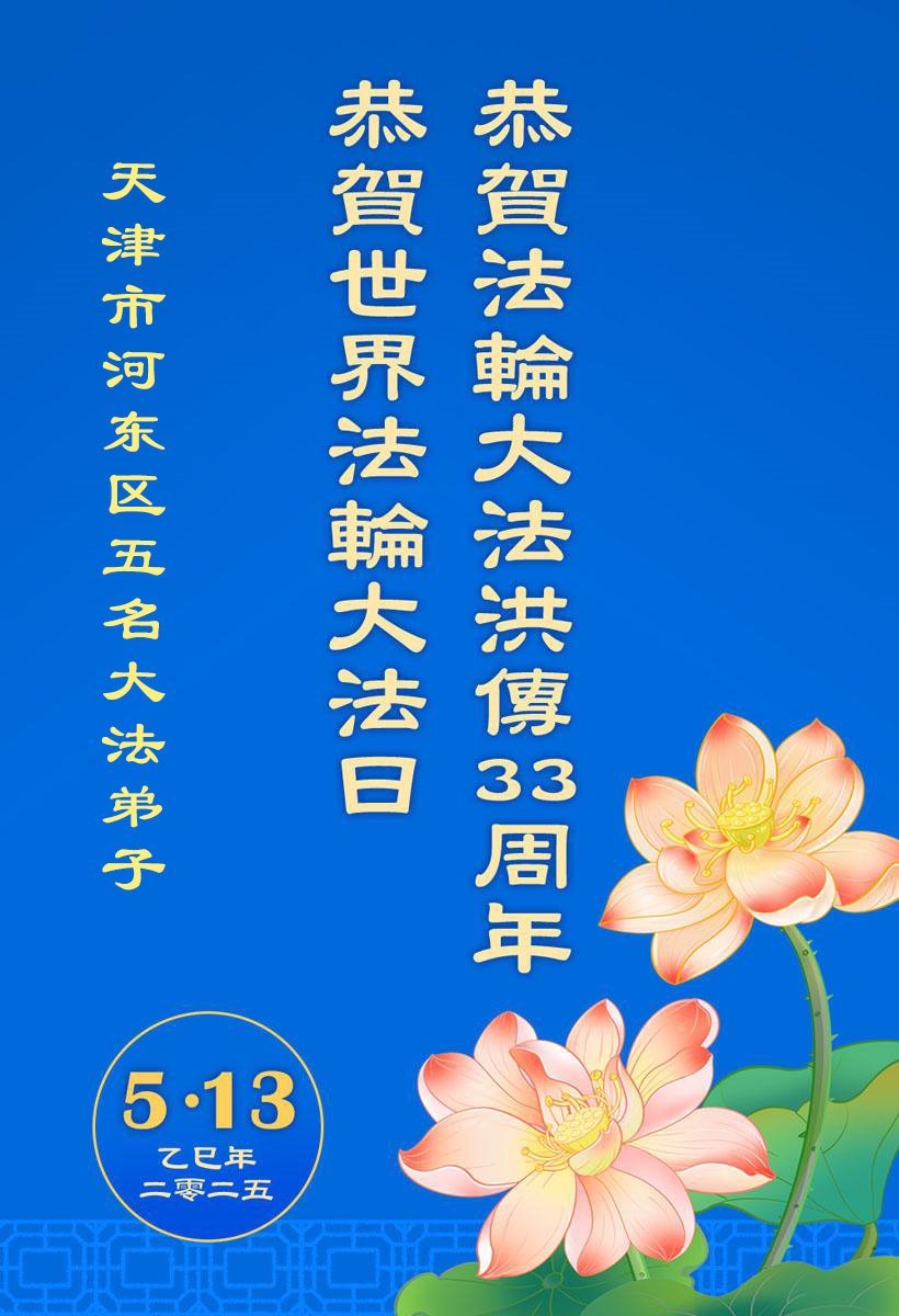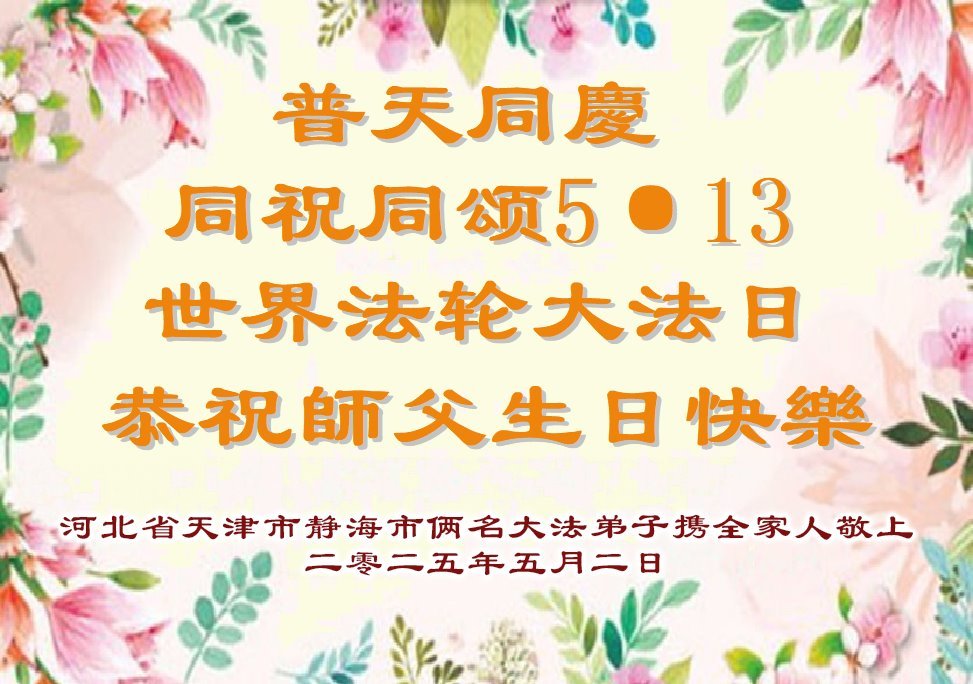 【明慧网二零二五年五月十一日】(明慧网记者综合报道)历经中共残酷迫害法轮功的二十六年,大法弟子们凭着对师尊的正信一路走过来了。中国各省各地都有学法小组,大法弟子开创环境每天静心学法炼功,按照真善忍实修自己,历经种种风雨魔难,依靠大法的指引不迷航。五月十三日,世界法轮大法日到来之际,中国各地学法小组的大法弟子们同庆同祝这神圣的日子,深深感念师尊的慈悲救度,恭贺师尊华诞。