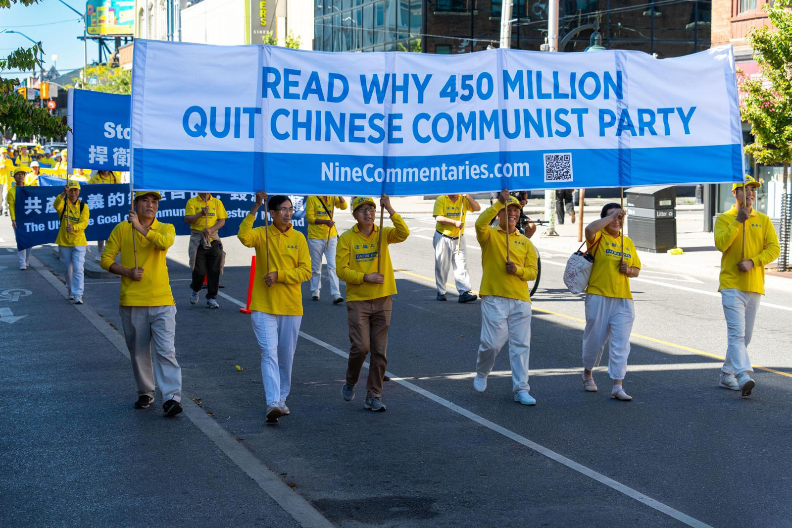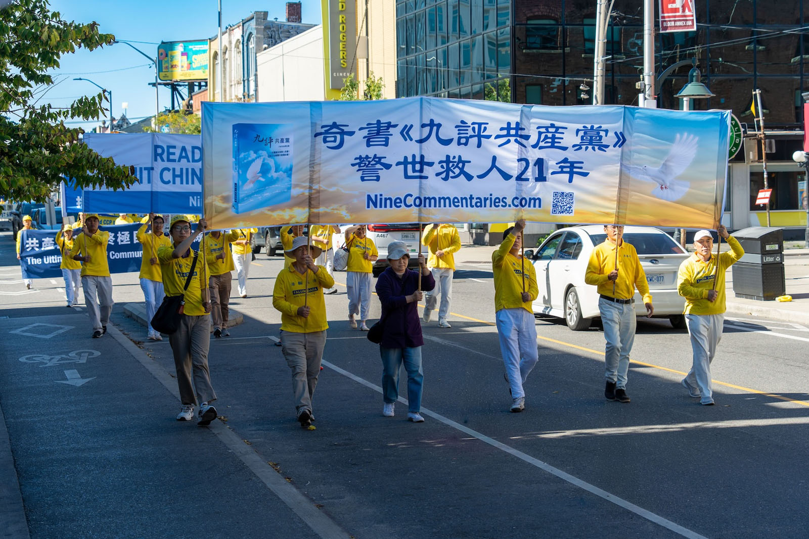 【明慧网二零二五年九月三十日】(明慧多伦多记者站报道)二零二五年九月二十八日中午,多伦多近千名法轮功学员在当地市中心举办和平反迫害游行活动,向民众揭露中共迫害法轮功学员的罪行,并呼吁各界关注并制止中共跨国镇压海外法轮功学员。