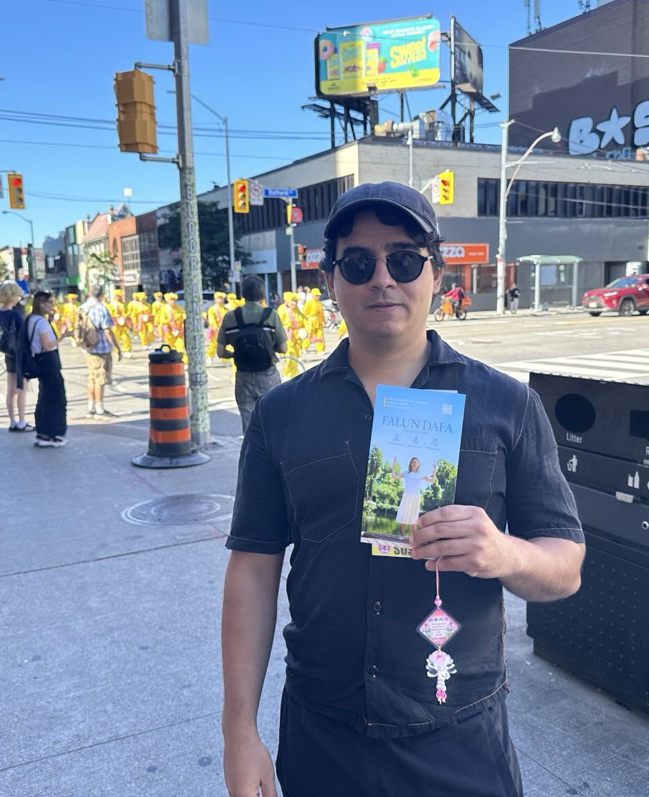 瑞恩(Ryan)居住在密西沙加,他表示自己在两周前开始参加法轮功学员举办的免费教功班,他说:“我已经上了两节课,我感到很平和,很喜欢,会继续参加。”他表示自己还在学习功法动作,很感谢学员的帮助。“过去的几个月我感觉乏力,炼功帮助我充满能量,我希望能多多炼习。”瑞恩还说:“真、善、忍是圣洁的合一。帮助你去理解和觉悟,用积极的态度看待他人,互相支持。”