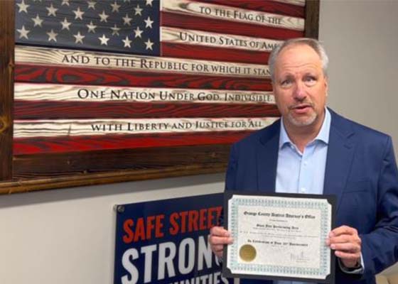 大年初二,纽约上州橙县地区检察官大卫·胡弗勒先生亲自向神韵艺术团颁发褒奖,感谢神韵艺术团创始人兼艺术总监D.F.先生的非凡贡献。