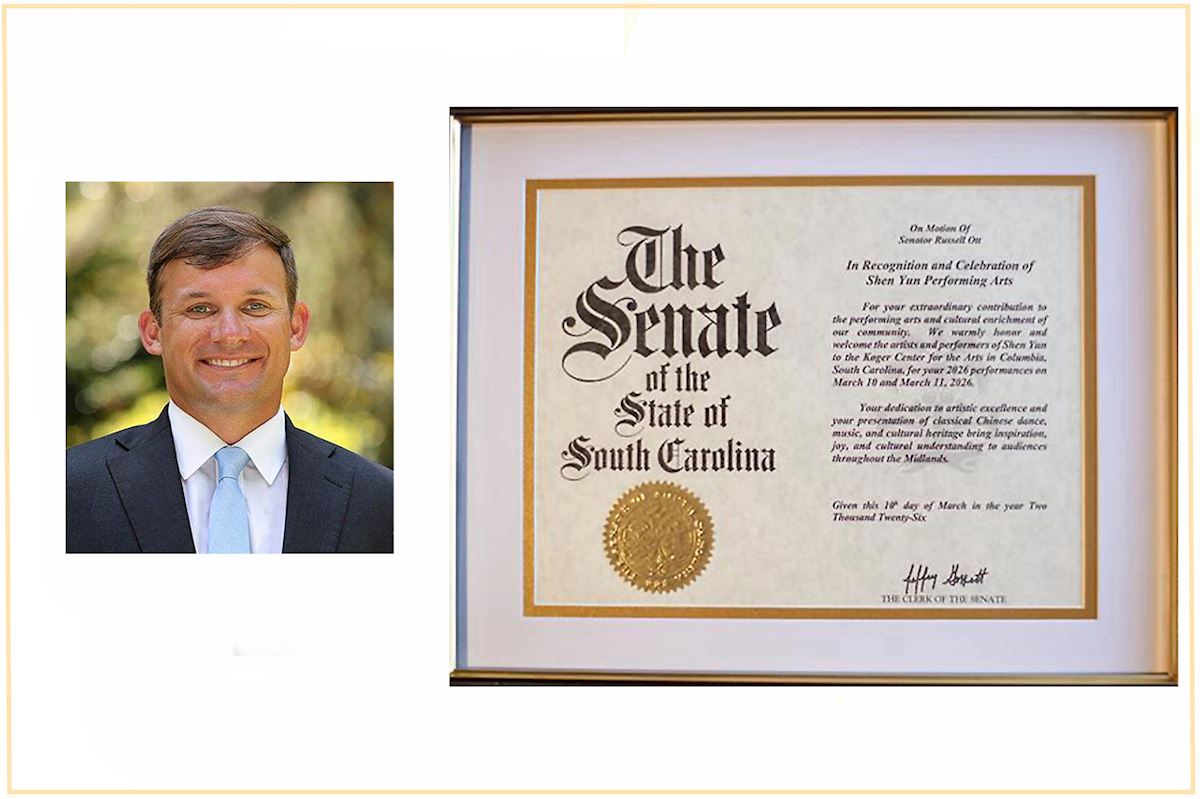 参议院褒奖令热烈欢迎神韵艺术团莅临哥伦比亚市寇格艺术中心演出,其写道:“经参议员罗素‧奥特(Russell Ott)提出动议:表彰并庆贺神韵艺术团。为表彰你们对表演艺术及本社区文化繁荣所作出的卓越贡献,我们诚挚且热烈欢迎神韵艺术团的艺术家及演员们于二零二六年三月十日至十一日莅临南卡罗来纳州哥伦比亚市的寇格艺术中心。”
