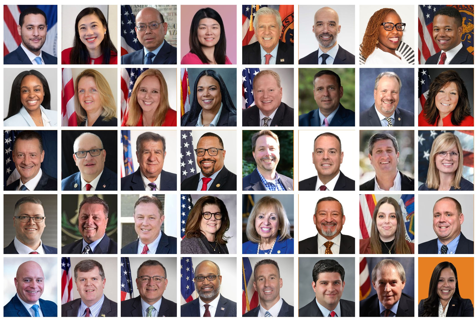 图片说明:(以选区顺序,由上至下、由左至右)第3选区州参议员迪恩·默里(Dean Murray);第7选区州参议员杰克·马丁斯(Jack Martins);第17选区州参议员陈学理(Steve Chan);第19选区州参议员罗克珊·珀绍德(Roxanne J. Persaud);第24选区州参议员安德鲁·兰扎(Andrew Lanza);第35选区州参议员安德里亚·斯图尔特-库辛斯(Andrea Stewart-Cousins);第42选区州参议员詹姆斯·G·斯科菲斯(James G. Skoufis);第43选区州参议员杰克·阿什比(Jake Ashby);第51选区州参议员彼得·奥伯拉克(Peter Oberacker);第2选区州众议员乔迪·吉格里奥(Jodi Giglio);第5选区州众议员道格·史密斯(Doug Smith);第7选区州众议员贾瑞特·甘多尔福(Jarett Gandolfo);第8选区州众议员迈克尔·菲茨帕特里克(Michael J. Fitzpatrick);第9选区州众议员迈克尔·杜尔索(Michael Durso);第16选区州众议员丹尼尔·诺伯(Daniel Norber);第17选区州众议员约翰·米库林(John K. Mikulin);第19选区州众议员爱德华·RA(Edward P. RA);第40选区州众议员罗恩·金(Ron Kim);第46选区州众议员亚历克·布鲁克-克拉斯尼(Alec Brook-Krasny);第98选区州众议员卡尔·布拉贝内克(Karl A. Brabenec);第100选区州众议员宝拉·凯(Paula Kay);第107选区州众议员斯科特·本德特(Scott Bendett);第108选区州众议员约翰·麦克唐纳三世(John T. McDonald III, RPh);第121选区州众议员约瑟夫·安杰利诺(Joseph G. Angelino)。(大纪元合成图片)
