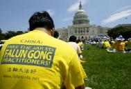 7月23日,来自全世界各地的法轮功学员聚集在华盛顿DC中国大使馆附近集体炼功。上午十时,学员们举着“一起结束在中国大陆对法轮功的迫害”、“善良的人们请来了解法轮功的真相”等横幅,从中国大使馆出发,游行至国会山西草坪。正午,十几位美国国会议员或其代表、十几个非政府组织的领袖或其代表、一名欧洲议会议员以及支持法轮功的人士出席了法轮功国会山大集会,政要们在发言中盛赞法轮功的“真善忍”原则和和平抗争精神,严厉谴责对法轮功的镇压。