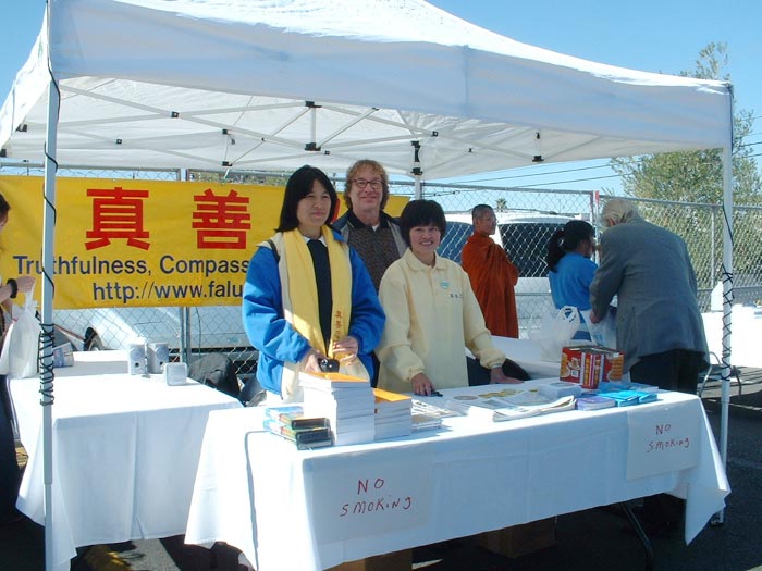 一位中年白人男子径直走到我们摊位跟我们说:“我在报纸上看到关于你们法轮功的报道,我真佩服你们,中国政府[江XX集团]就是怕民众不听他的,但是他越这样搞,我越觉得法轮功好,凡是XX党说不好的到最后都是好的。”