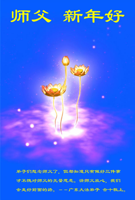 我们辽宁省大法弟子非常想念师父,师父您辛苦了,祝师父新年快乐。