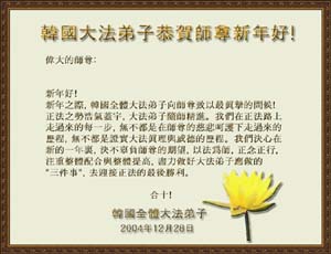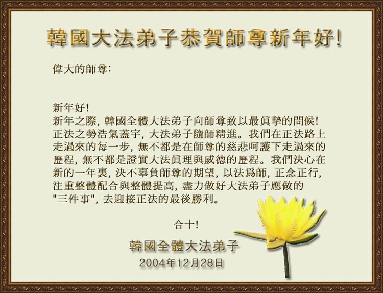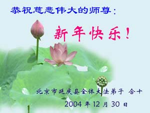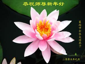值此新年之际,我们抚顺市的全体大法弟子万分想念师父,盼望能早日见到伟大的师尊。请师父放心,我们决不辜负师父的慈悲苦度。做好大法弟子应该做的三件事,救度更多的众生,走好走正最后的证实大法的路。