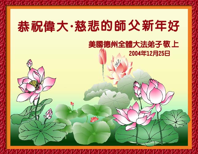 师父,在您的洪大慈悲与师恩浩荡下,哈尔滨大法弟子又坚定的走过了一年。请师父放心,在新的一年里,我们一定牢记师父的教导,承担起正法时期大法弟子所肩负的历史重任,走好正法進程的每一步,完成助师正法、救度众生的伟大使命,迎接法正人间的来临。