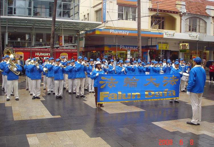 【明慧网二零零八年六月十一日】二零零八年六月八日,法轮功学员们在澳洲悉尼北区著名的曼丽沙滩的歌秀舞台步行街洪法炼功,庆祝“曼丽法轮大法日”。