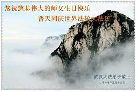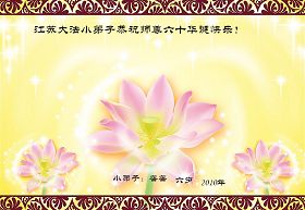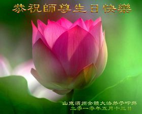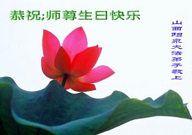 修炼法轮大法以来,师尊不仅给了我们健康的身体,还让我们懂得了人活着的真正目地和当前讲真相救人的重要性。师尊的恩泽一直沐浴着我们。在师尊生日之际,我们叩拜师尊:恭祝师尊生日快乐!请师尊放心,我们一定做好三件事完成史前誓愿,圆满随师还。