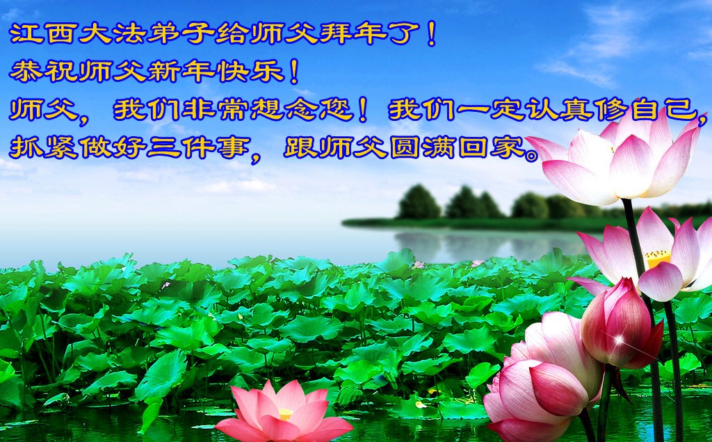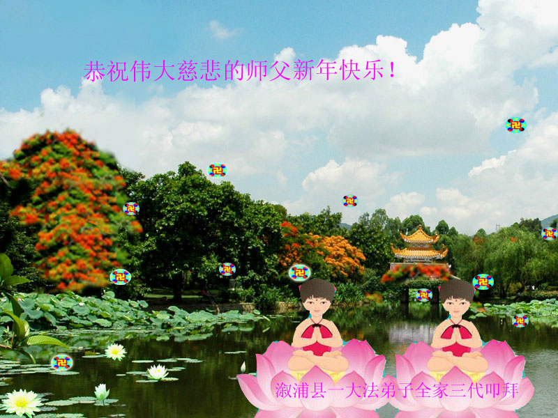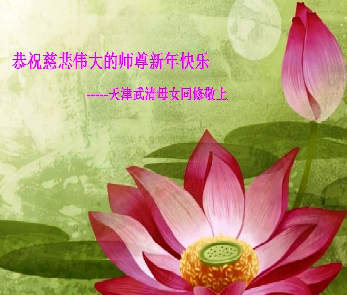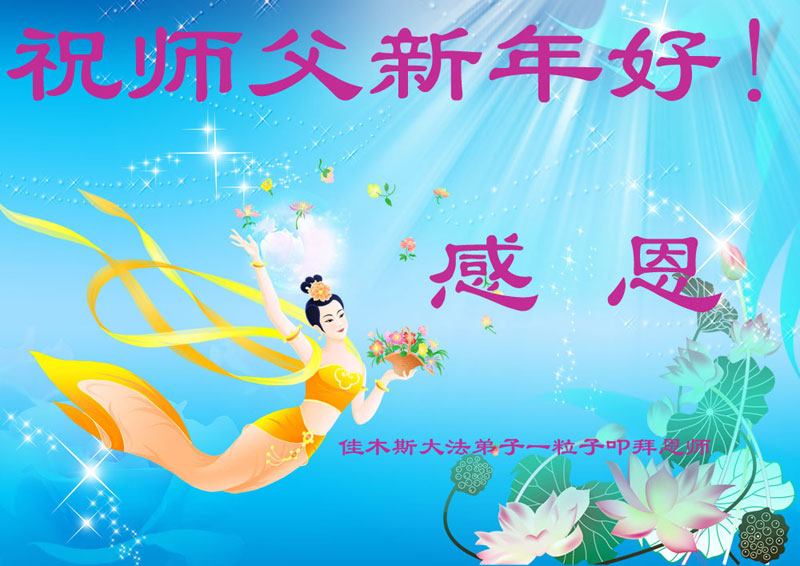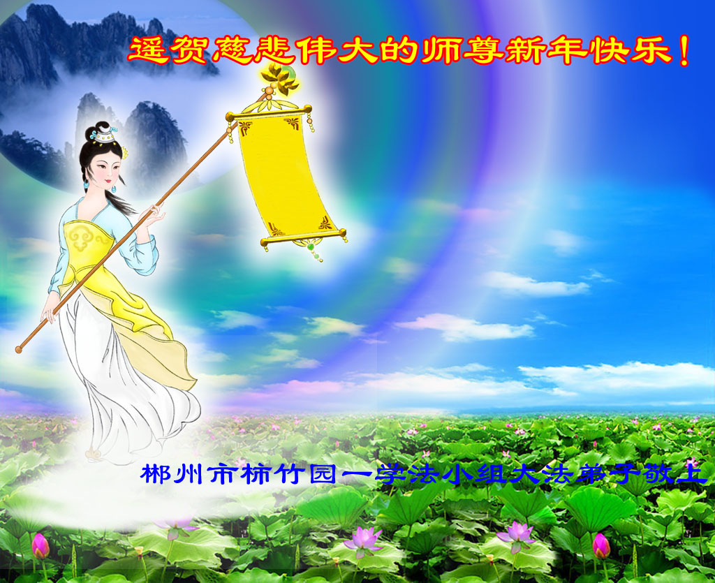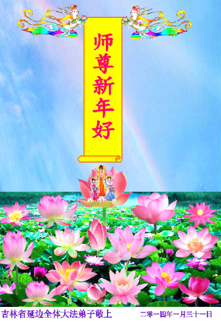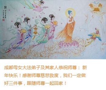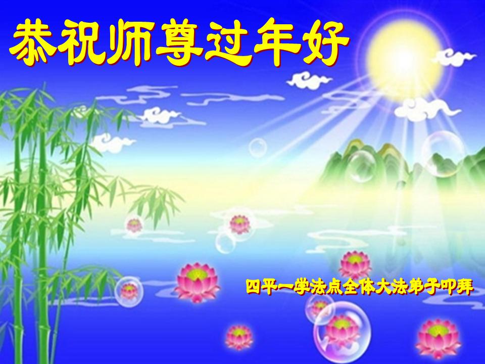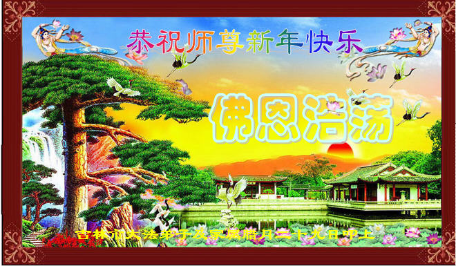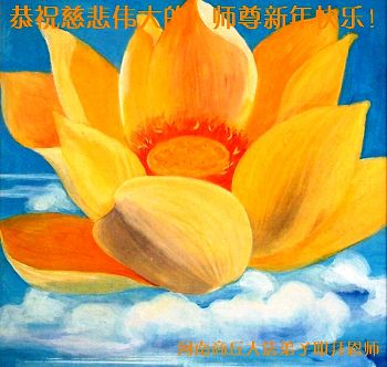 师尊新年好!弟子们想念您,谢谢您的慈悲救度!我们无法用语言来表达对您的敬意,只有在今后做的更好些,多救人,兑现我们的誓约,跟师尊回家。